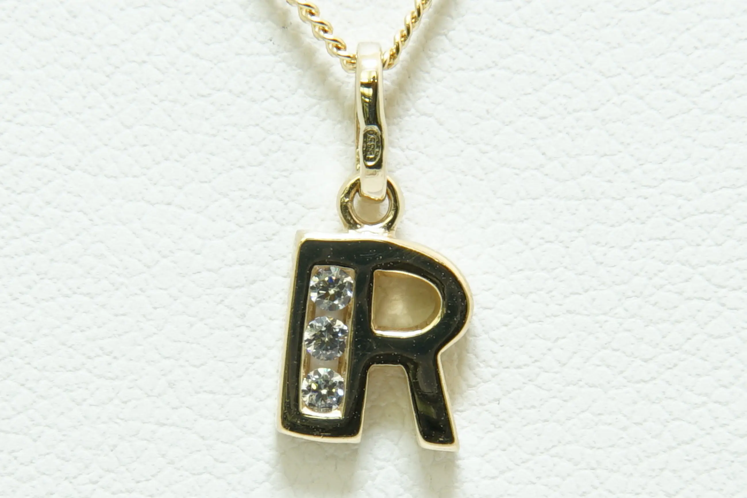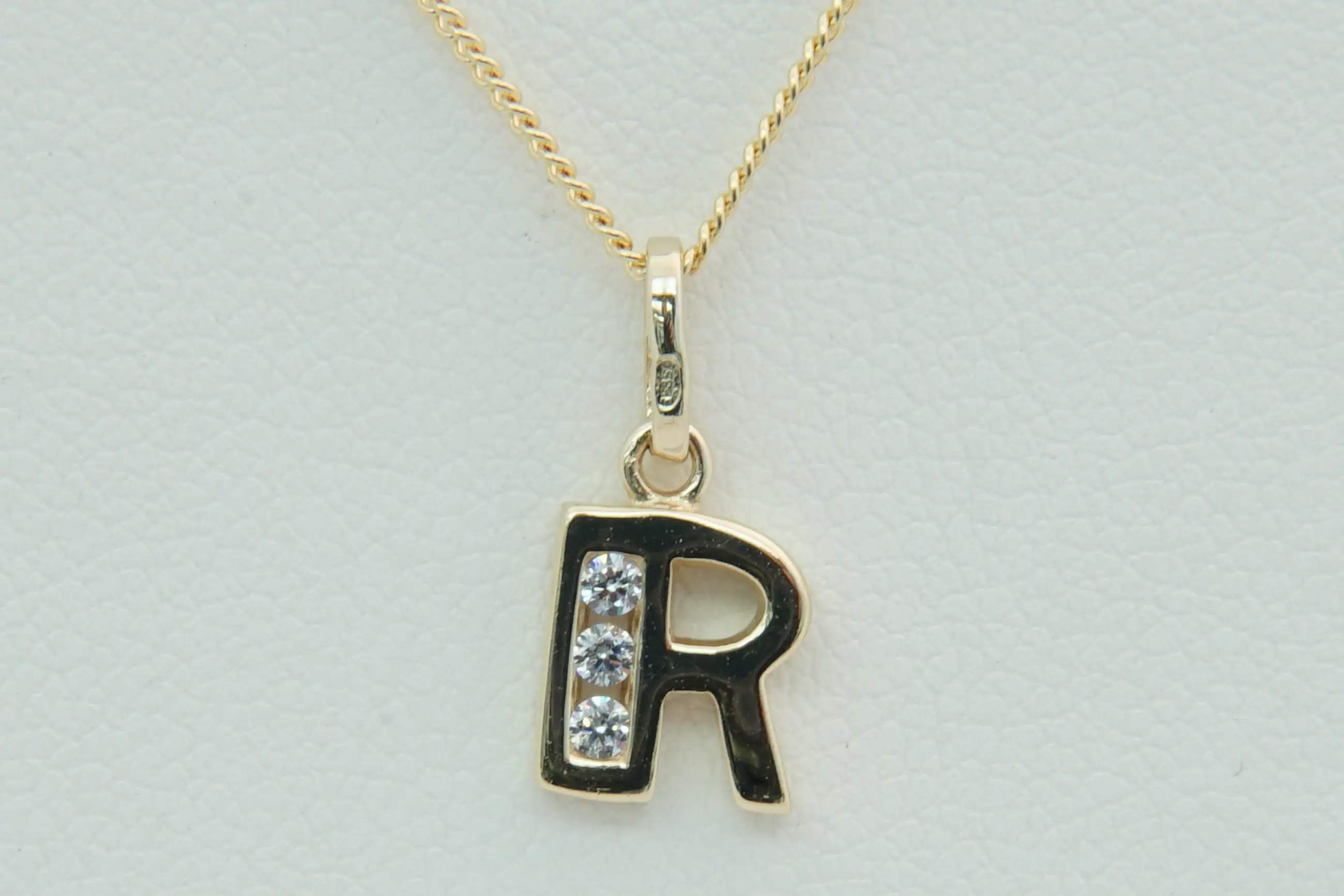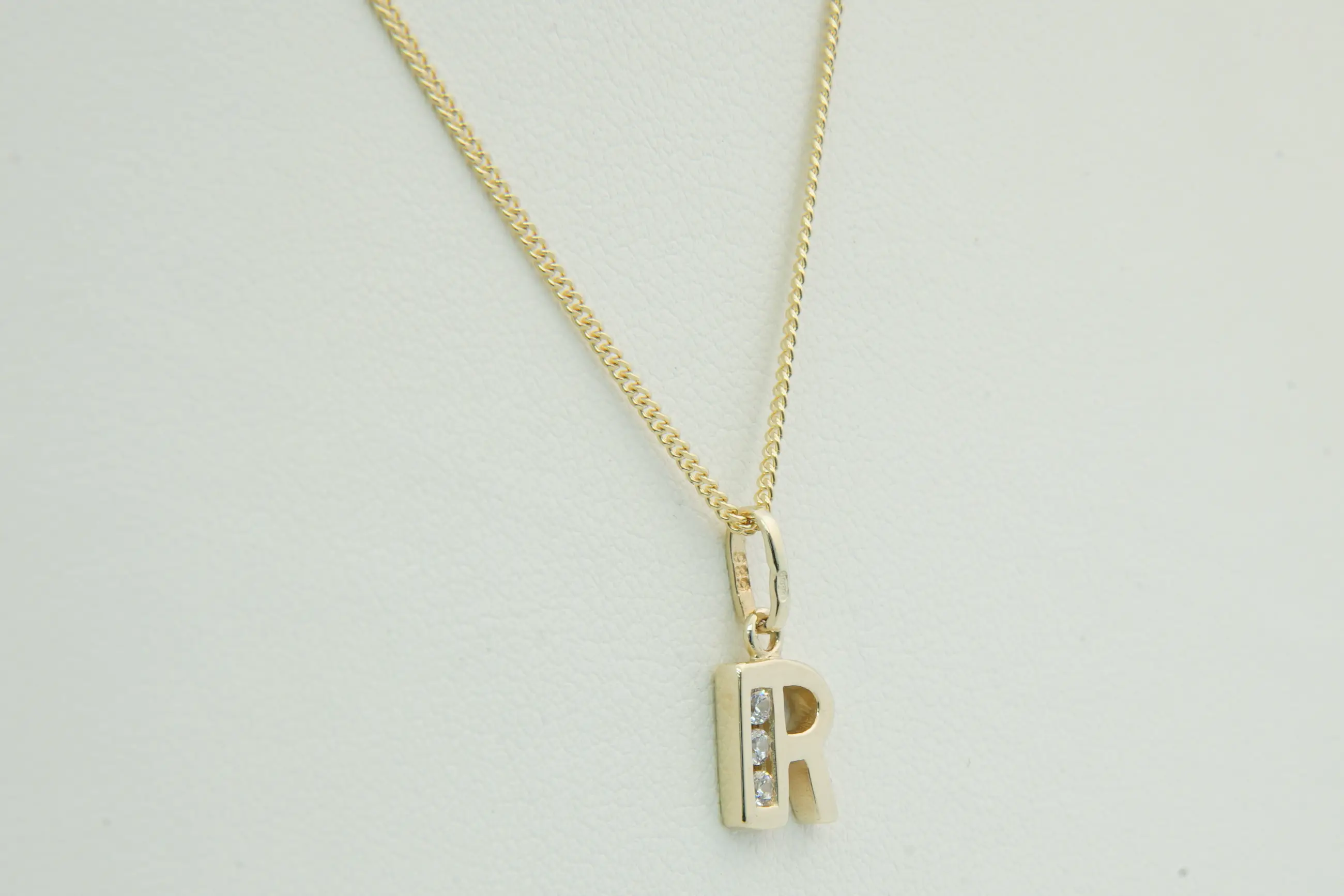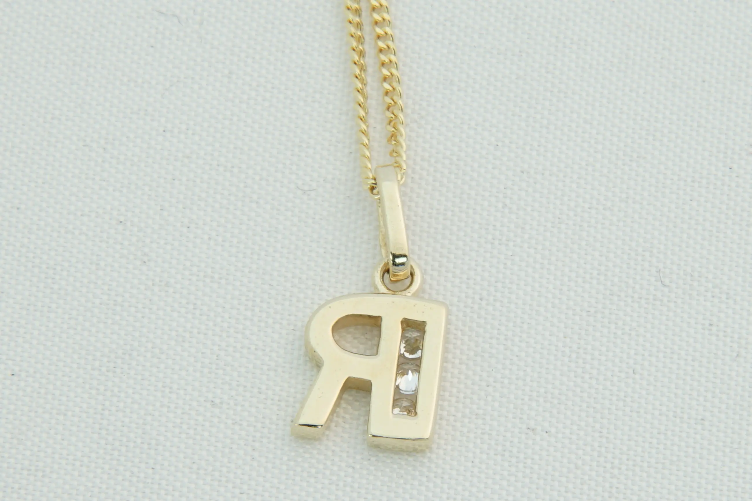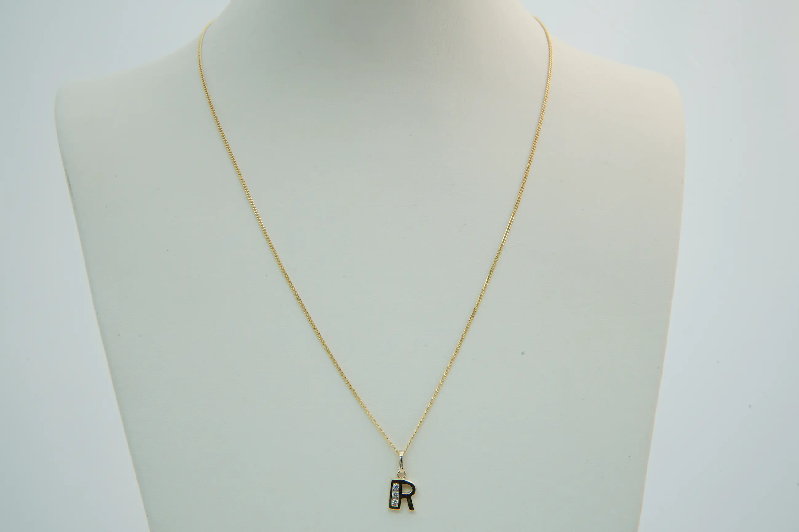 66 - Fijn 14 Krt geel gouden collier met daaraan een 14Krt letter R hangertje - Verkocht