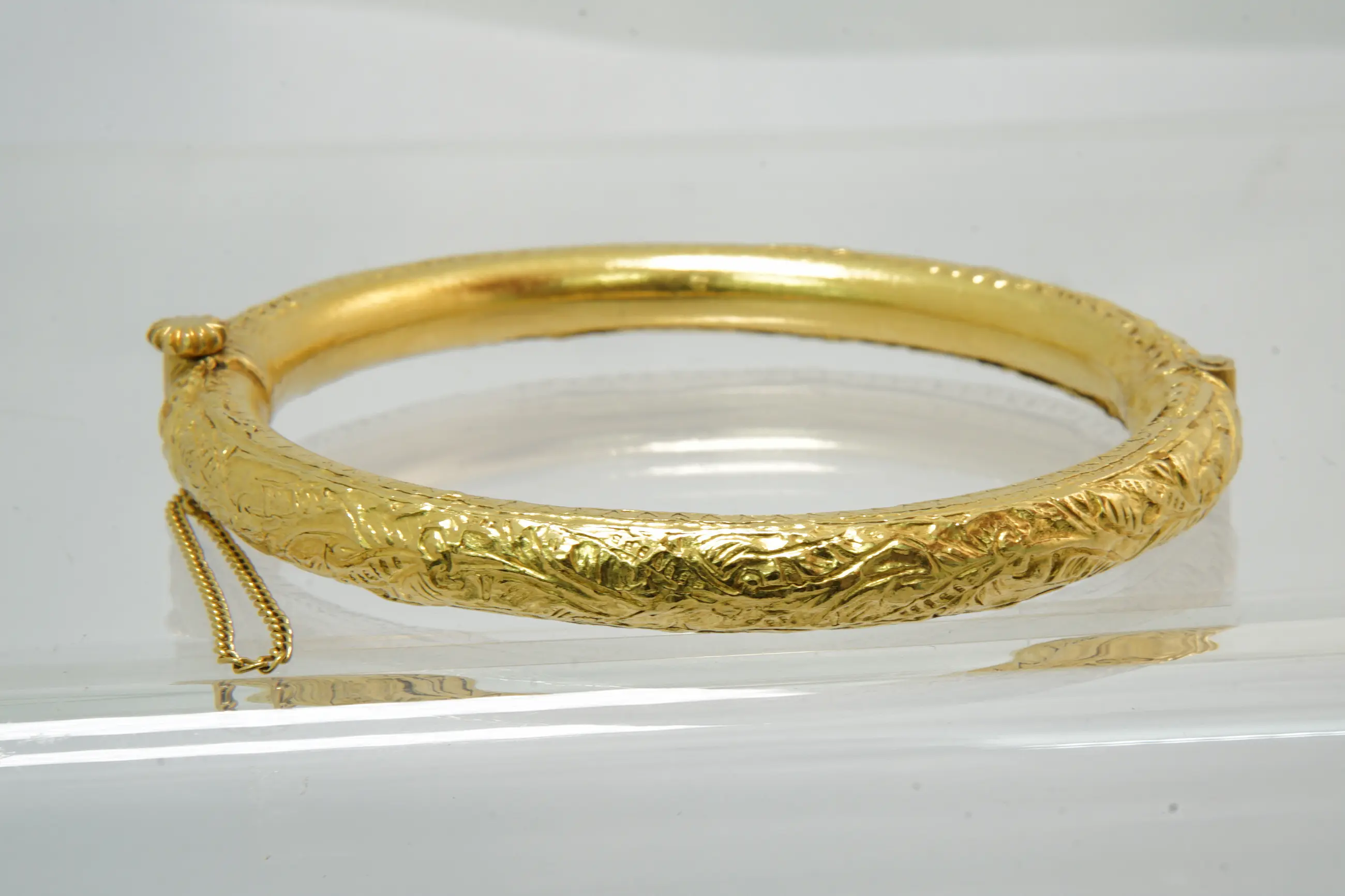 68- Fraai bewerkte Surinaamse 18Krt geel gouden armband met onedele kern kopen? Bied vanaf 370!