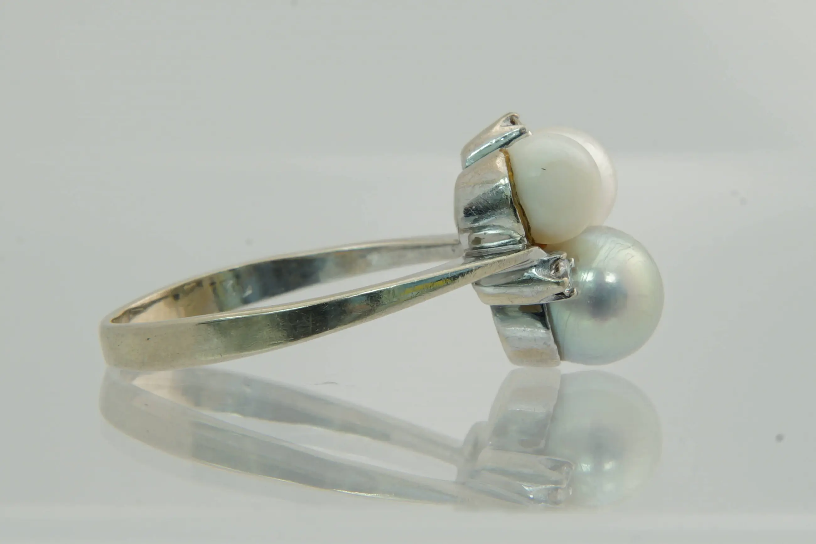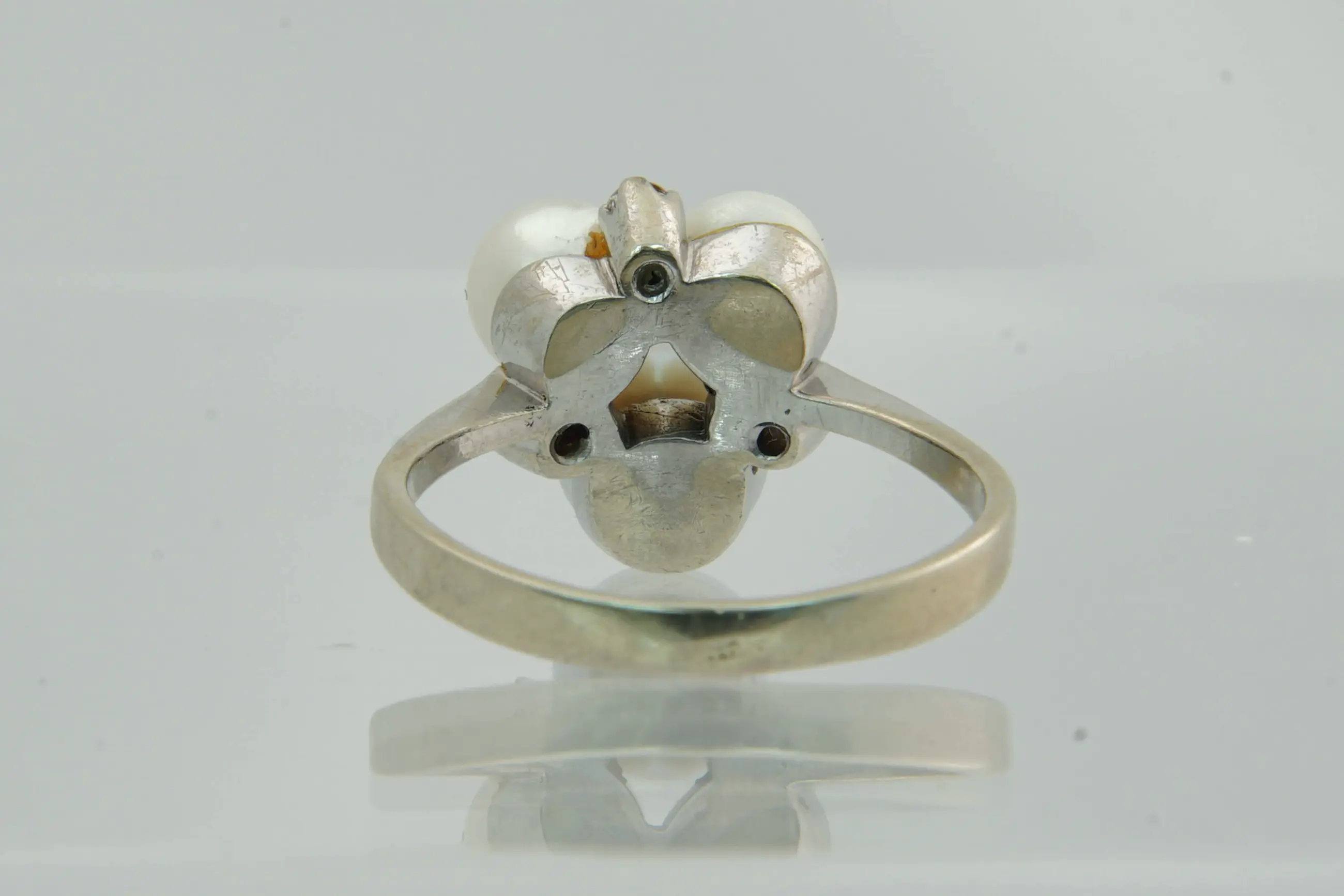 69-  Exclusieve 14Krt witgouden dames entourage ring met diamanten en parels kopen? Bied vanaf 180!