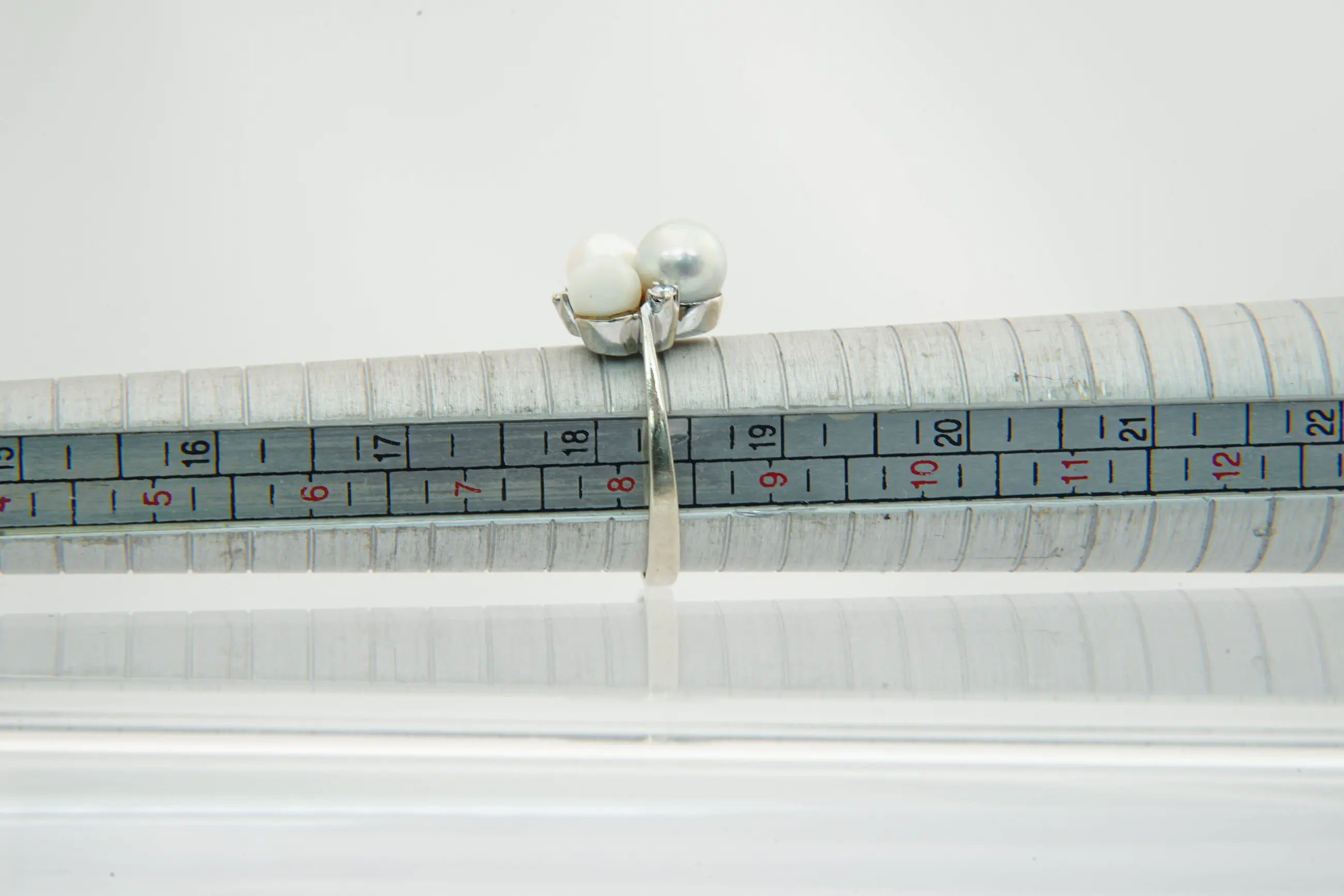 69- Exclusieve 14Krt witgouden dames entourage ring met diamanten en parels - Verkocht