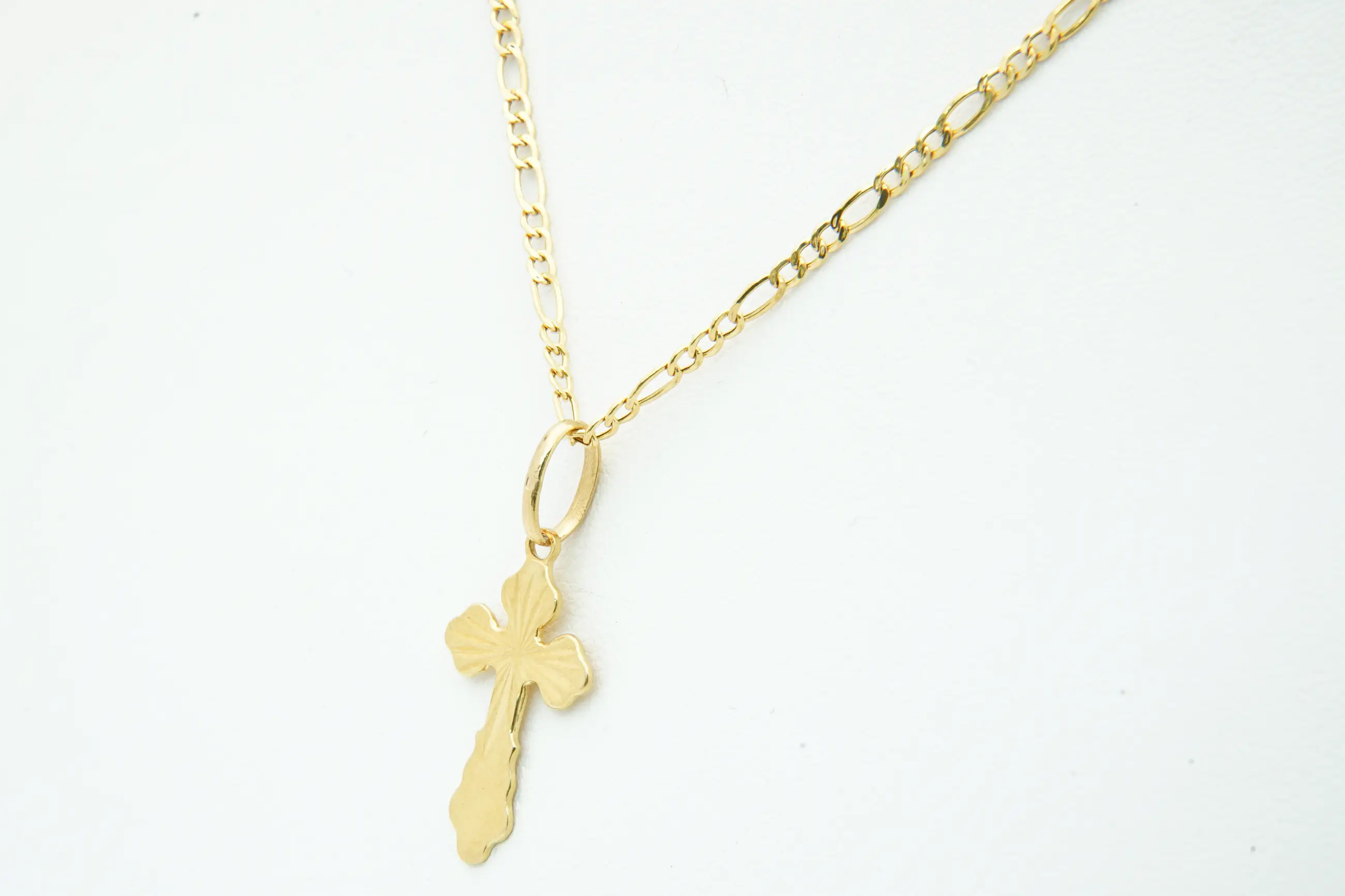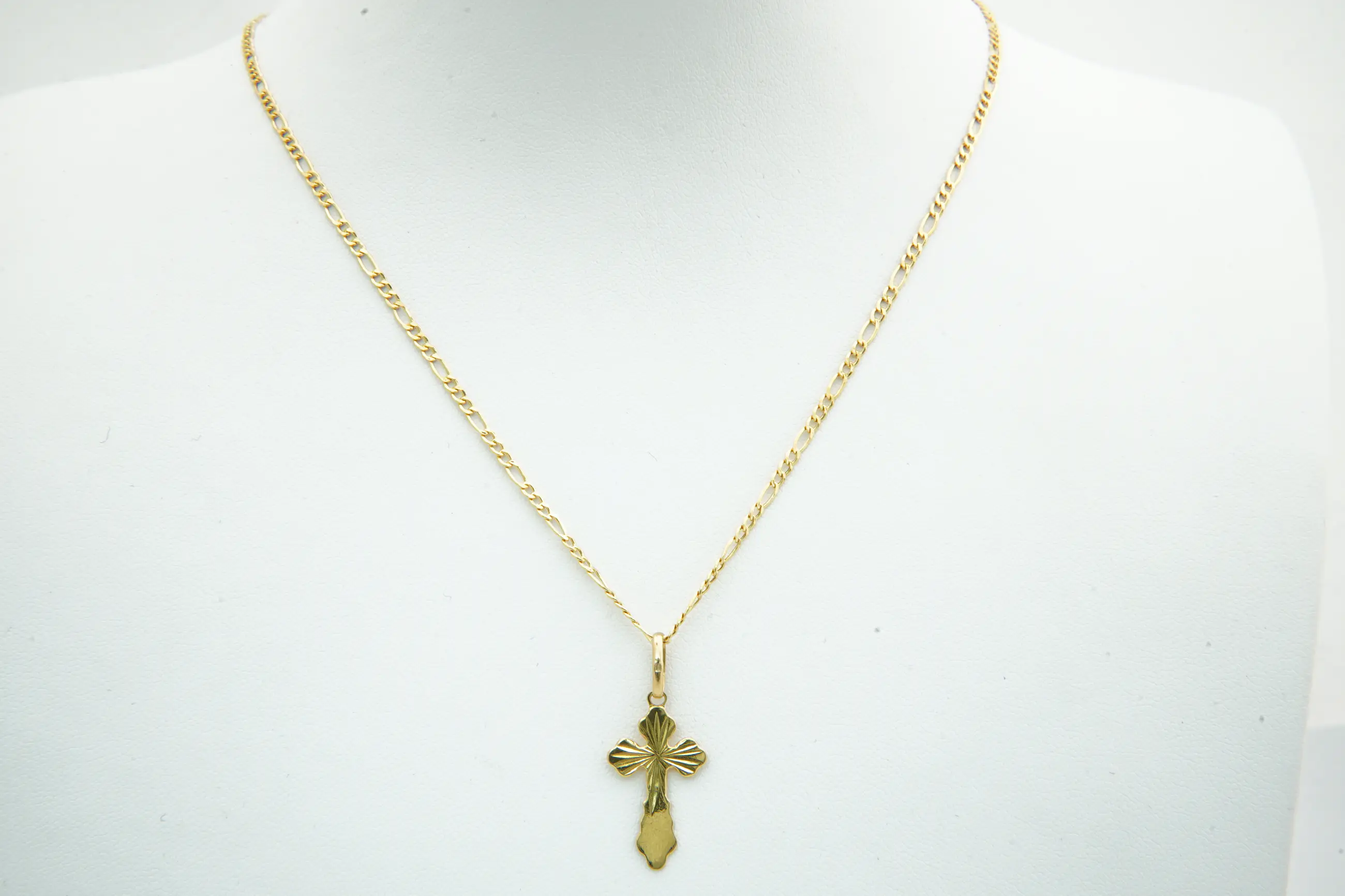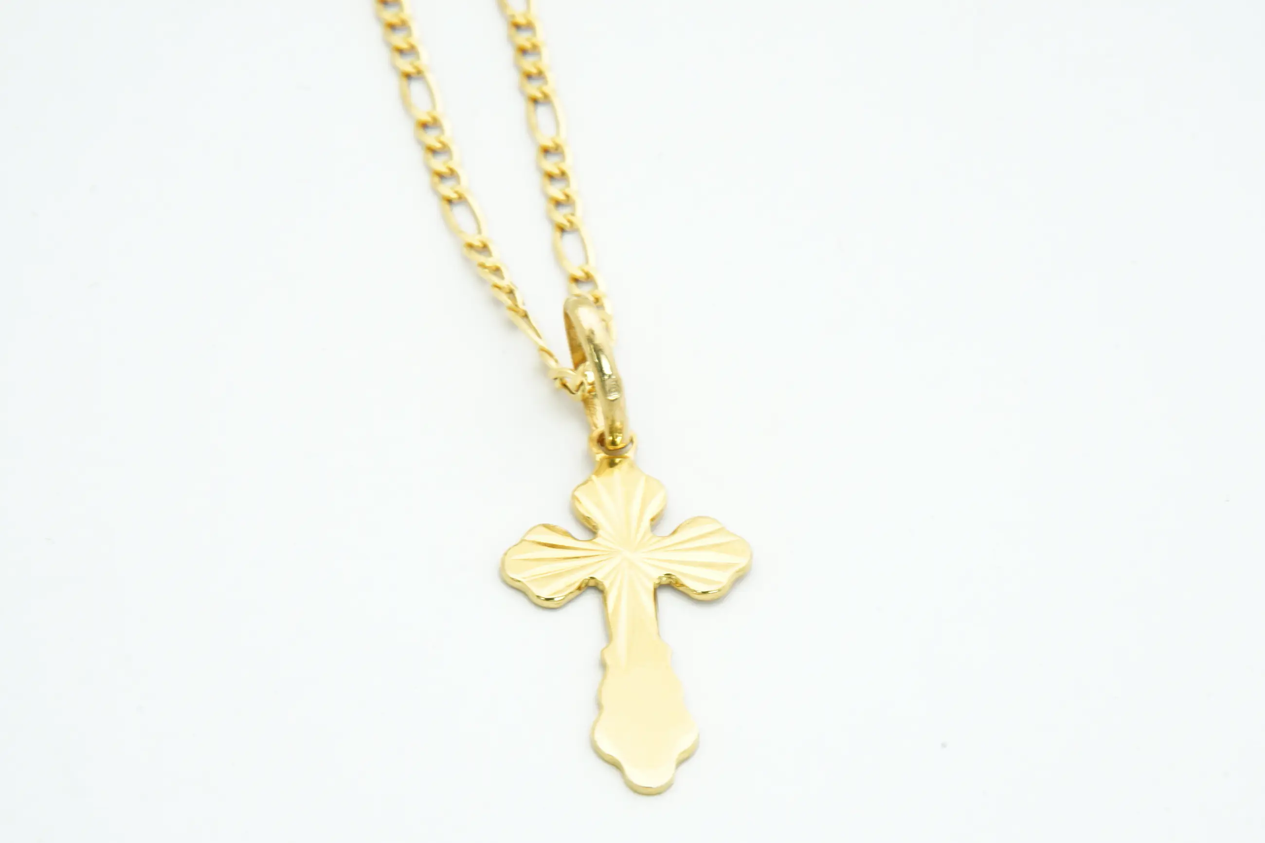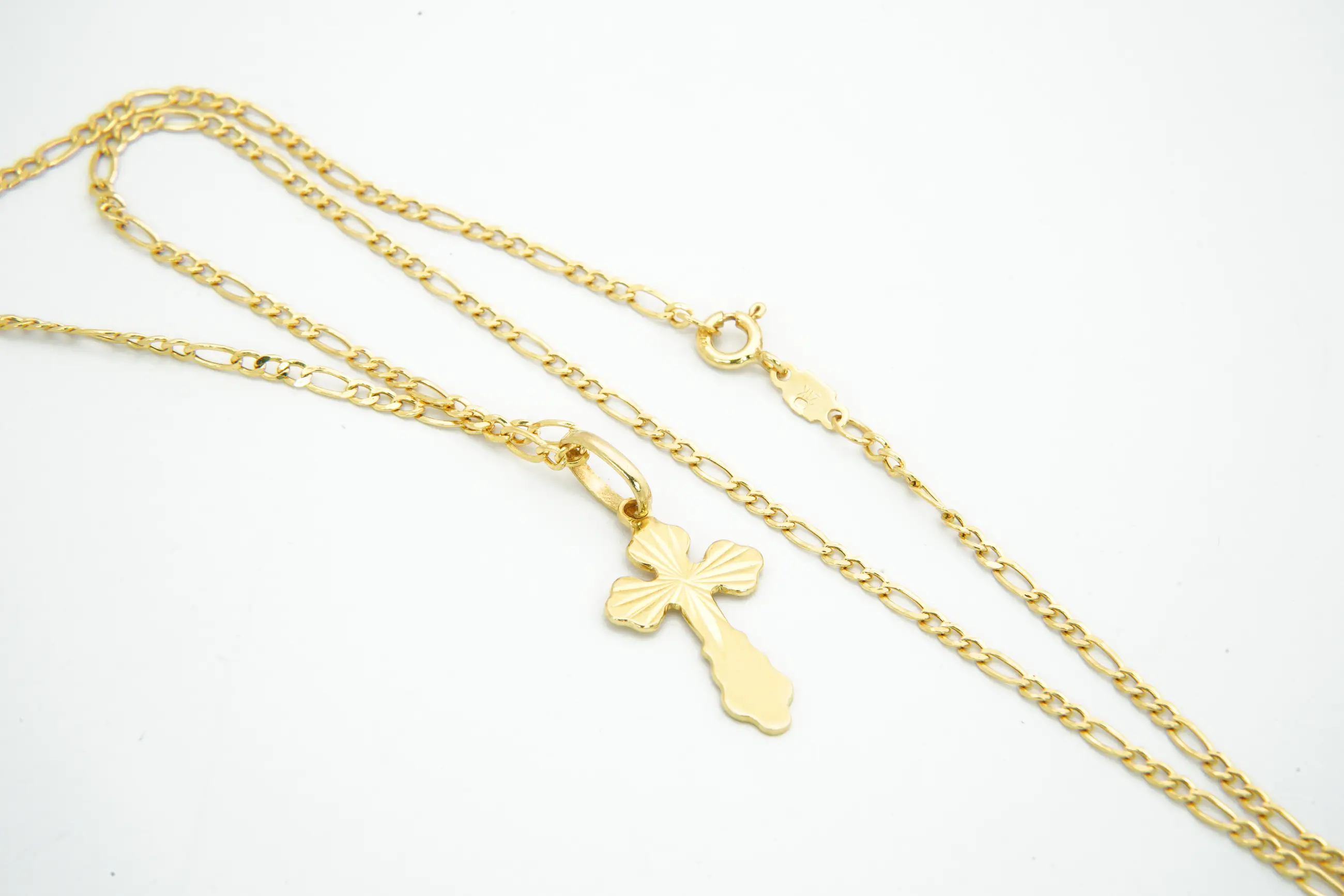 70 - Fijn 20Krt geel-gouden figaro collier & met mooi bewerkte kruis hanger - Verkocht
