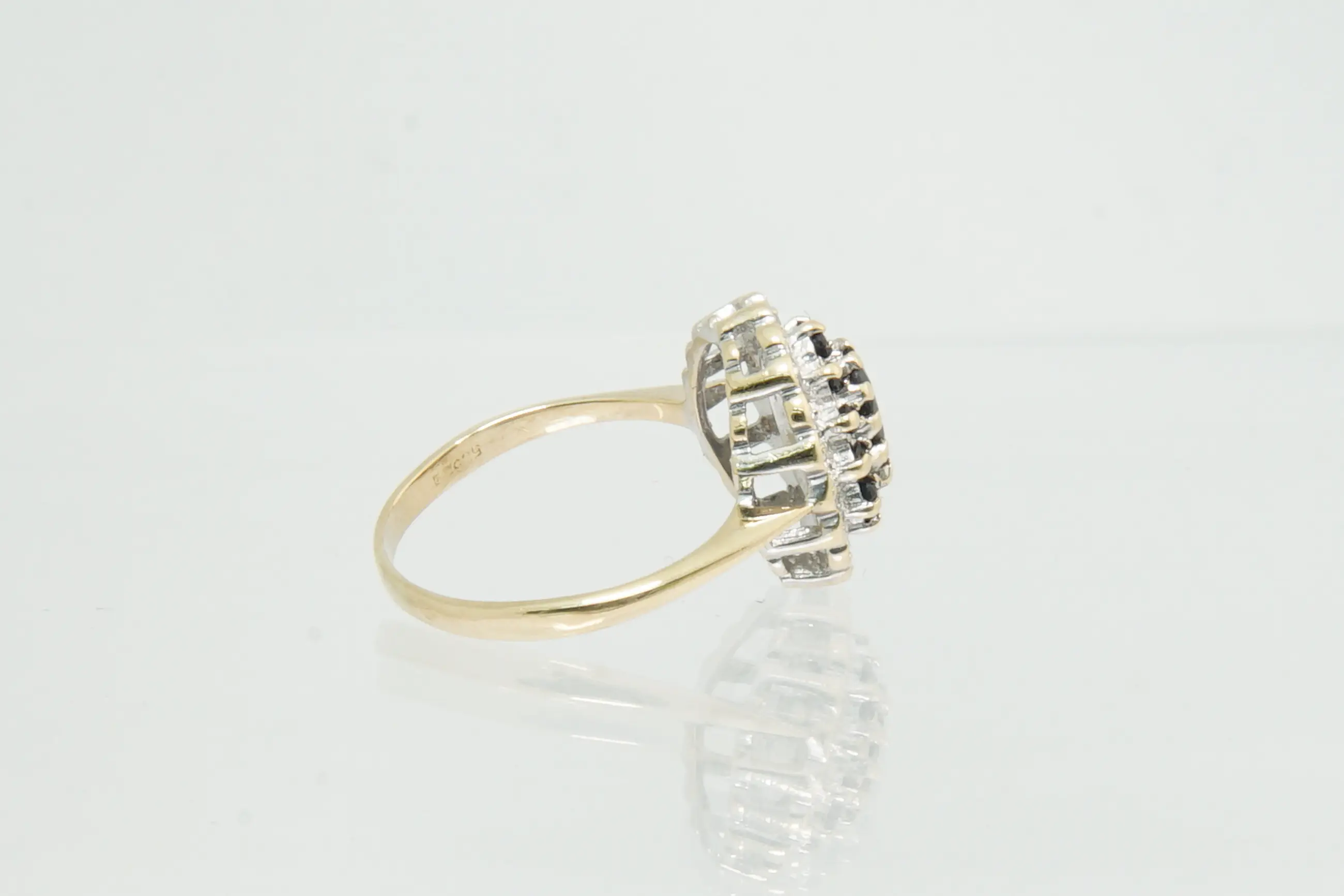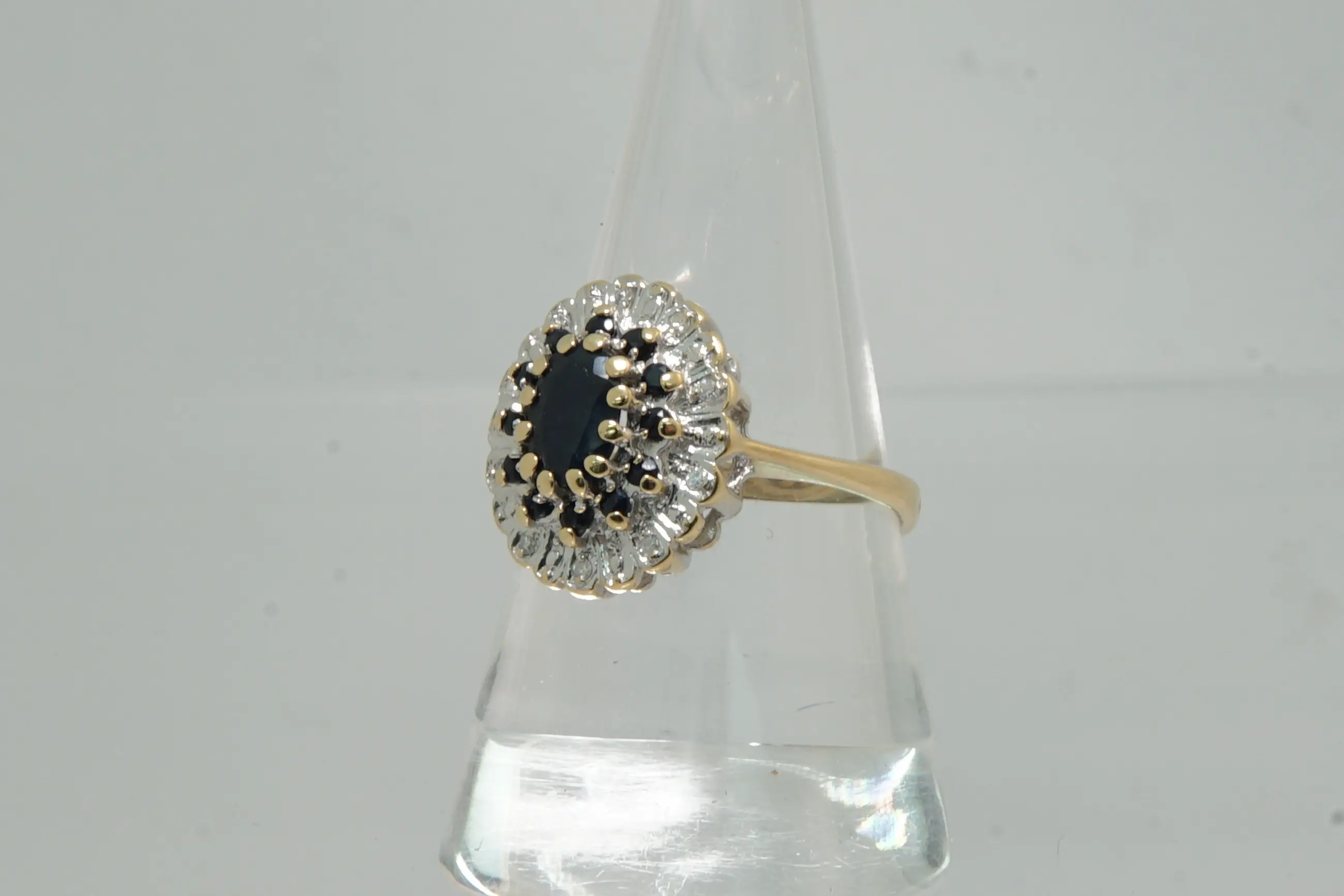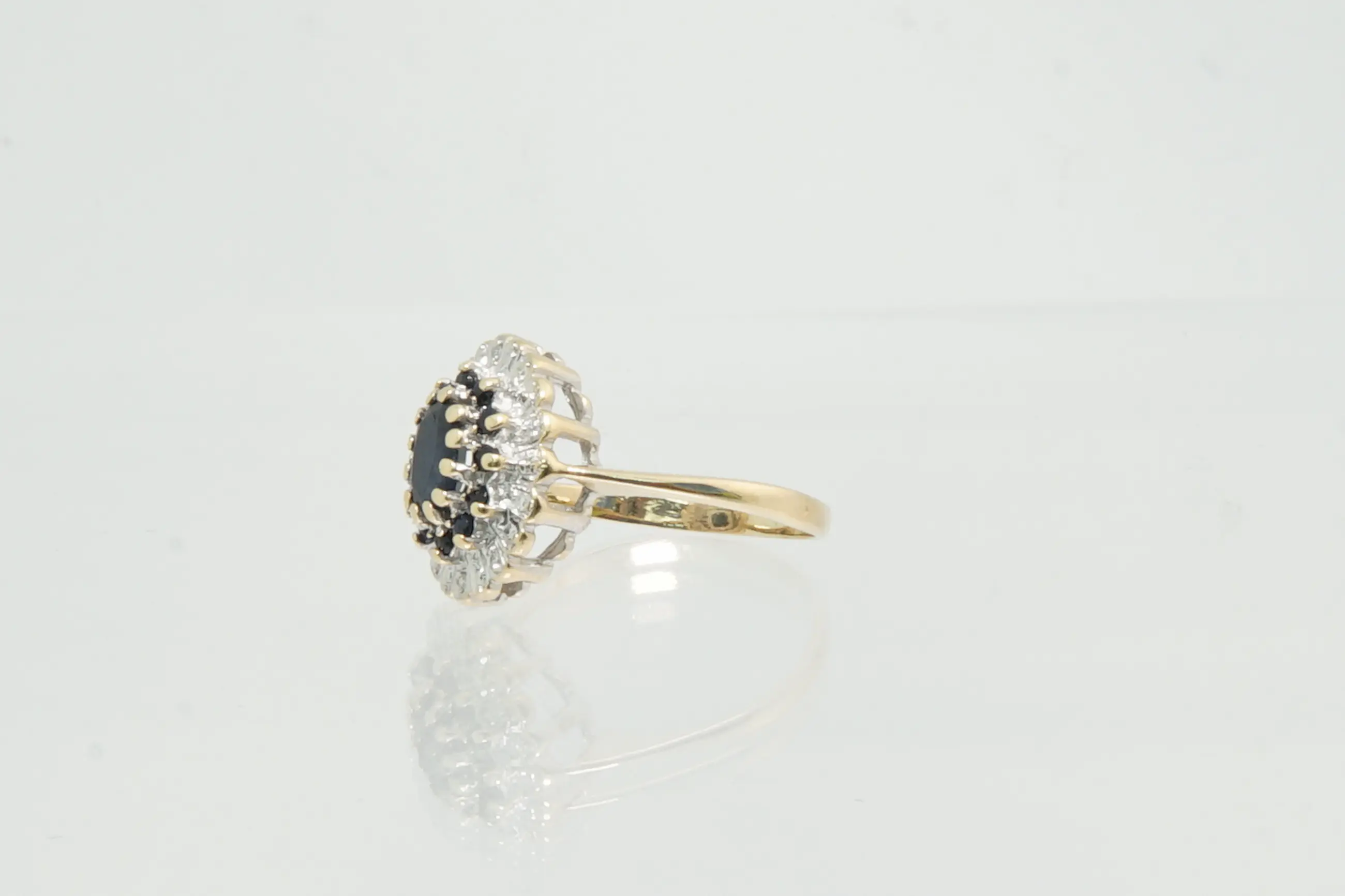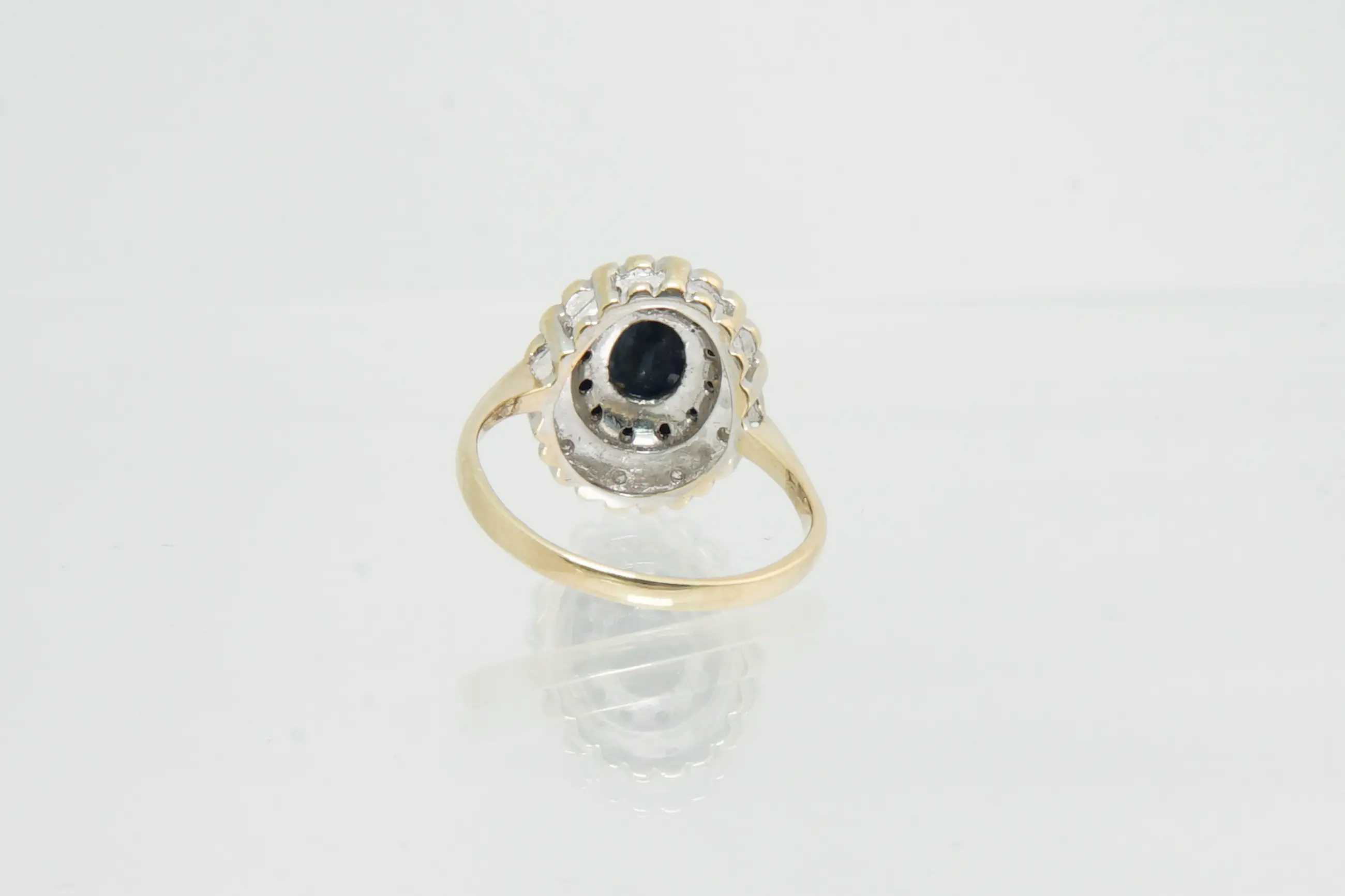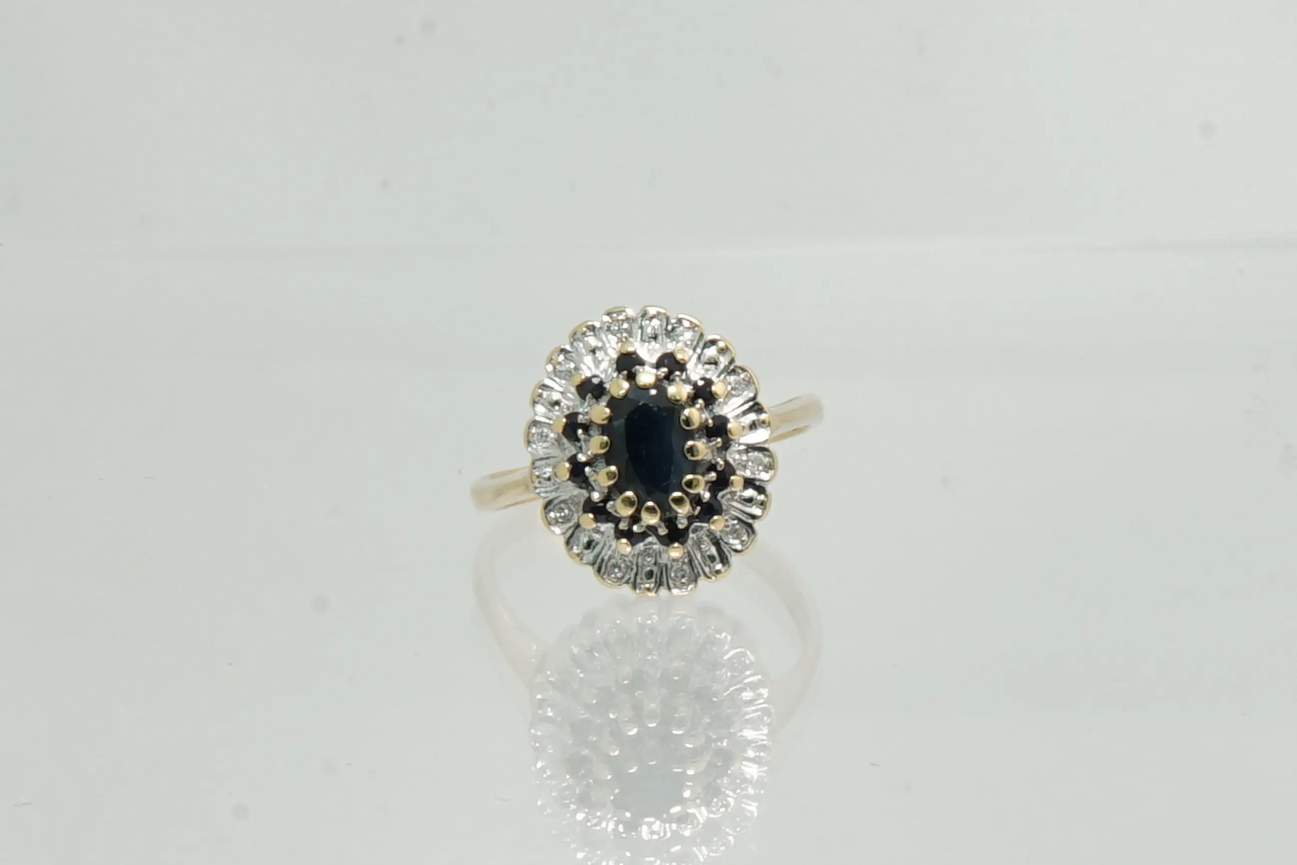 72 - Klassiek model 14krt gouden entourage ring met diamant en saffier - Verkocht
