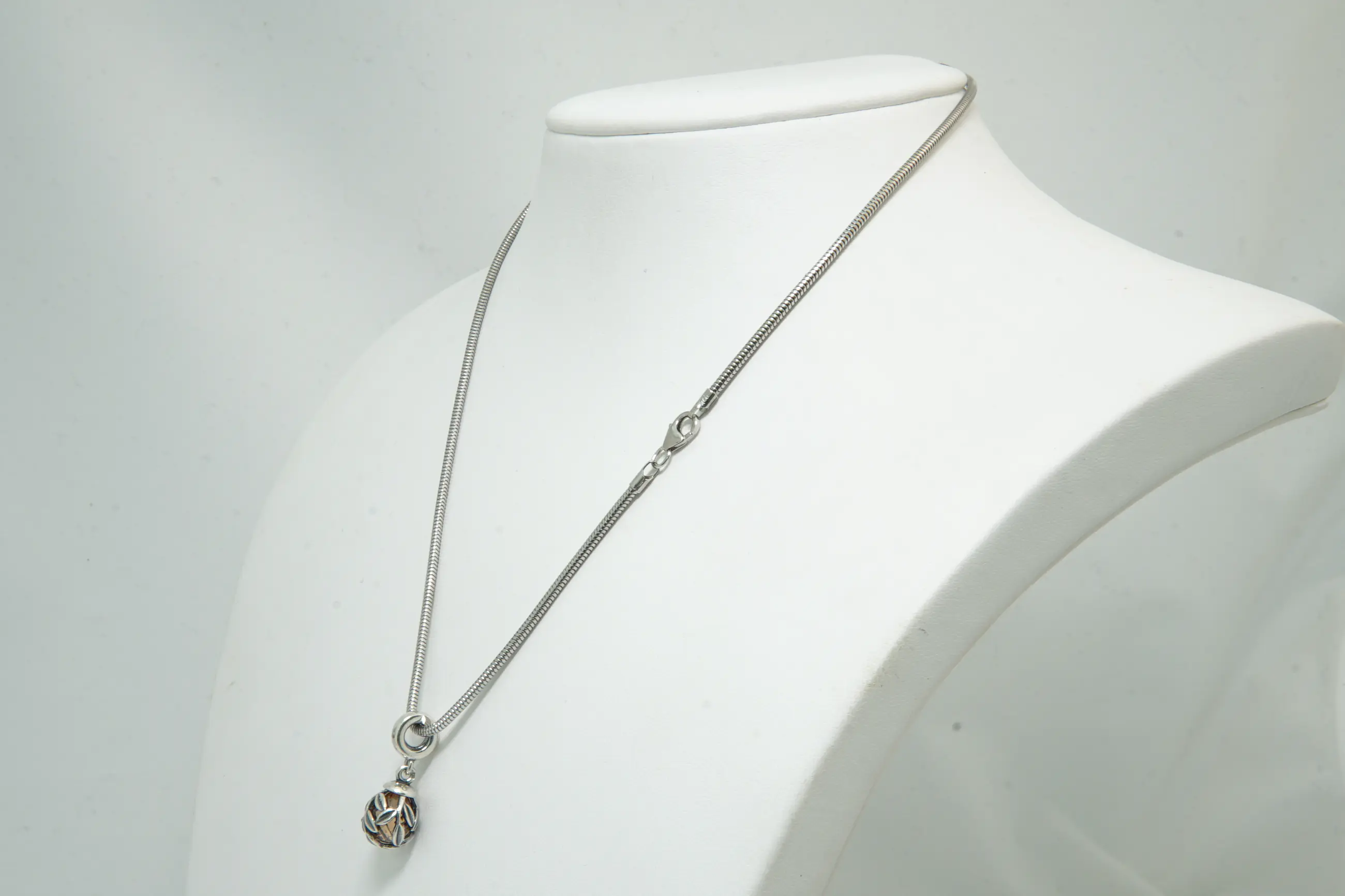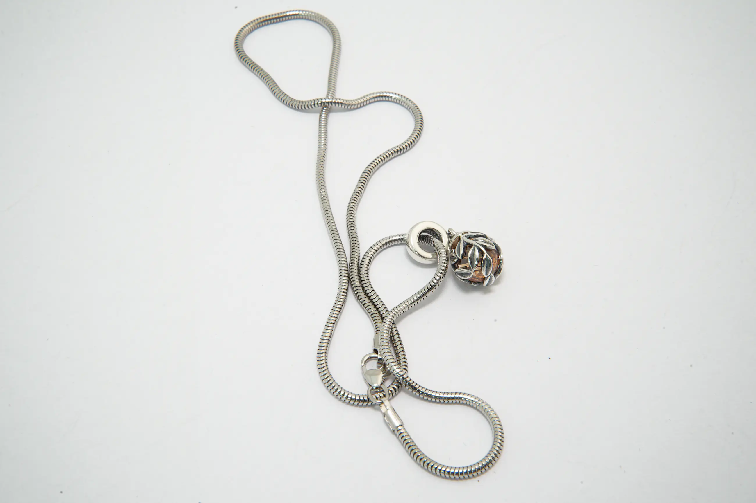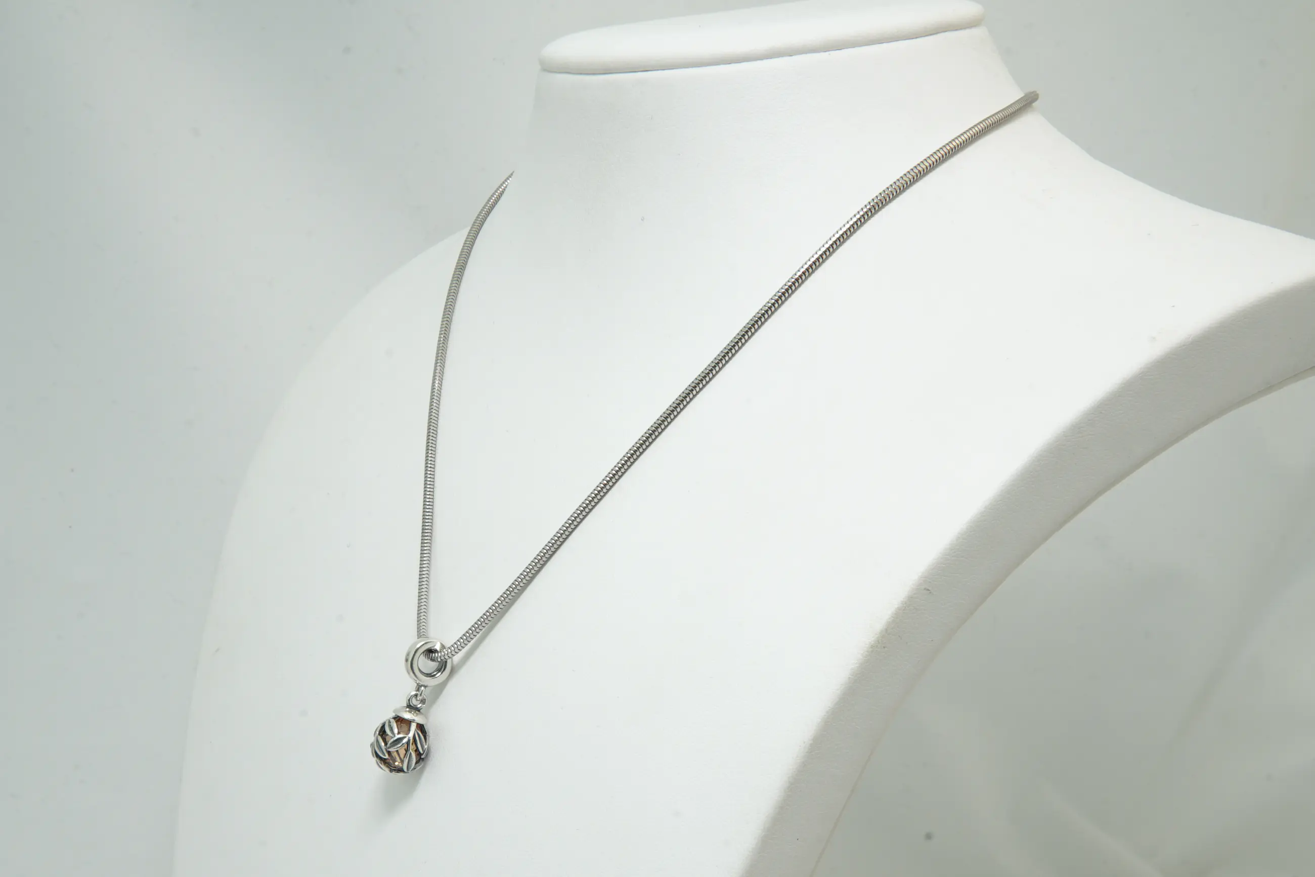 73 - Zo goed als nieuw 1e gehlt. zilveren "snake" collier met mooie bal-hanger kopen? Bied vanaf 20!