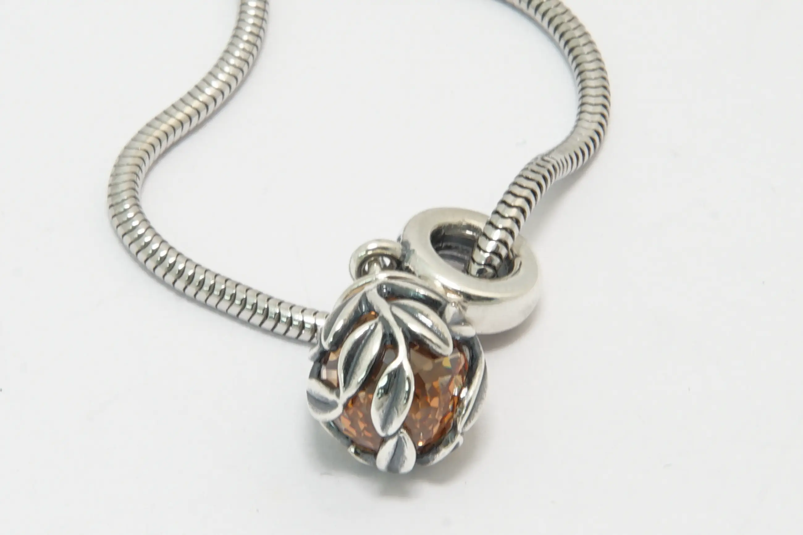 • U biedt op een massief, zo goed als nieuw 1e gehalte zilveren "snake-chain" collier met daaraan een aparte, 1e gehalte zilveren opengewerkte bol hanger met daarin een lichtbruine gefacetteerde steen. De ketting en hanger verkeren in zeer goede conditie.