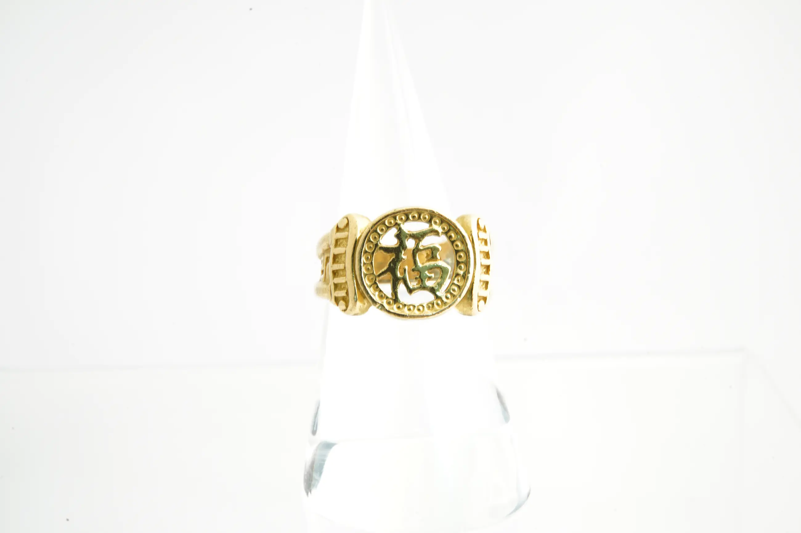 • U biedt op een mooie 20 karaats geel-gouden ring met Chinese tekens. De ring verkeert in goede staat.