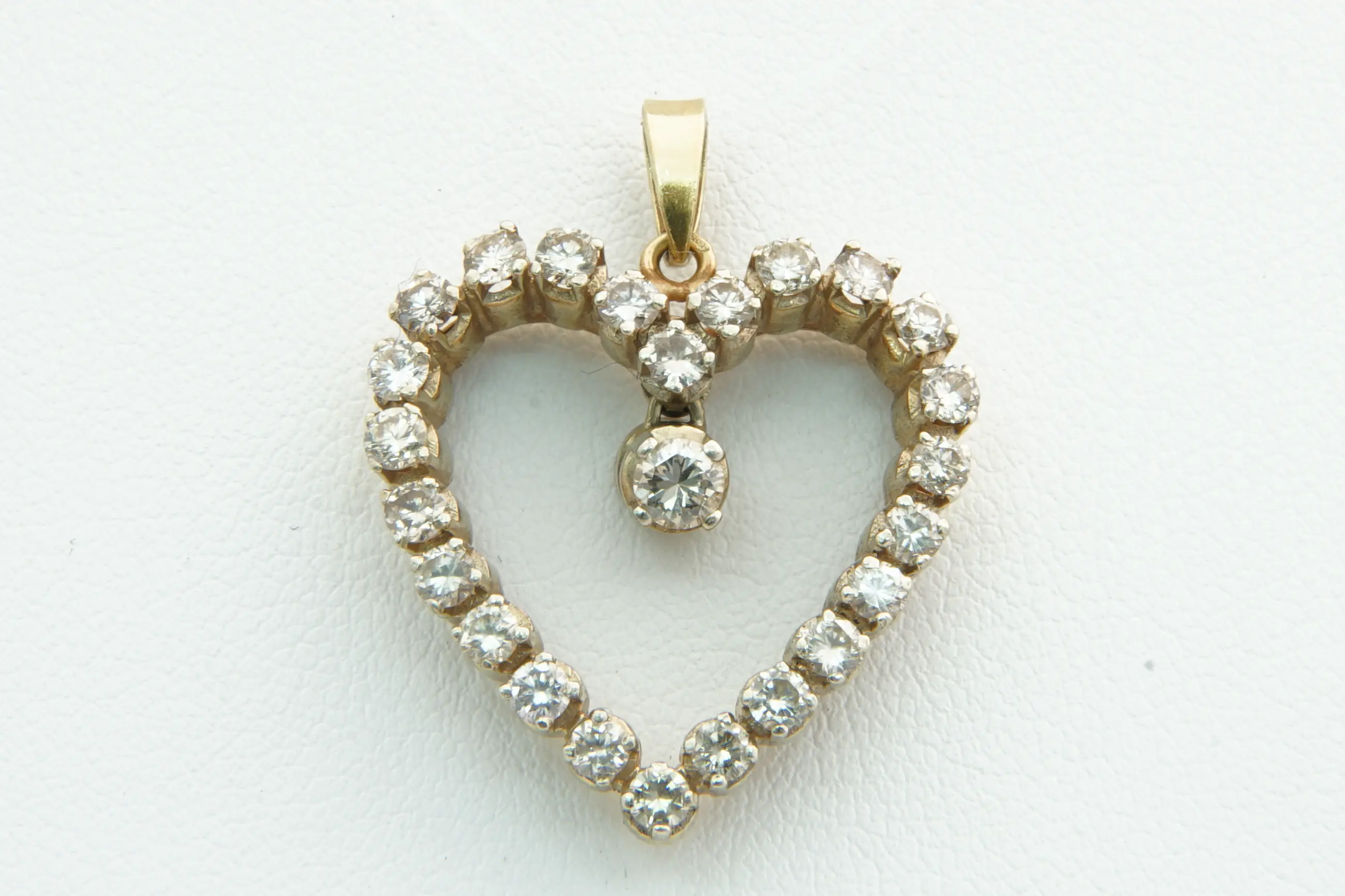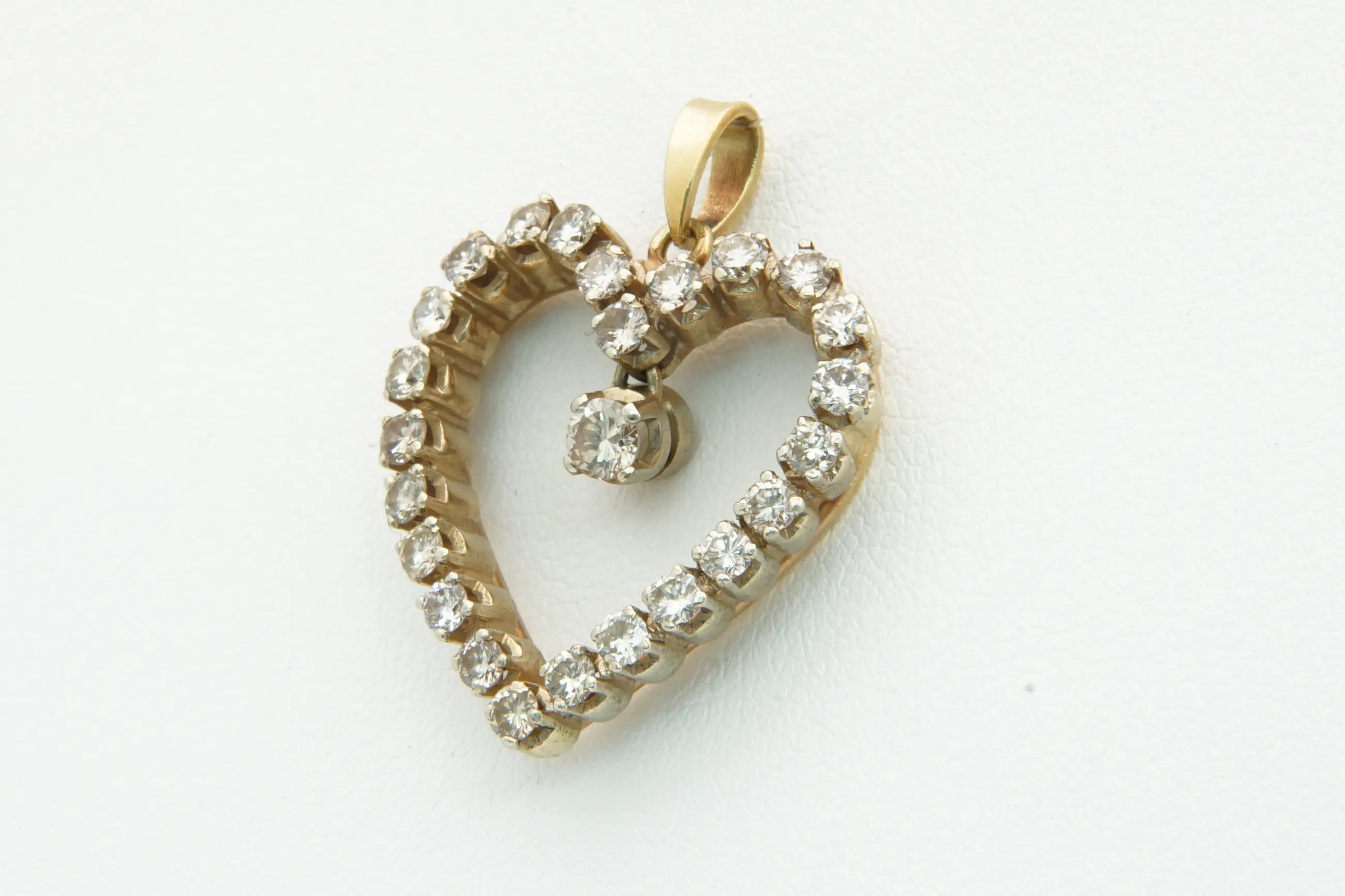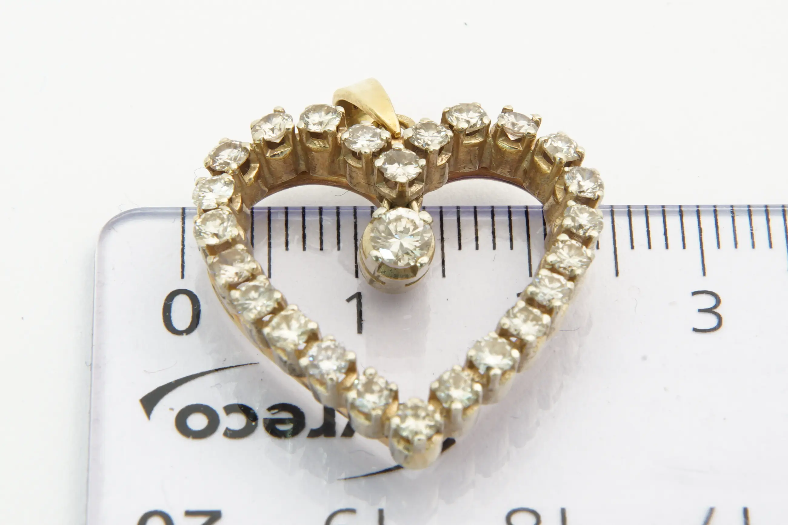 78 - Relatief grote14krt  geelgouden  harthanger met diamant ca 1.50crt briljant kopen? Bied vanaf 800!