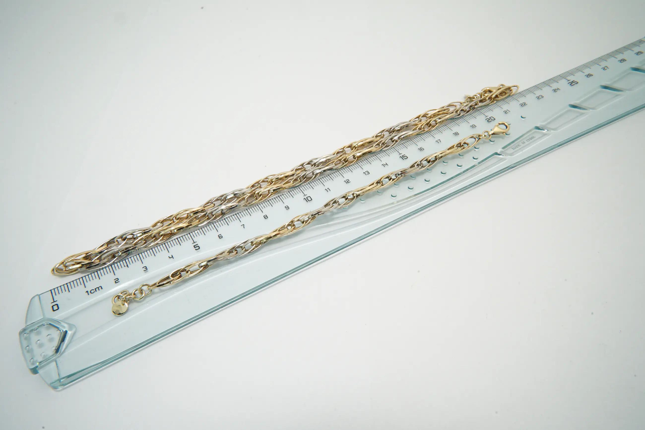 84- Sierlijke 14 Krt bi-color gouden SET (collier & armband) - fantasie schakel kopen? Bied vanaf 590!