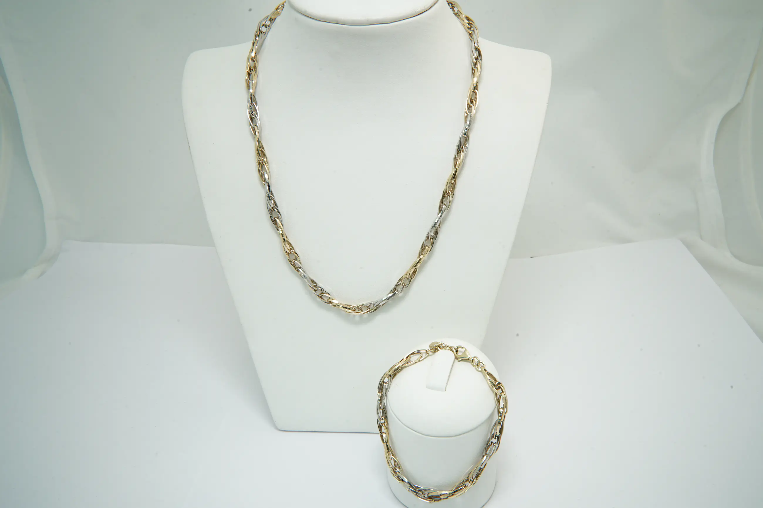 84- Sierlijke 14 Krt bi-color gouden SET (collier & armband) - fantasie schakel - Verkocht