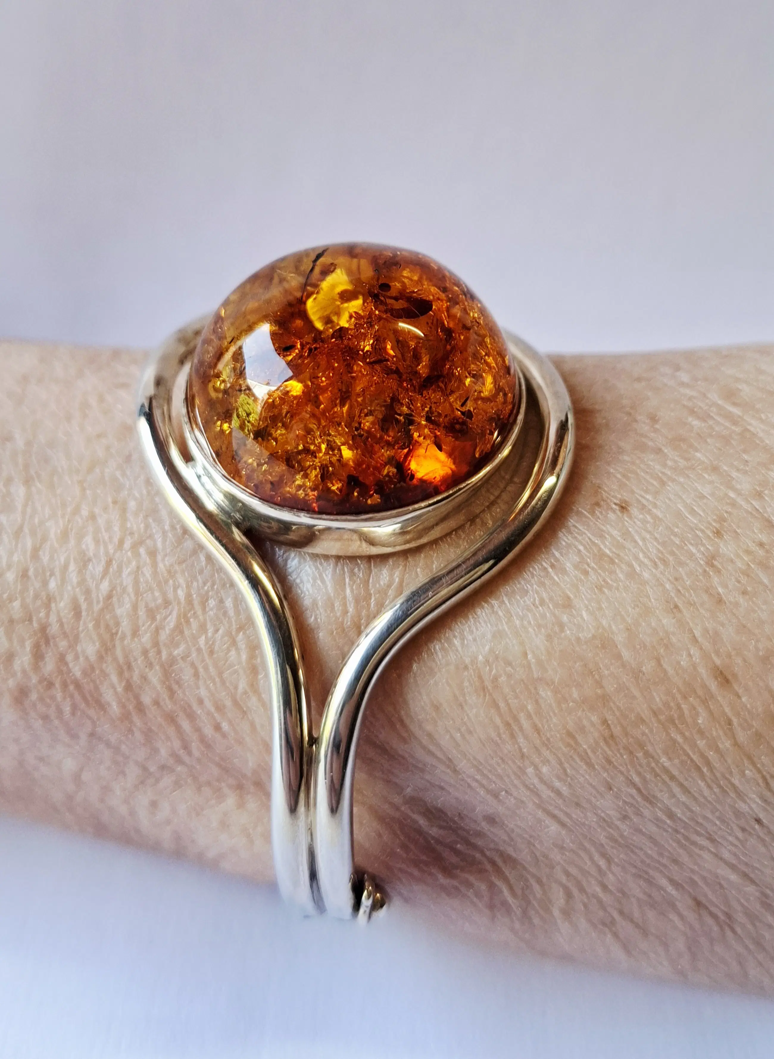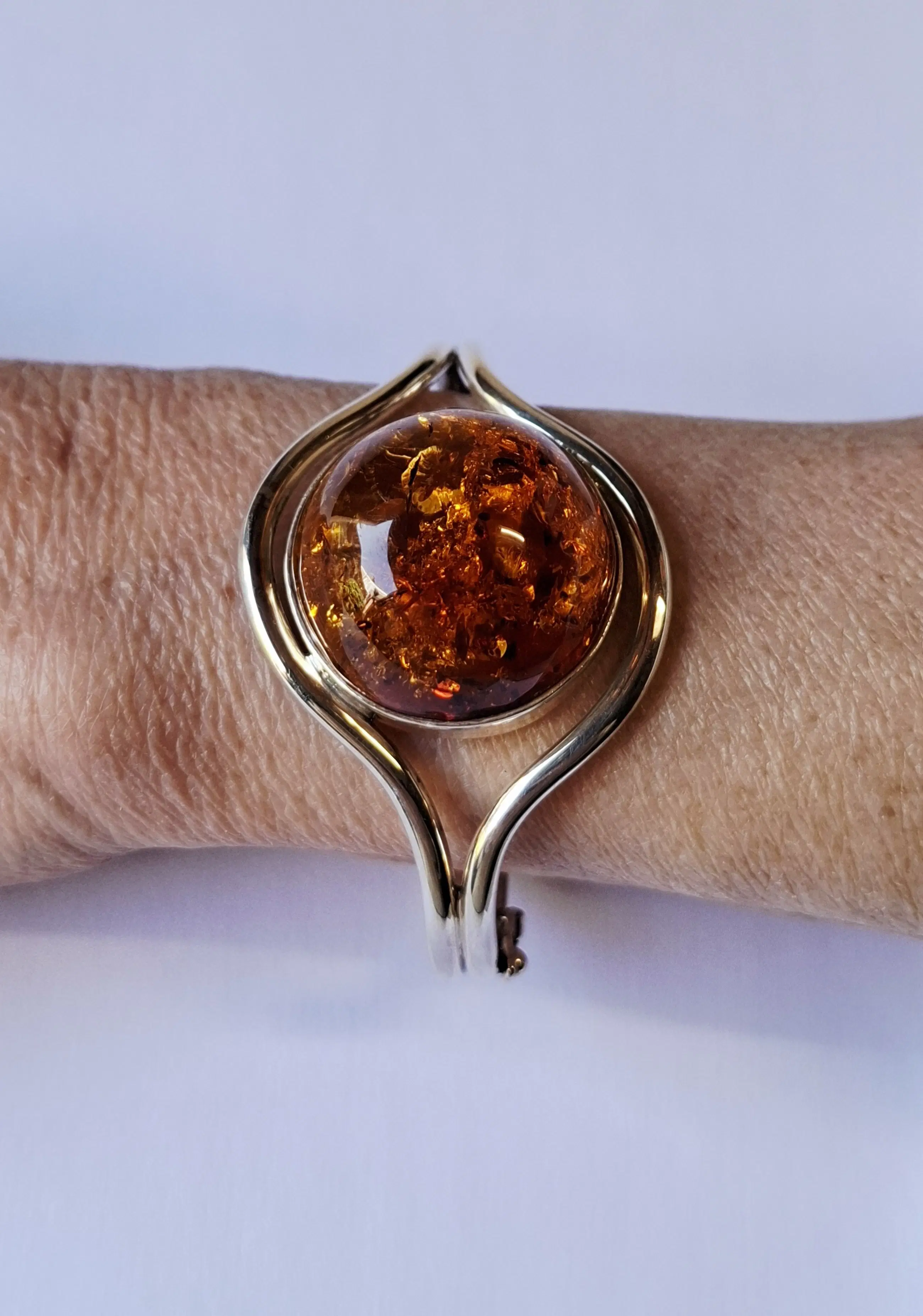 Deze nieuw Armband hebben altijd bij de verzamelaar in een dichte vitrine bak gelegen gemaakt in 2010 . Eigenlijk is het een bolvormige barnsteen armband in zilver met glanzend oppervlak en 1 cabochongeslepen roodbruin barnstenen.