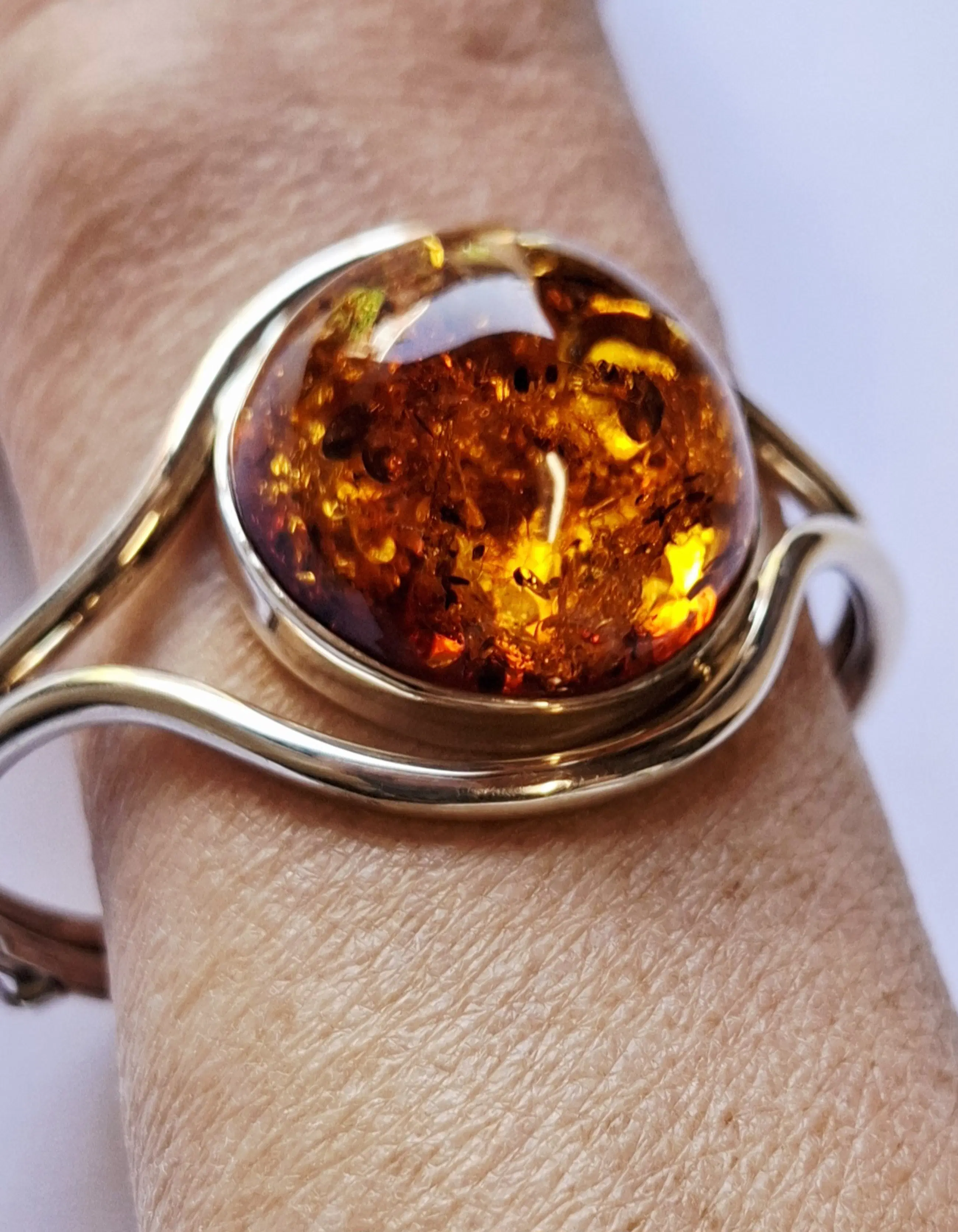 Ambachtelijke prachtige gold amber sterling zilveren armband