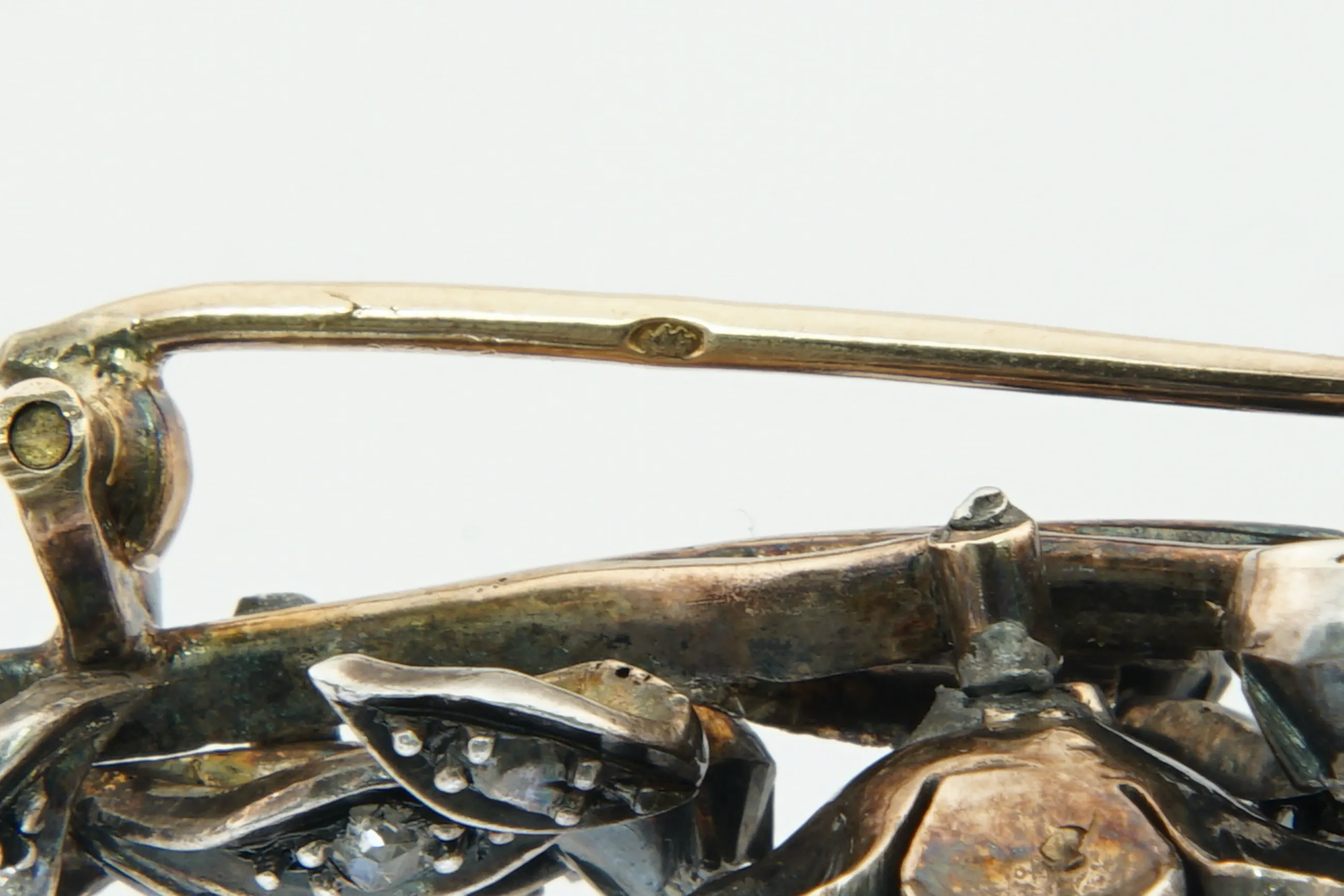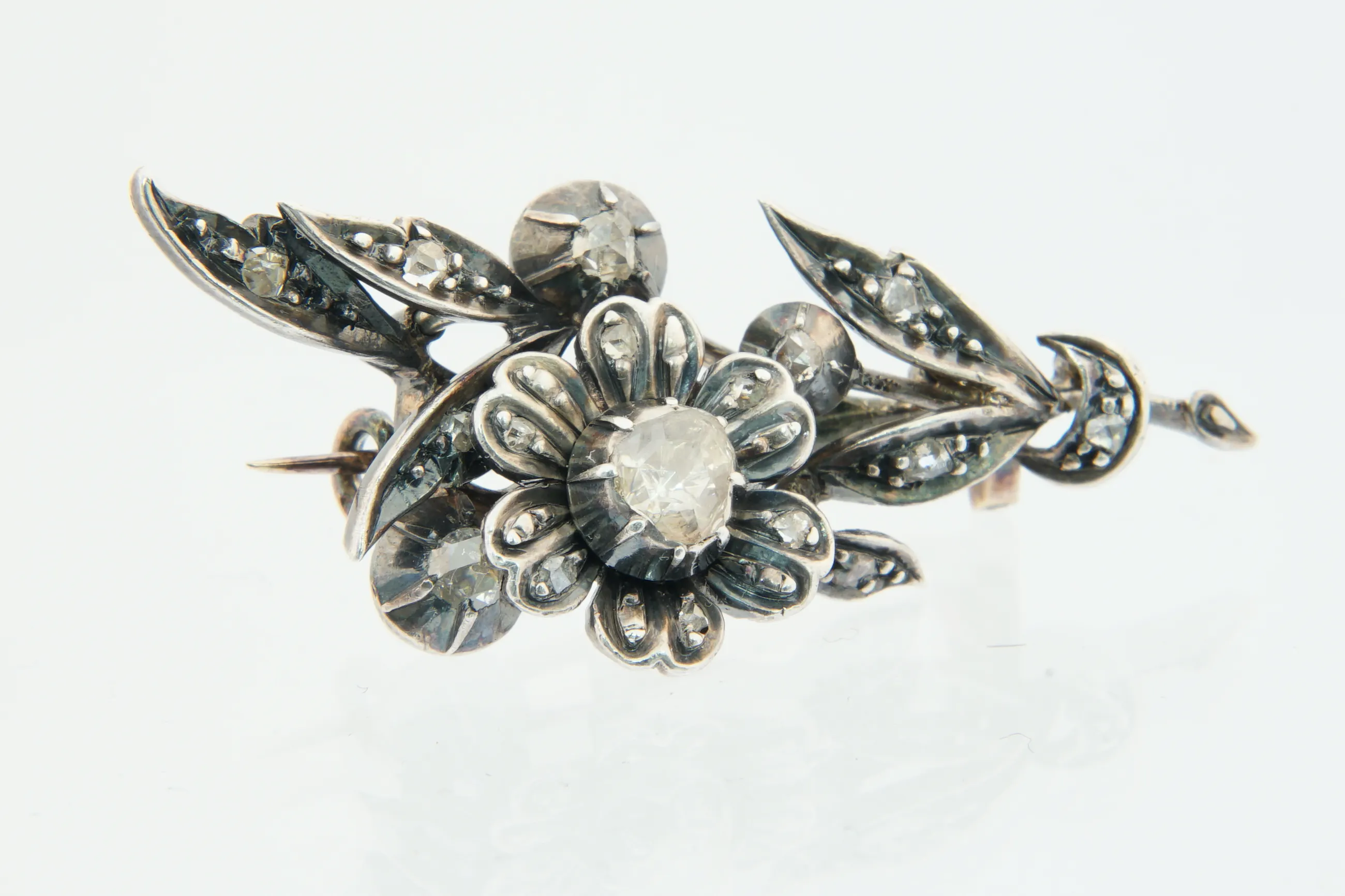Antiek zilver op goud en diamanten Broche kopen? Bied vanaf 270!