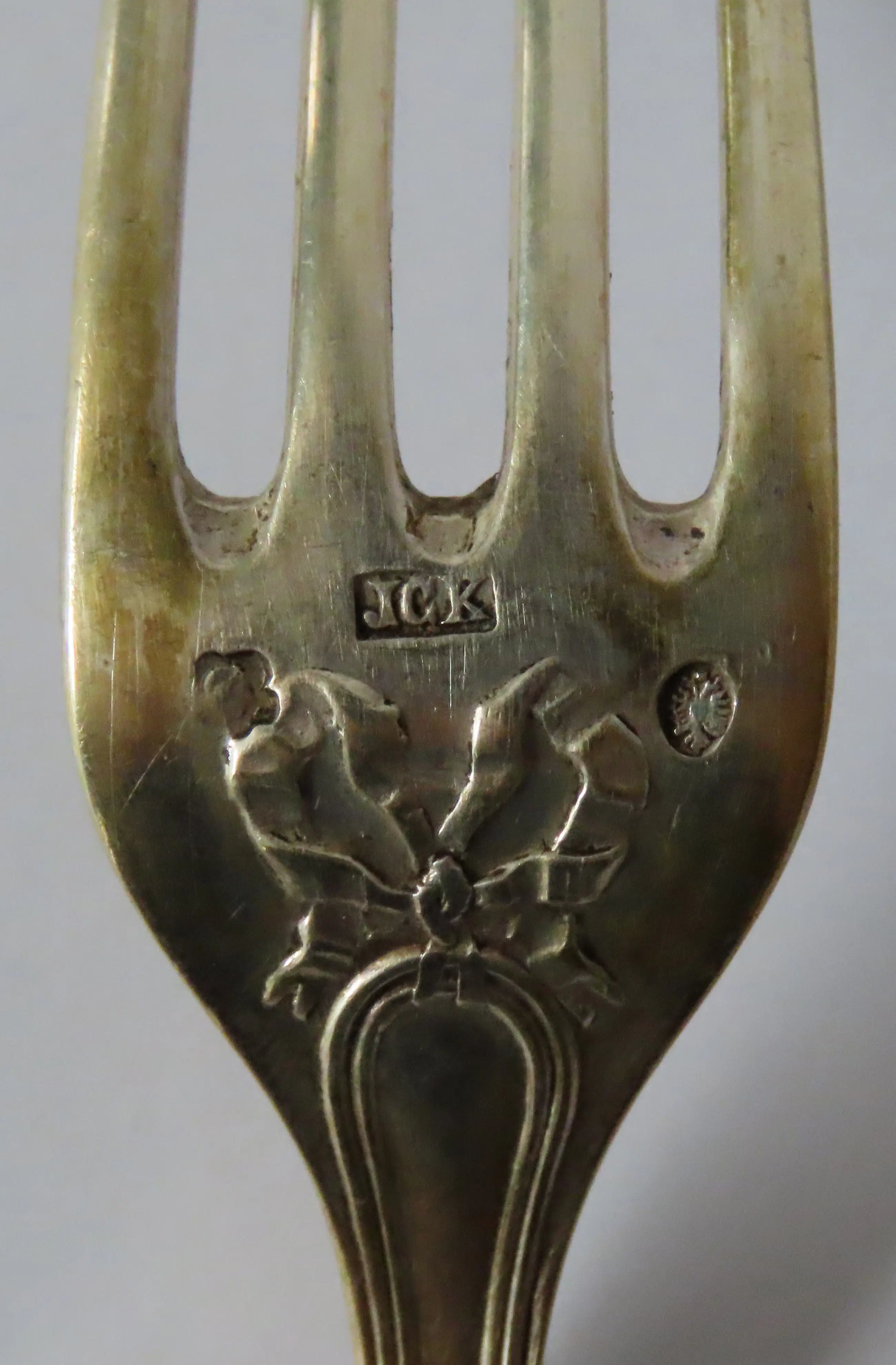 Antiek ´verzilderd´ bestek, 14 stuks:
