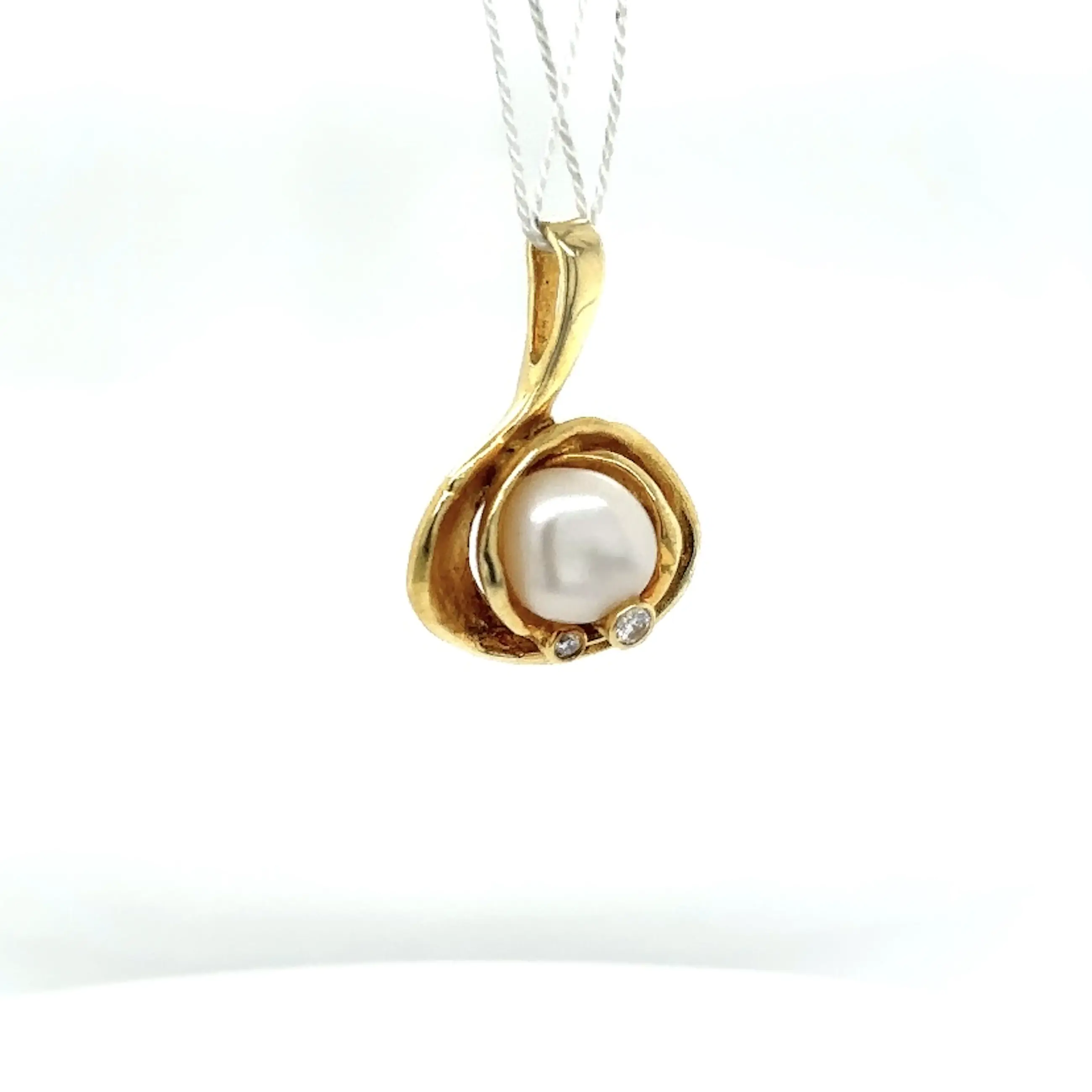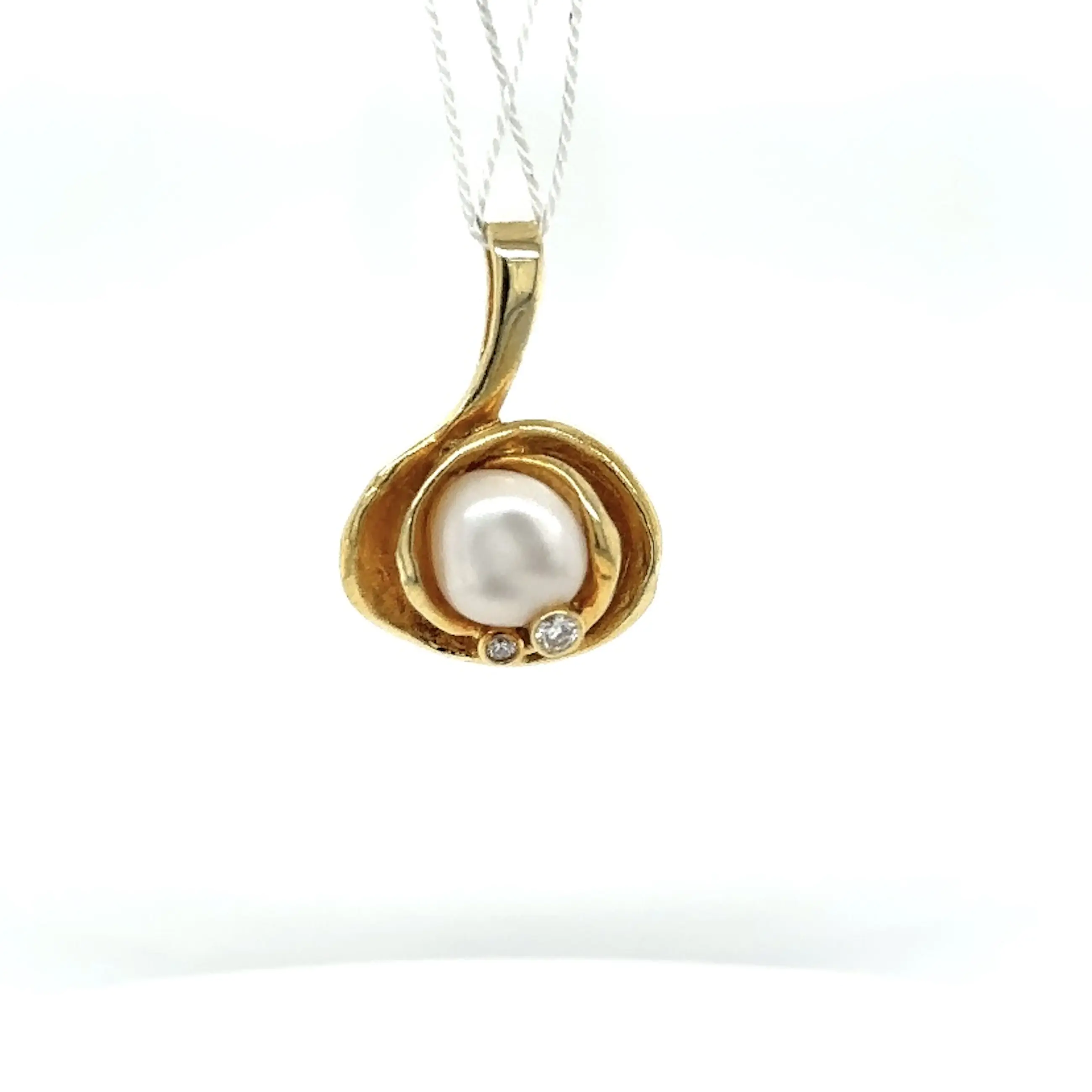 Ausgefallener Anhänger in 14 Karat (585) Gelbgold mit Perle & Brillanten - Verkocht
