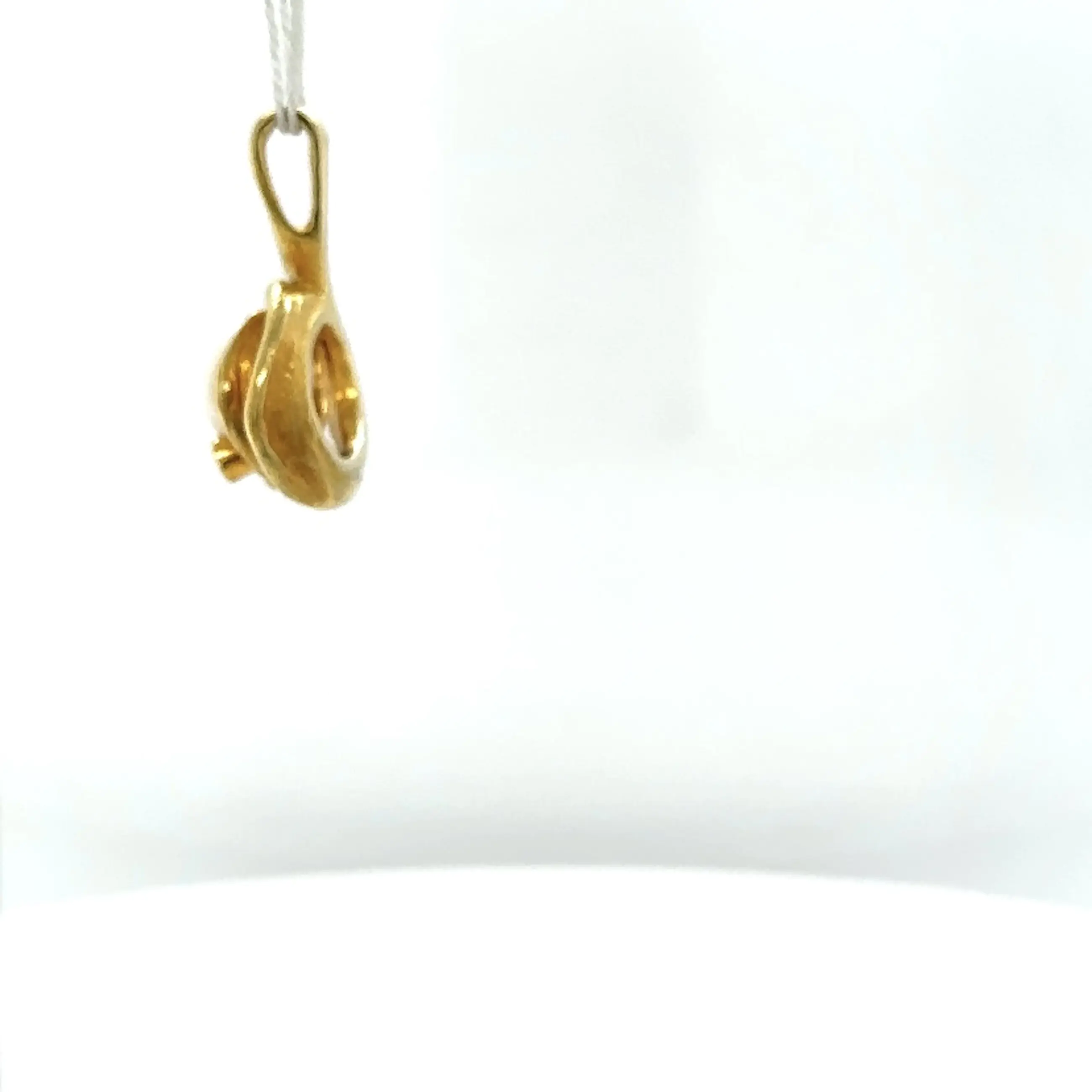 Hierbei handelt es sich um einen ausgefallenen Anhänger in 14 Karat (585/-.) Gelbgold, welcher aufwendig von Hand gefertigt und mit 2 Brillanten mit einem Durchmesser und Gewicht von 1.7mm und 0.02ct. sowie 2.2mm und 0.04ct. (0.06carat total) in der Qualität Top-Wesselton (G/feines weiß) und Si (kleine Einschlüsse) besetzt wurde. Zusätzlich wurde eine schneeweiße asymmetrische Süßwasserperle mit einem Durchmesser von 8.1mm verwendet. Das Lüster und die rundlichen Formen haben eine sehr edle Ausstrahlung, die Oberflächenbeschaffenheit ist ideal.