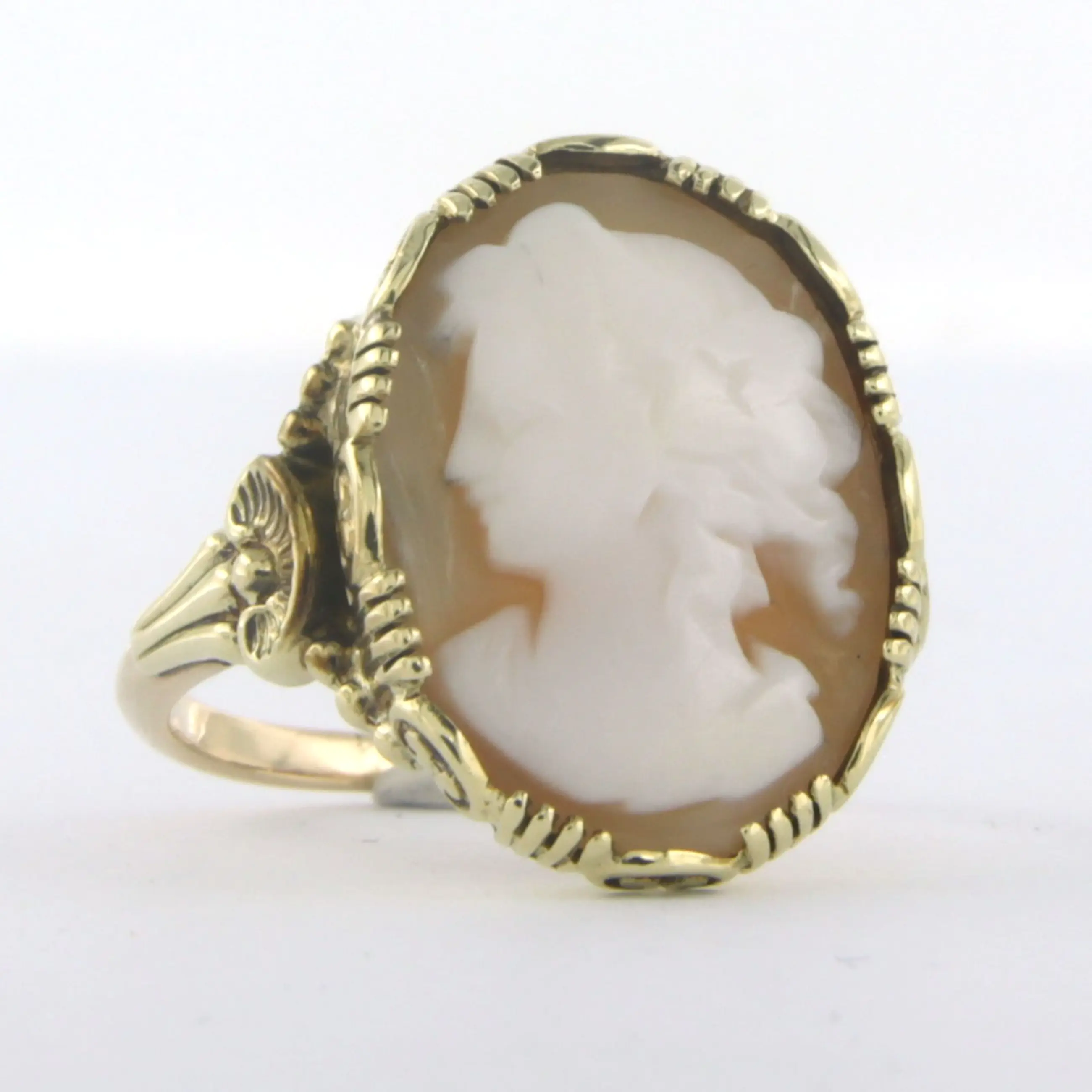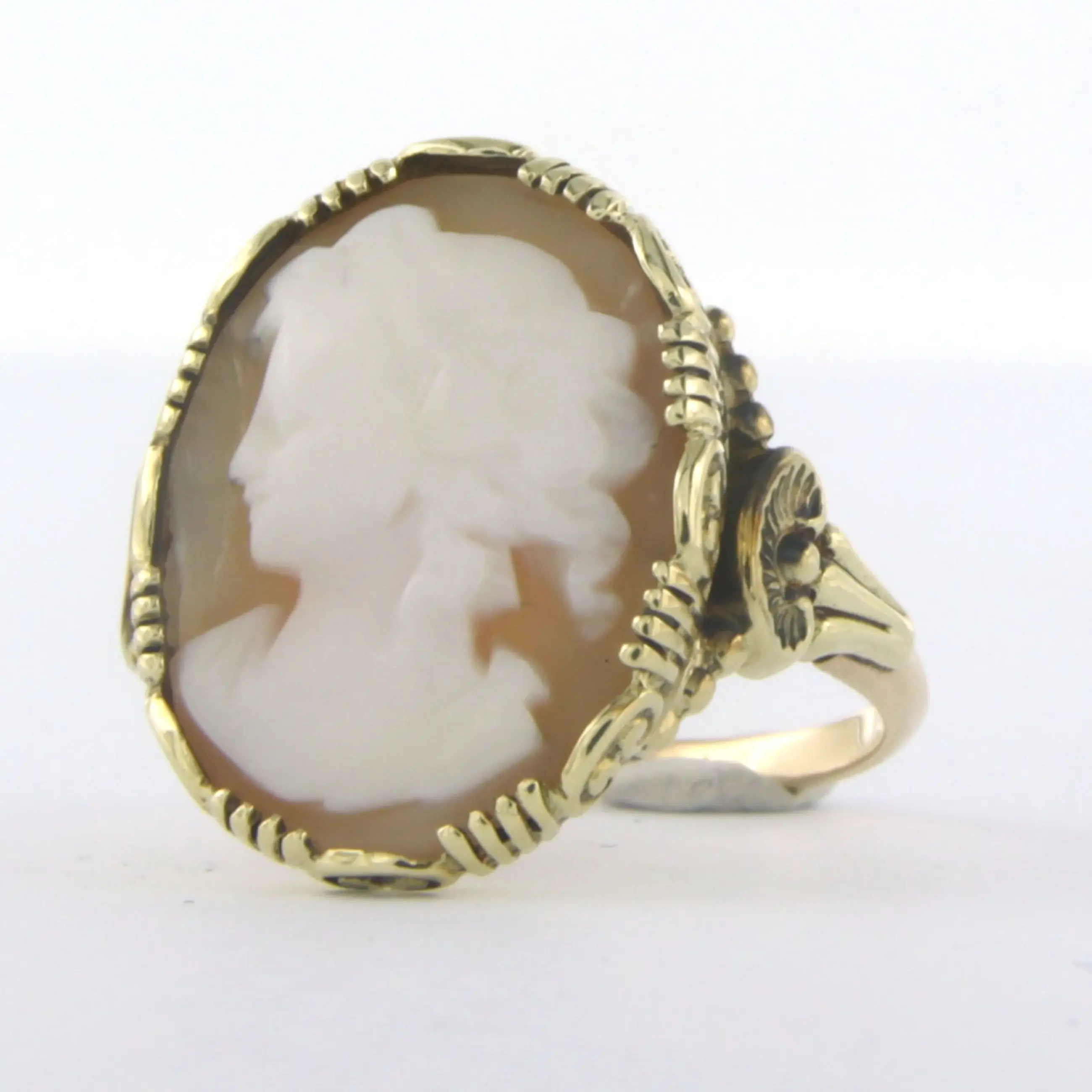 BWG gele ring bezet met een camee - ringmaat 16.5(52)