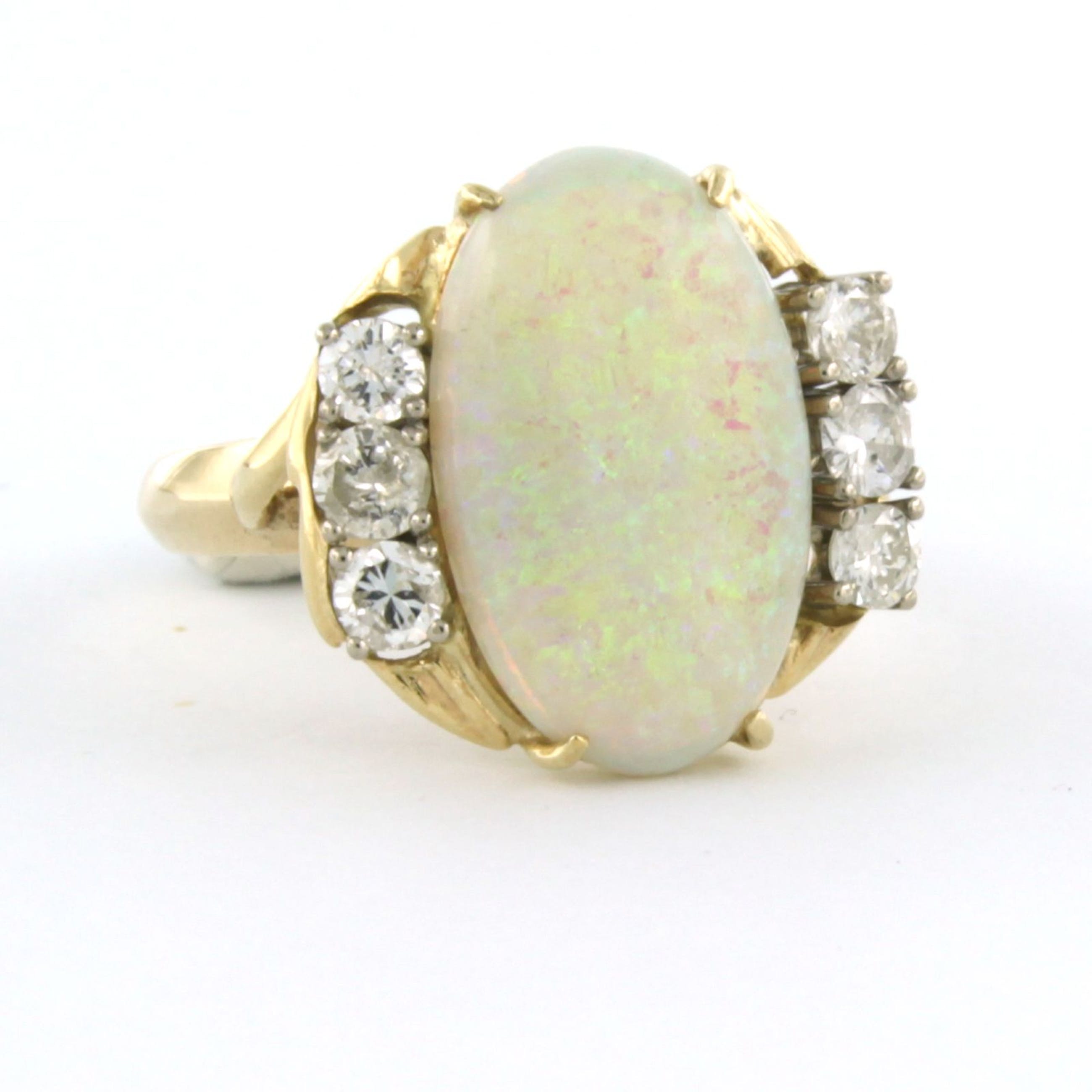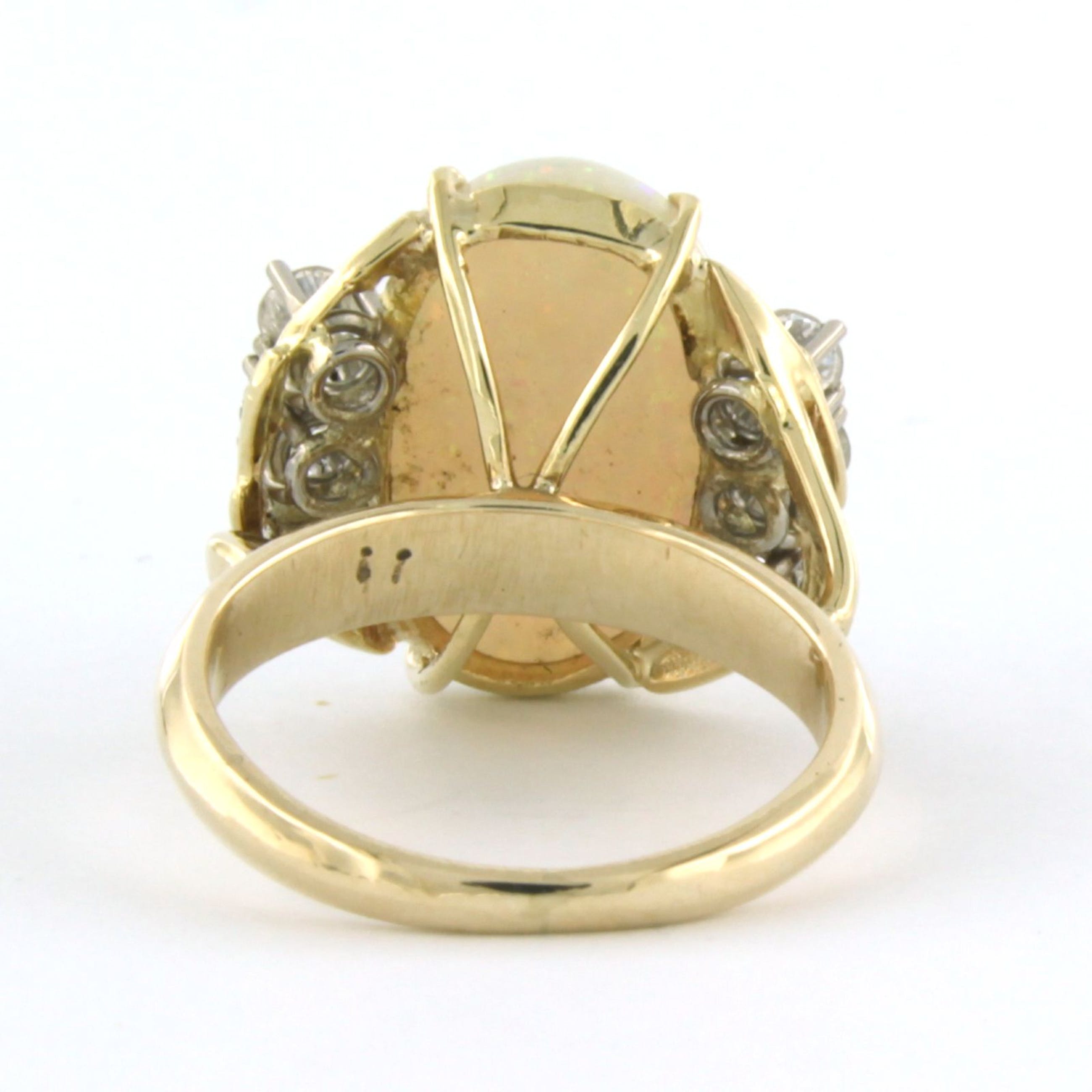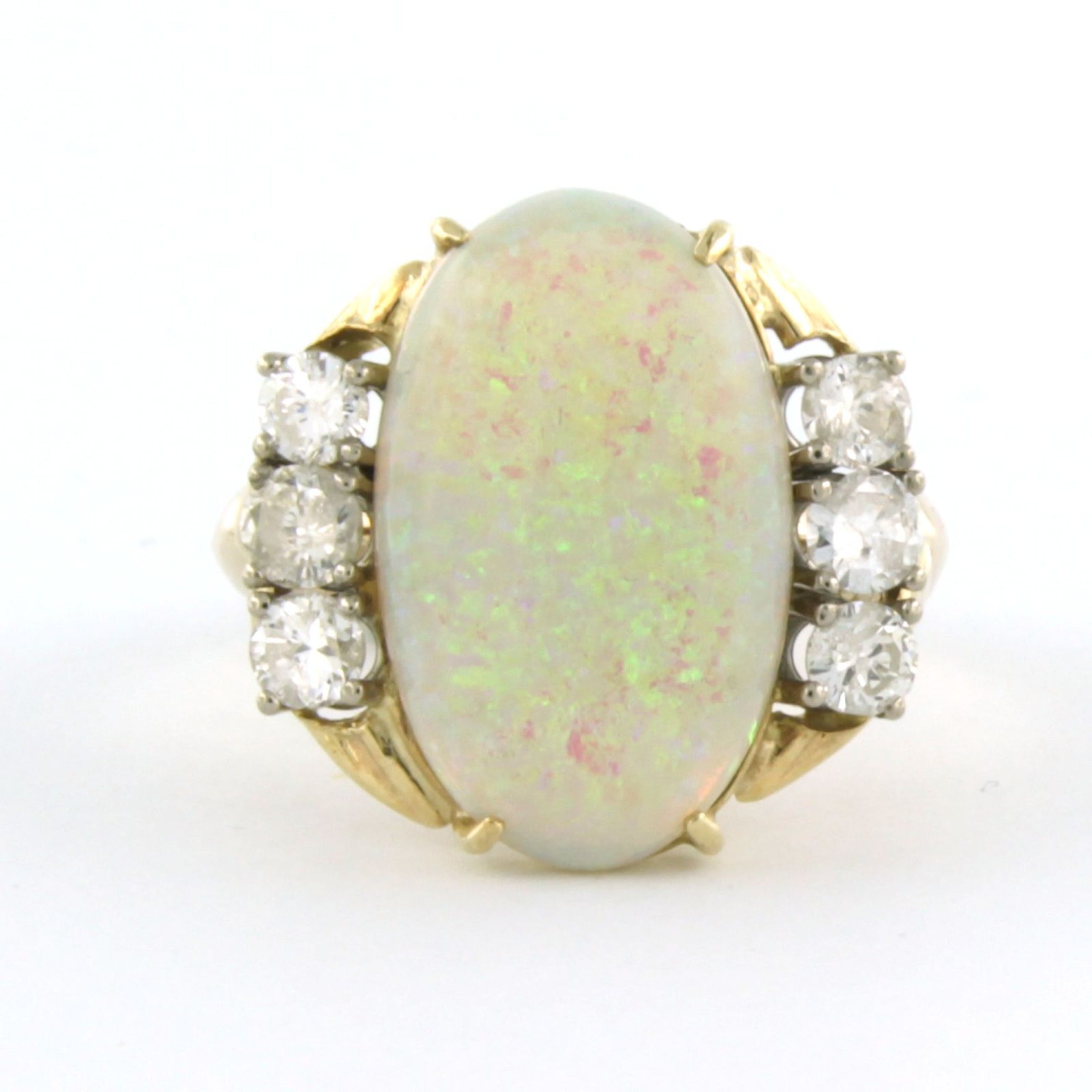 BWG gele ring bezet met opaal en briljant geslepen diamanten tot. 0.50ct - F/G - pique oneindig - ringmaat 16(50)