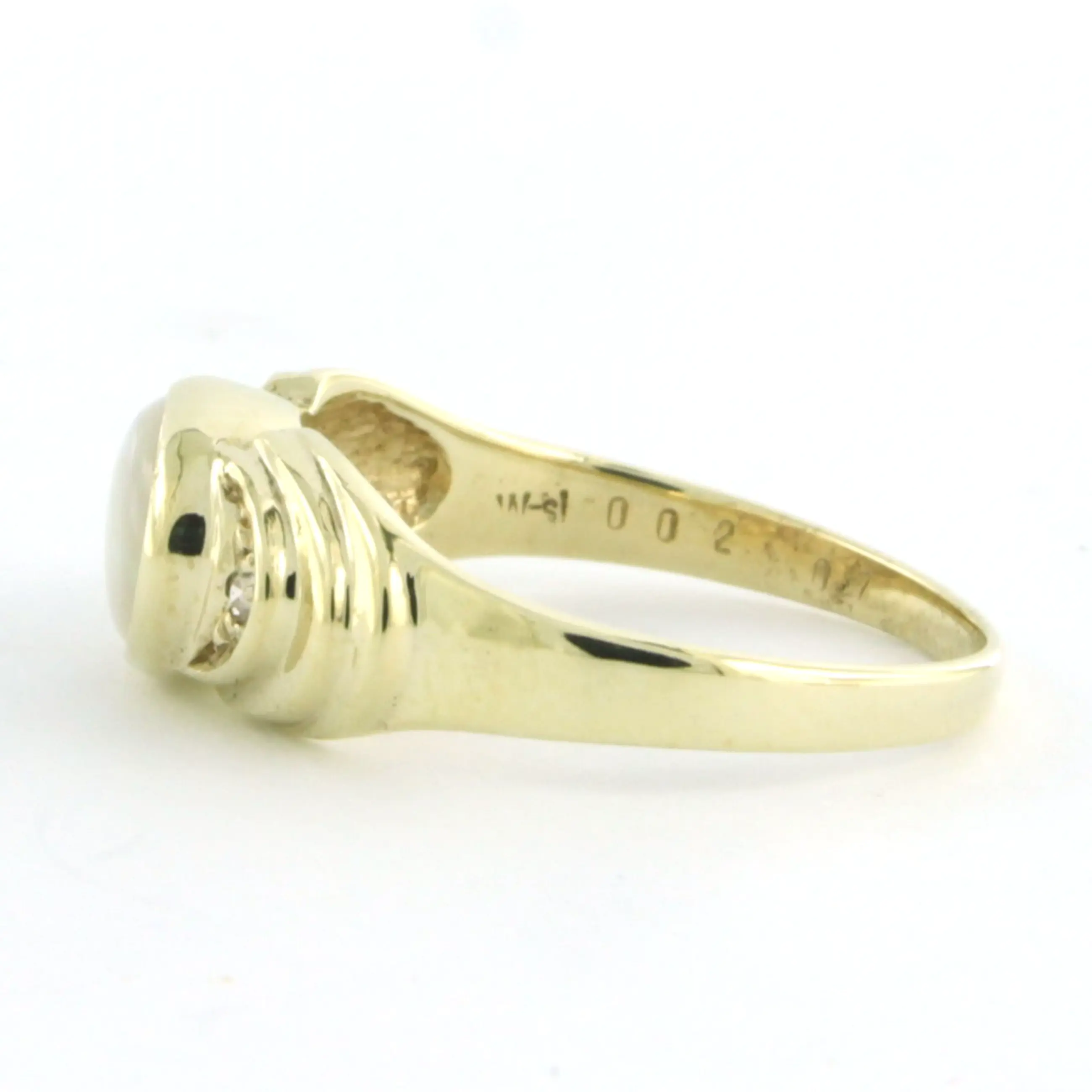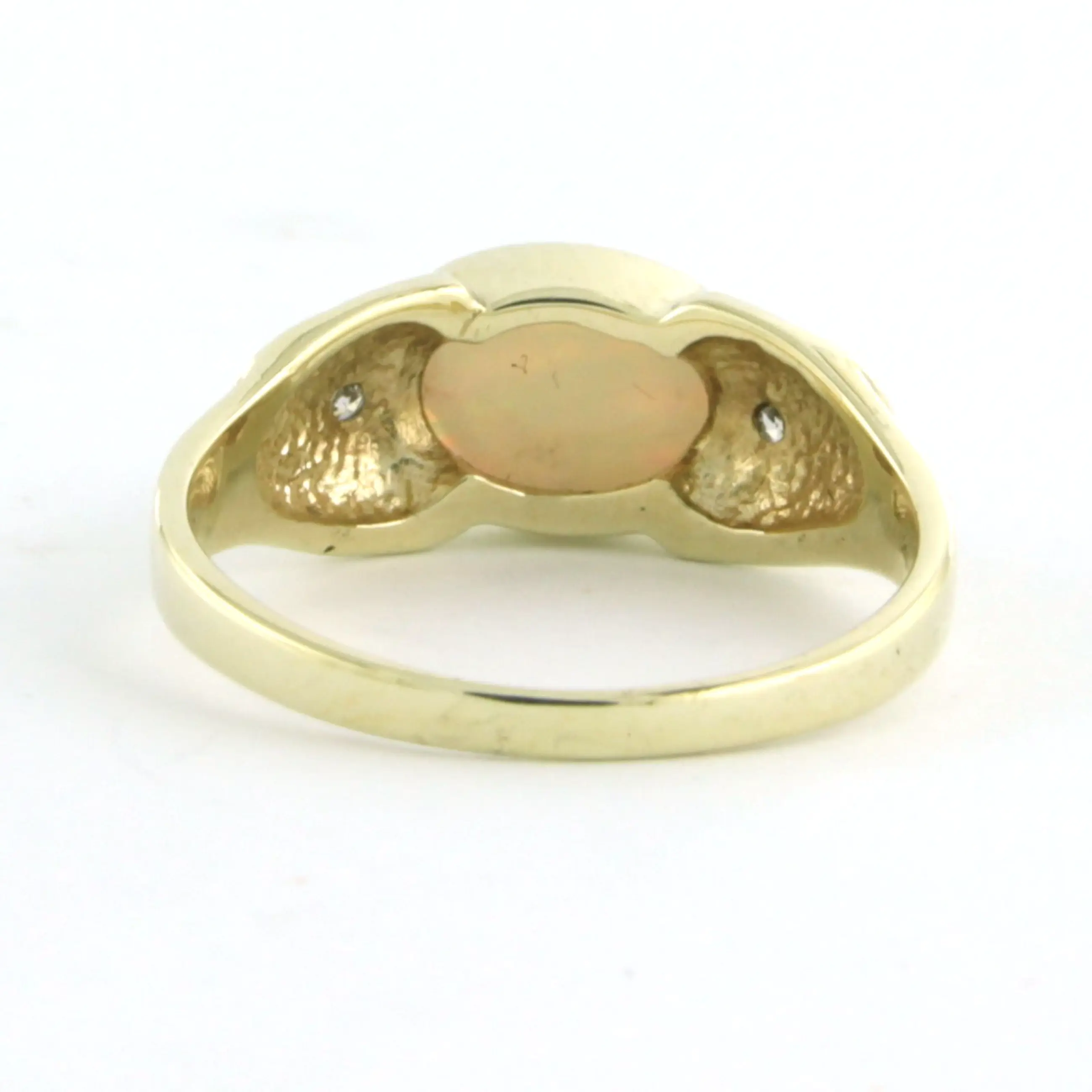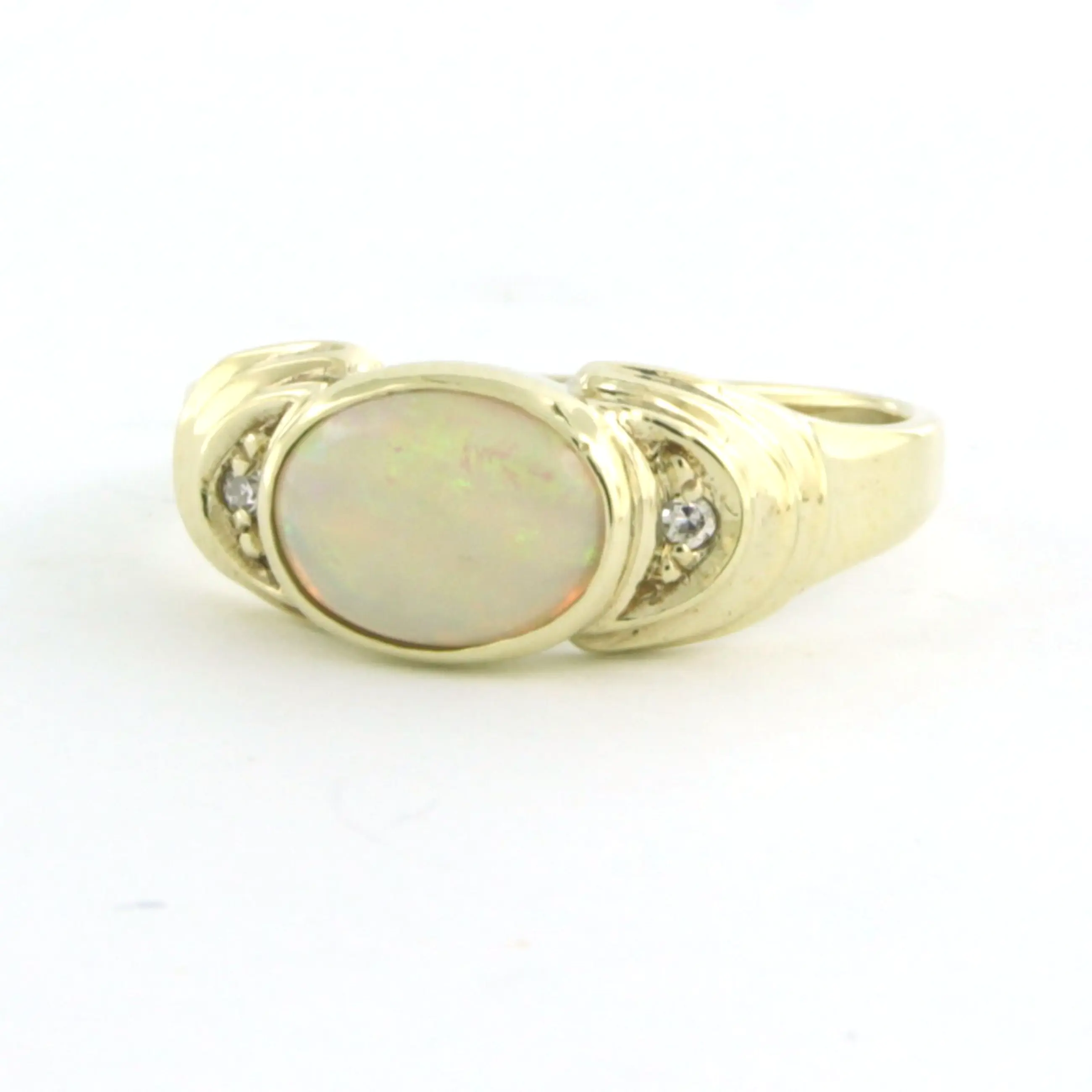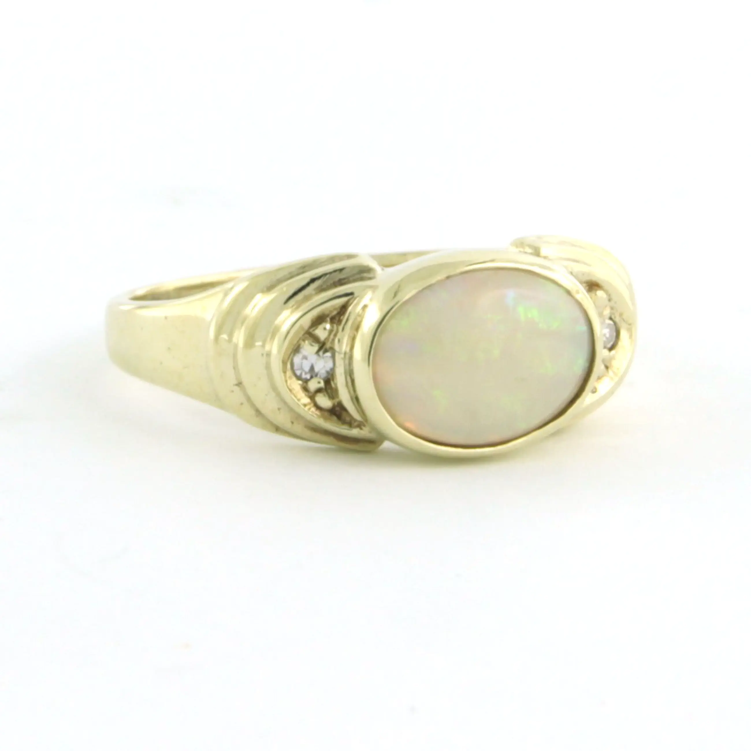 BWG gele ring bezet met opaal en single cut geslepen diamant tot. 0.02ct- G/H - SI - ringmaat 16.5(52)