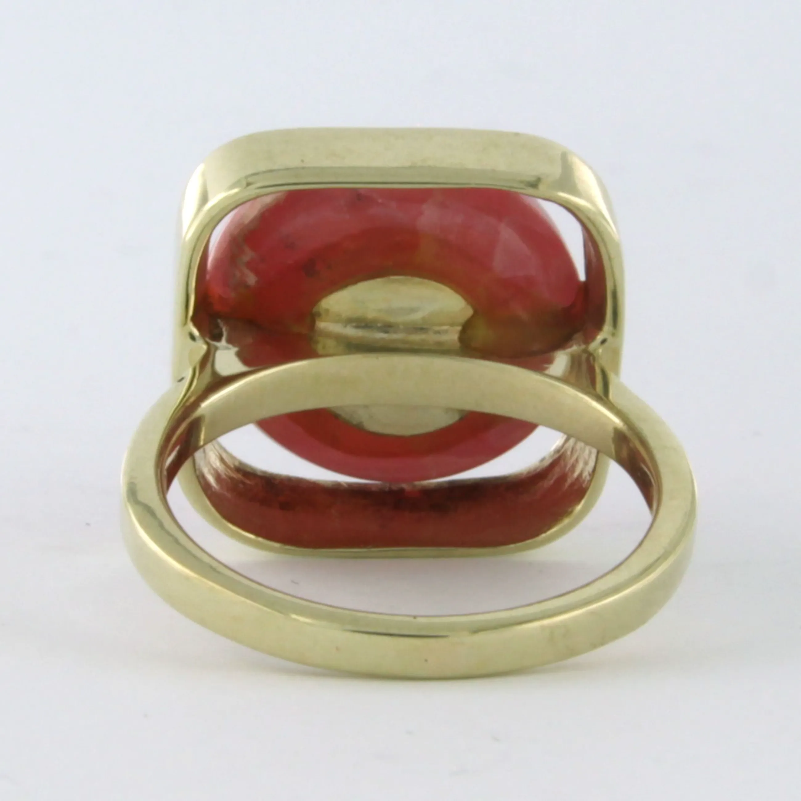 BWG gele ring bezet met roze agaat - ringmaat 17(53)