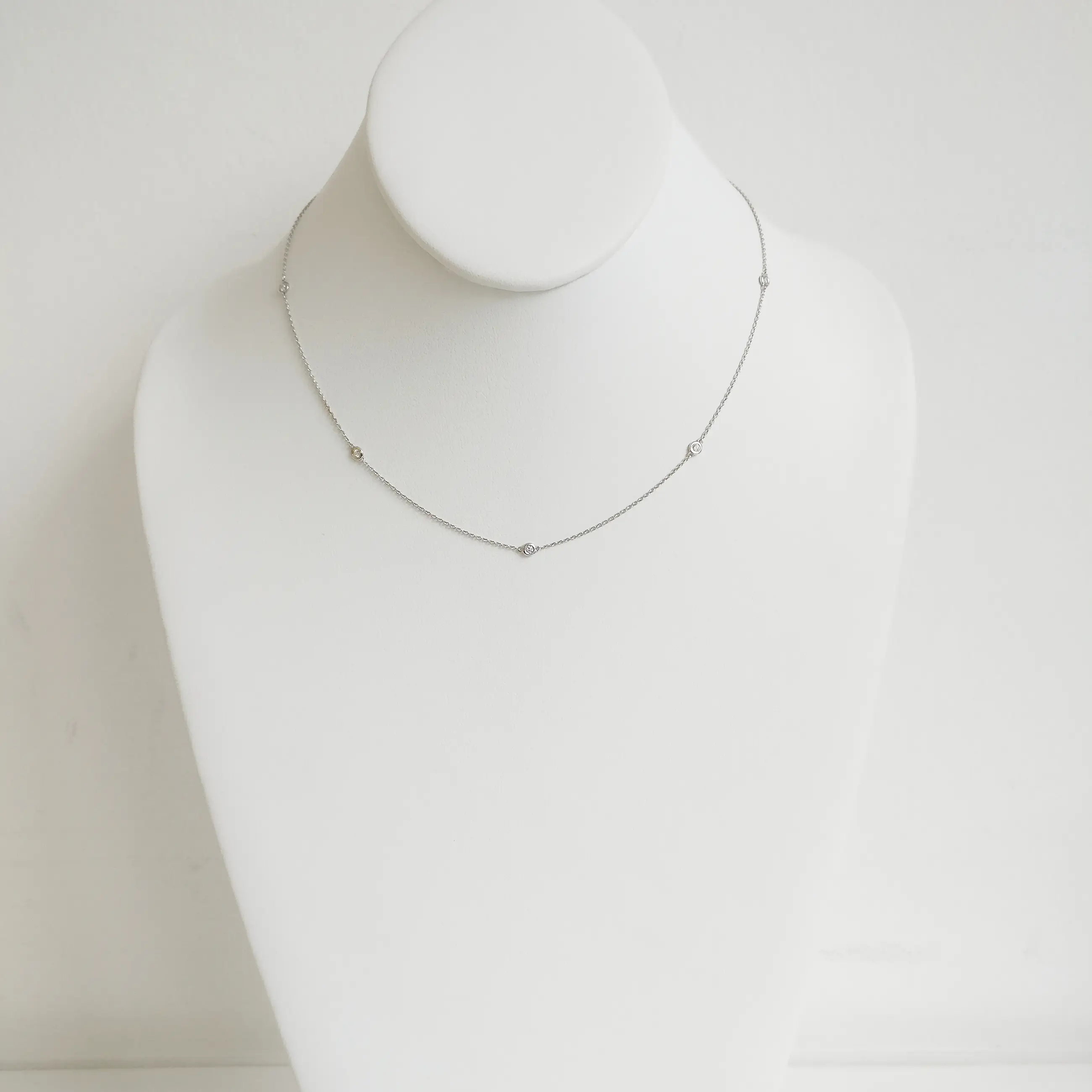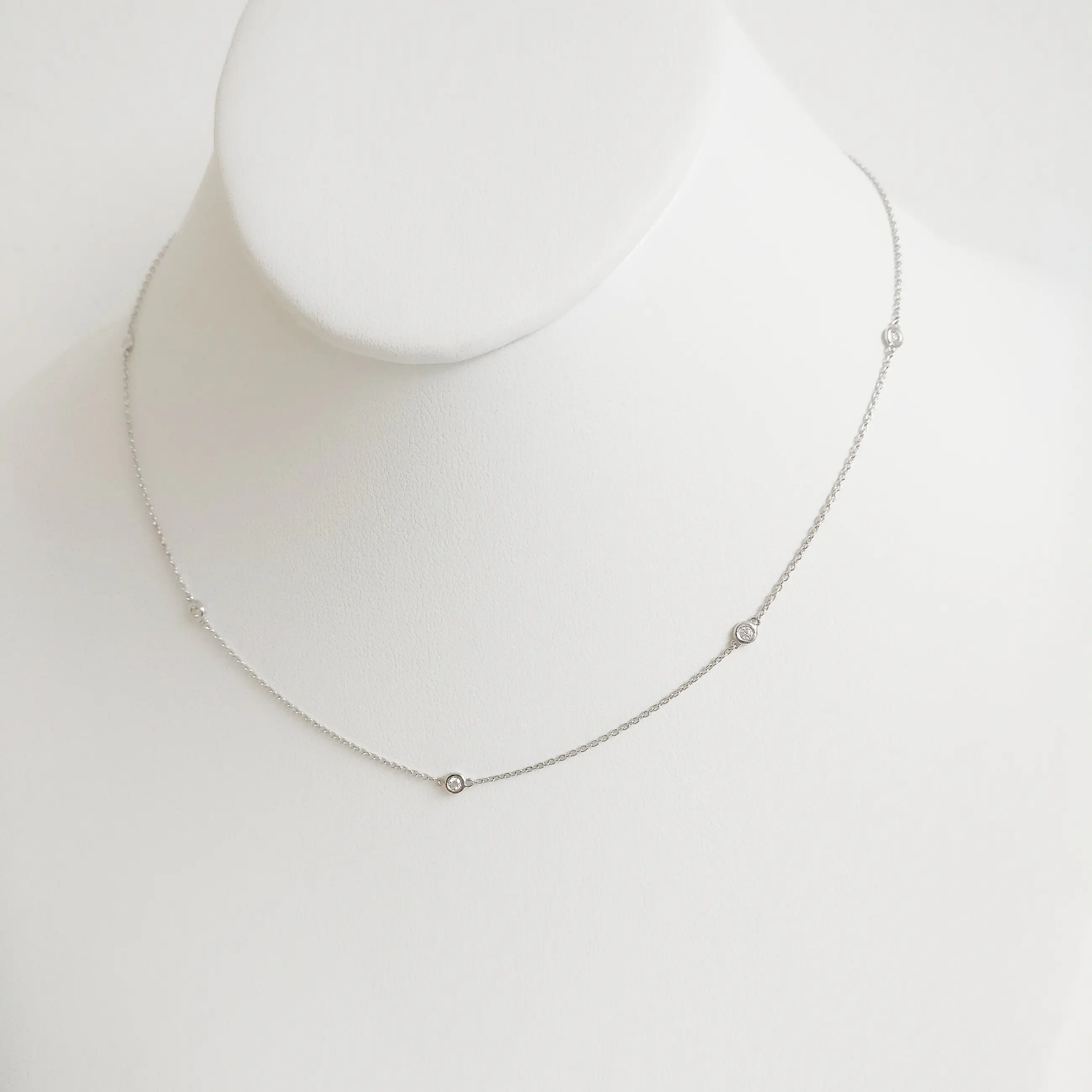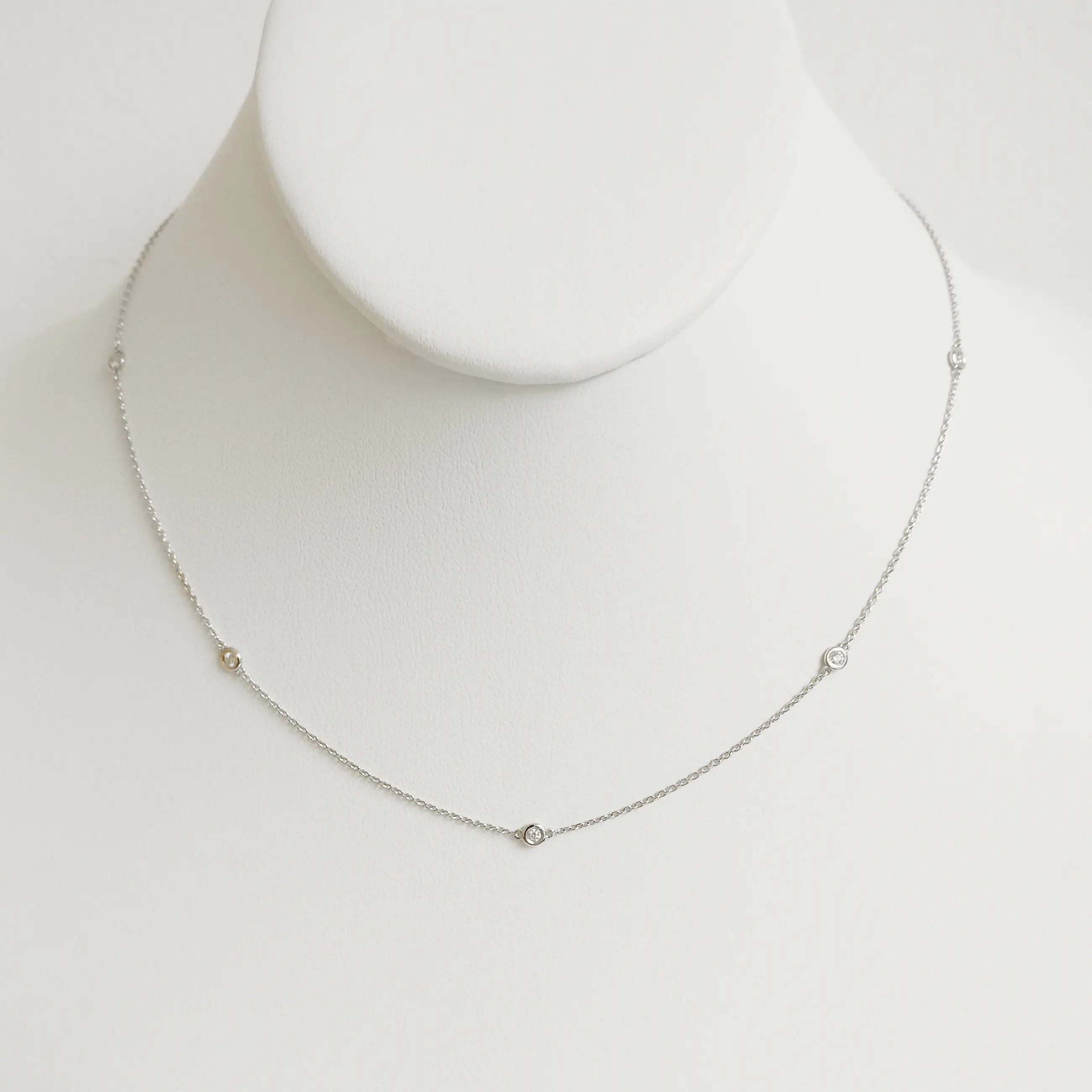 Een stijlvolle en elegante ketting van witgoud (18kt) bezet met 7 natuurlijke ronde diamanten van 0,21 ct (GH VS). Brutogewicht: 2,44 gram