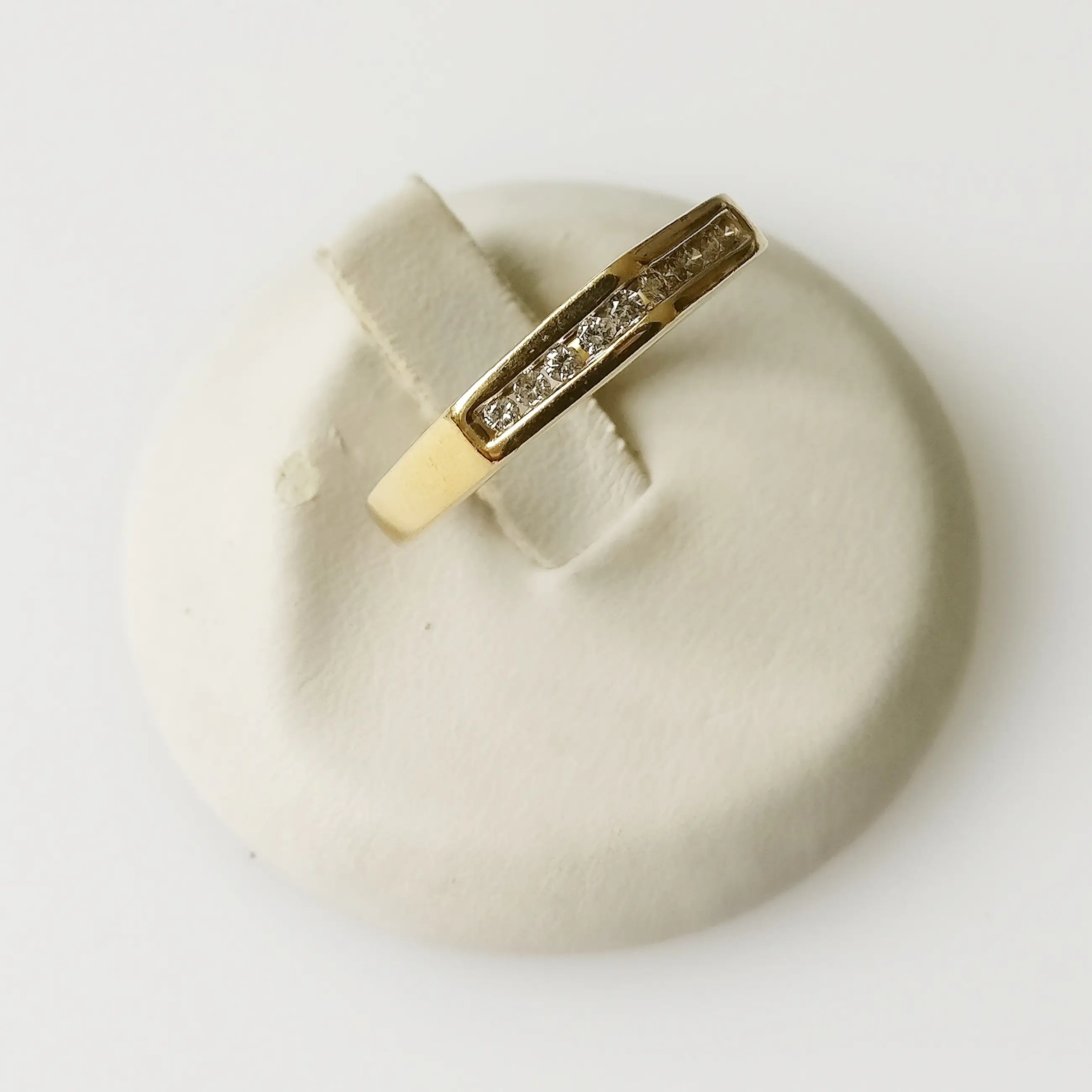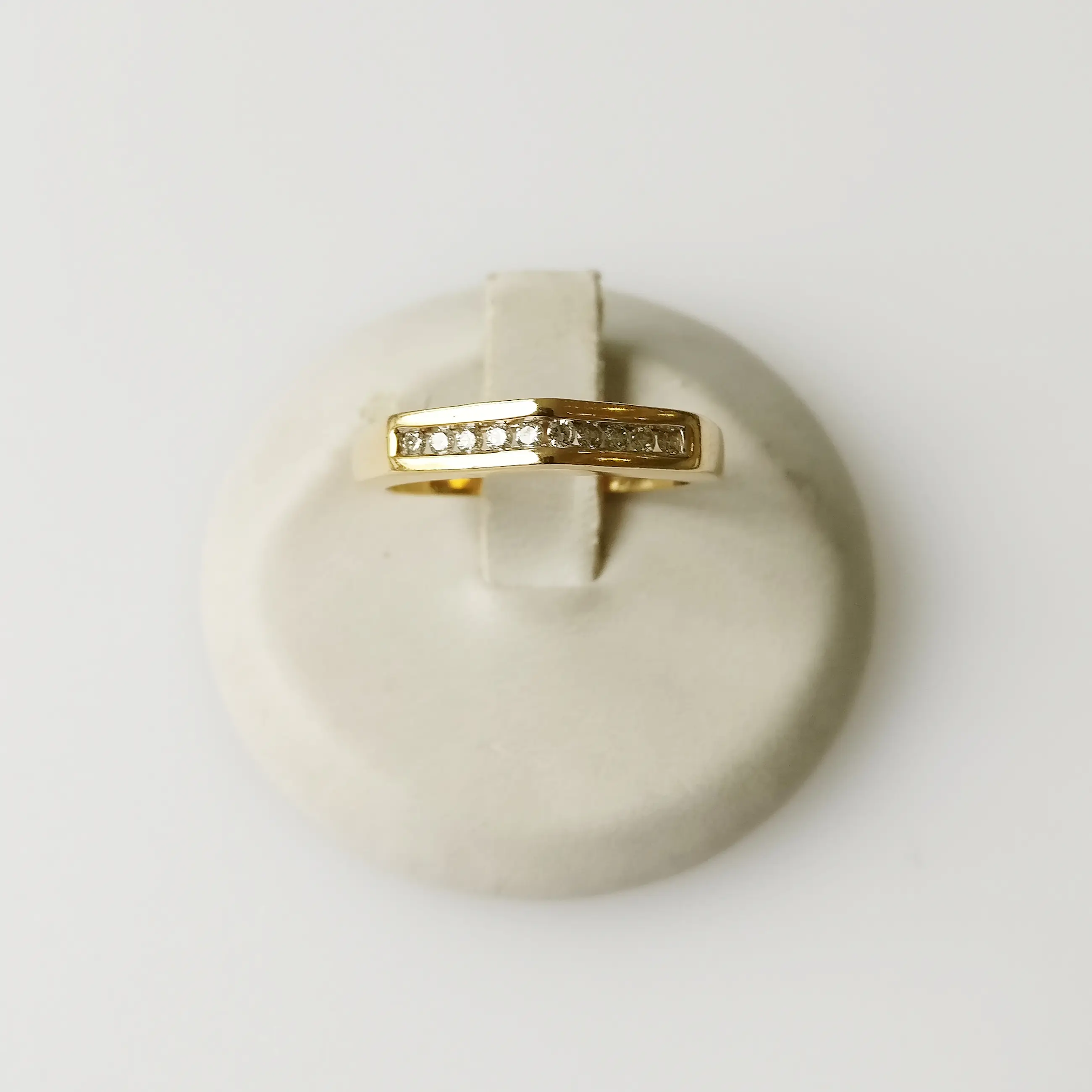 Diamanten ring in 14 karaat geelgoud Brutogewicht: 4,18 gram Bezette met 10 natuurlijke diamanten met een totaal gewicht van 0,16 ct (GH VS-SI).