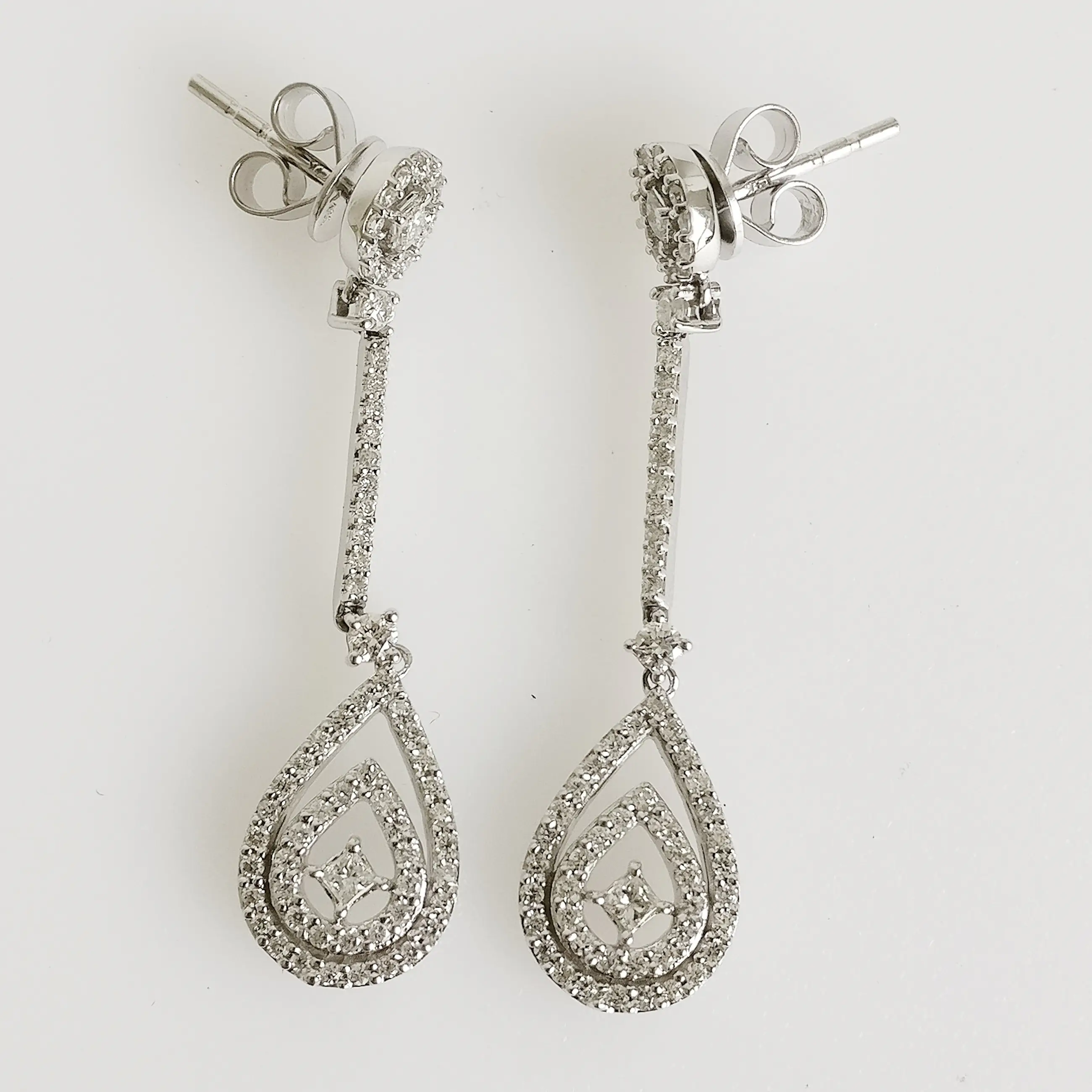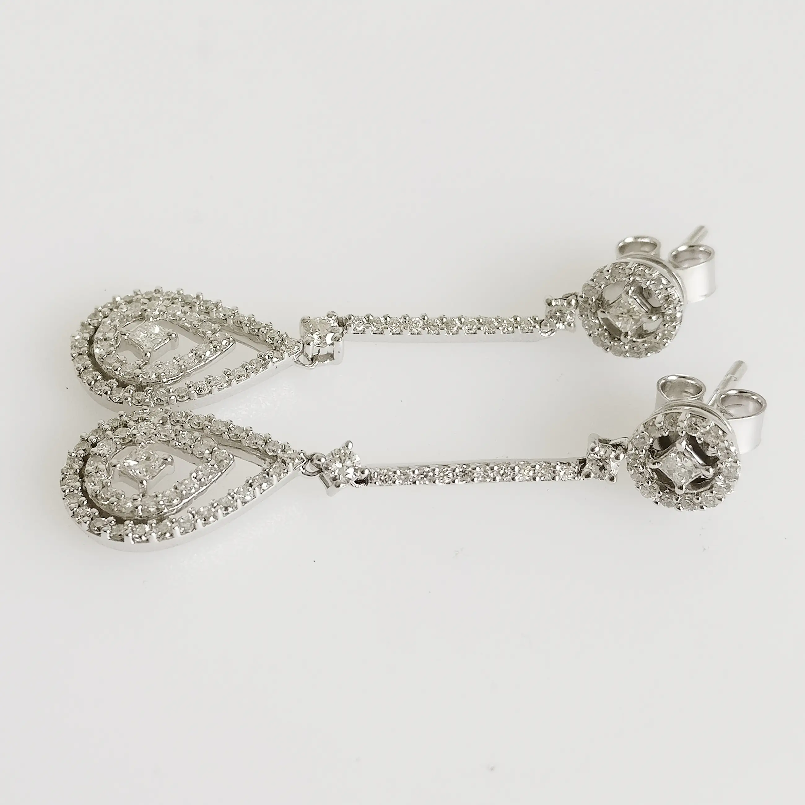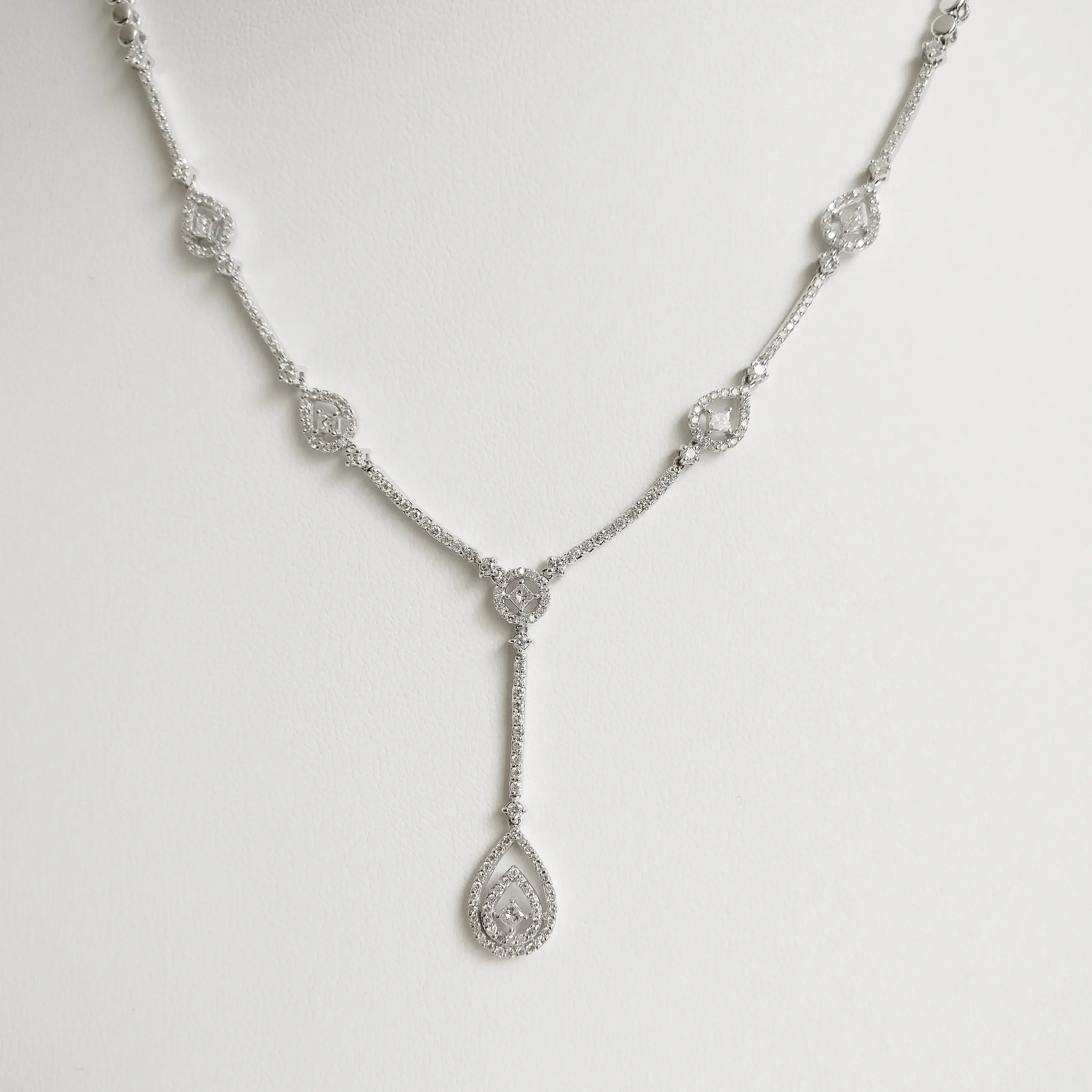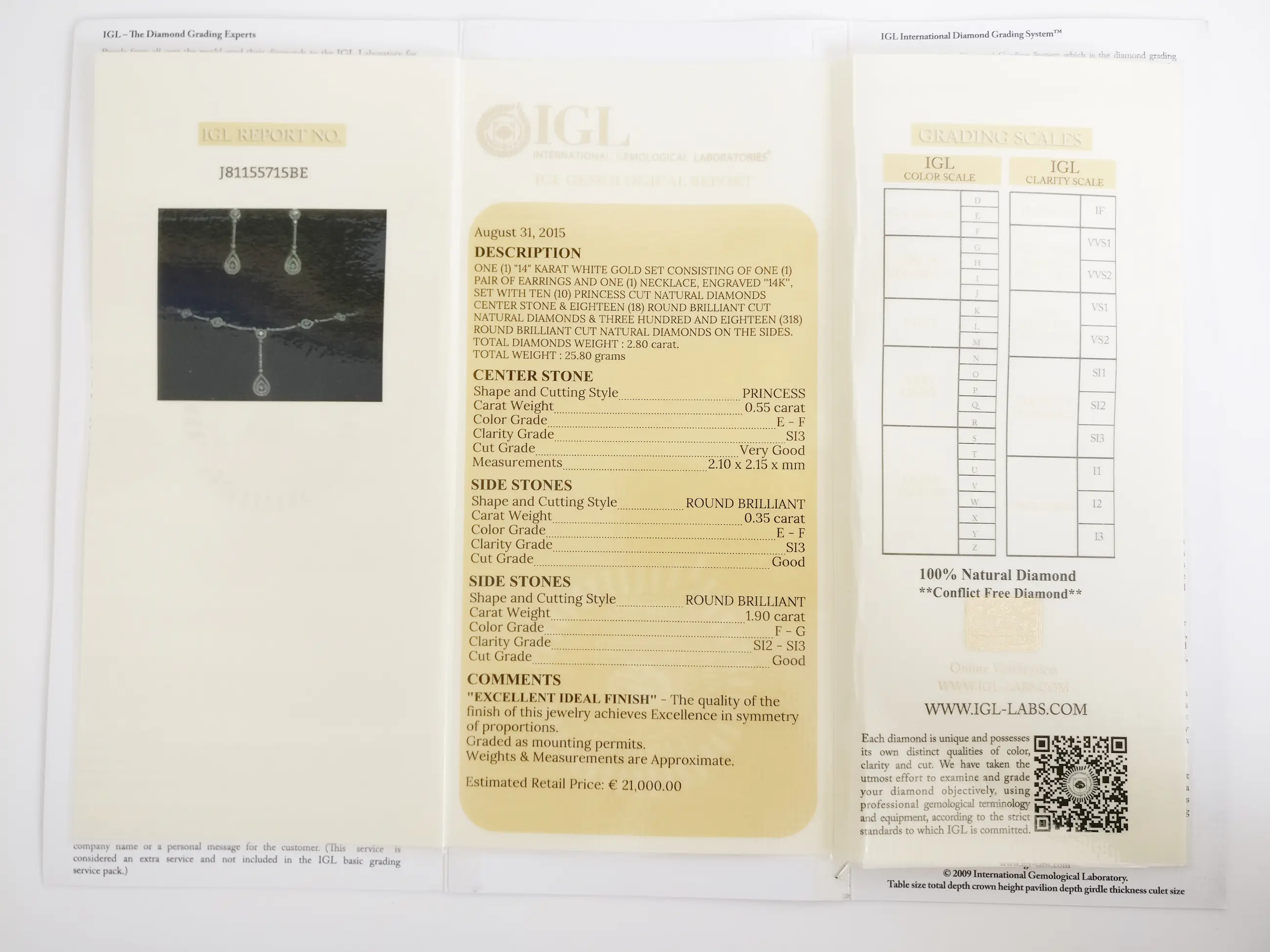 Een schitterende sieradenset bestaande uit een halsketting en oorbellen, vervaardigd van 14-karaats witgoud en bezet met 346 natuurlijke diamanten. - Brutogewicht: 25,80 gram - Gewicht van de steen: 2,80 ct