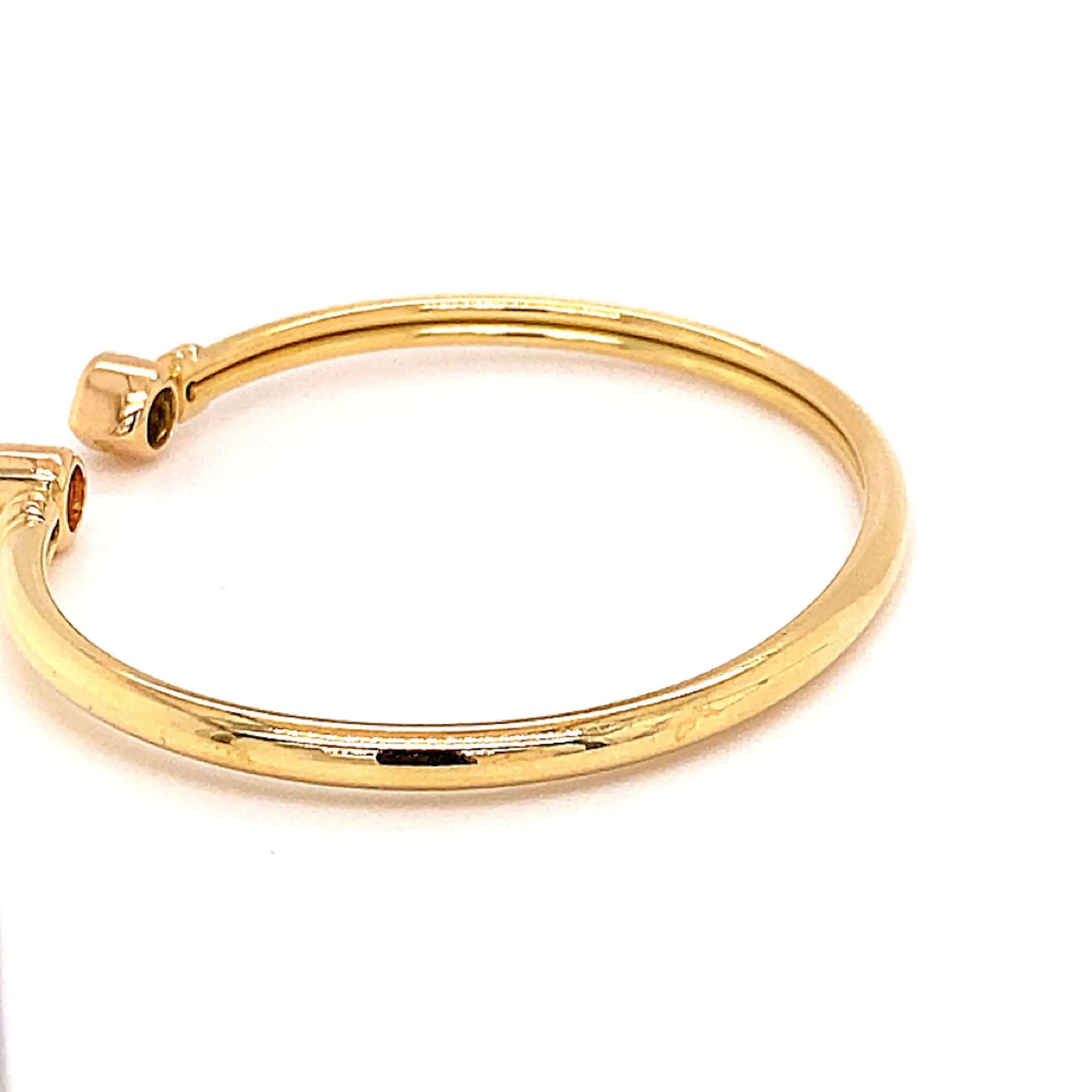 Einladend und elegant präsentiert sich dieser edle Armreif aus 18 Karat (750/-.) Gold. Mit einem Gewicht von 9,71 Gramm liegt er angenehm leicht am Handgelenk und sorgt für ein komfortables Tragegefühl. Das anspruchsvolle Design des Armreifs besticht durch seine Drehbarkeit, die ein einfaches An- und Ausziehen ermöglicht. Dieses technische Meisterstück vereint Funktionalität und Ästhetik auf höchstem Niveau.