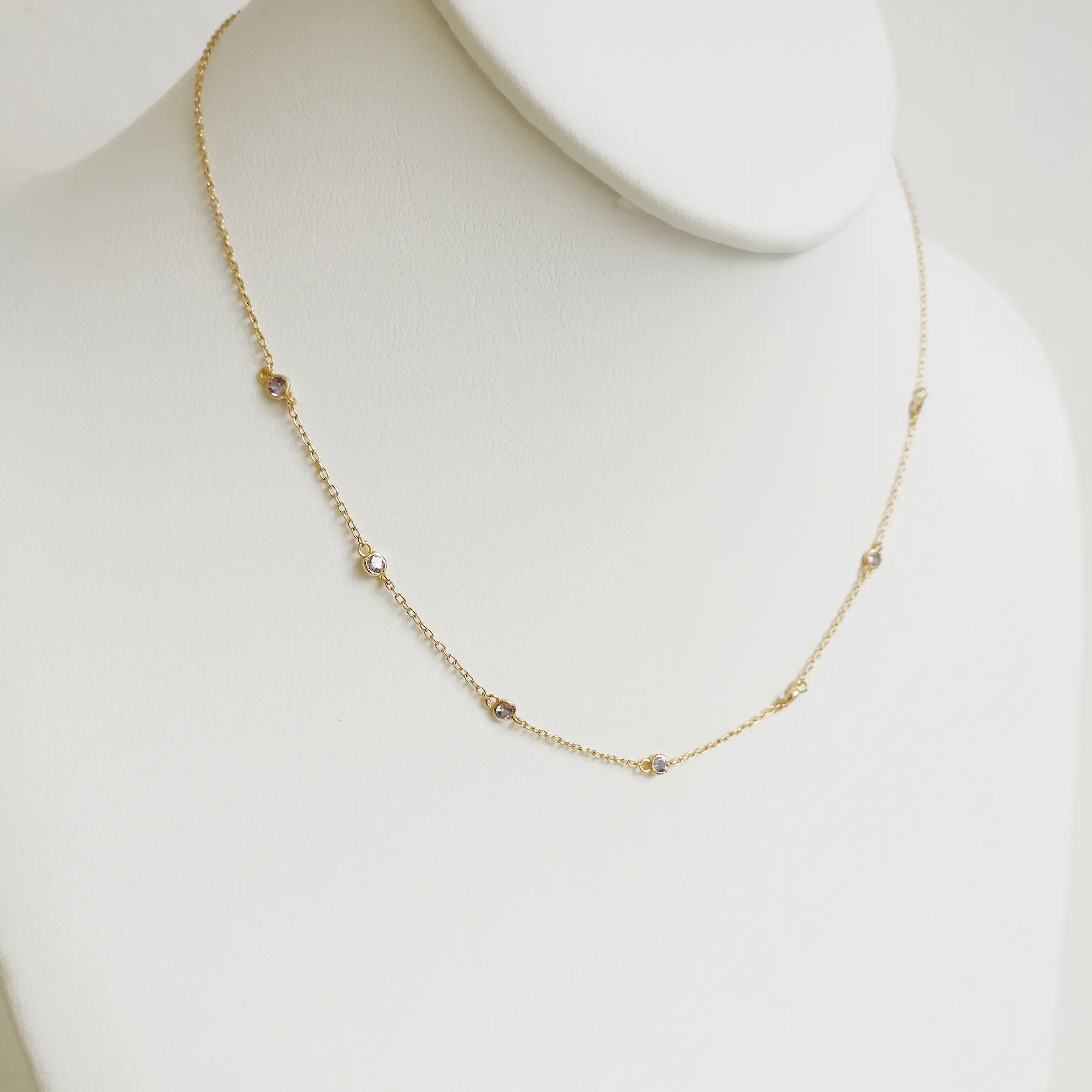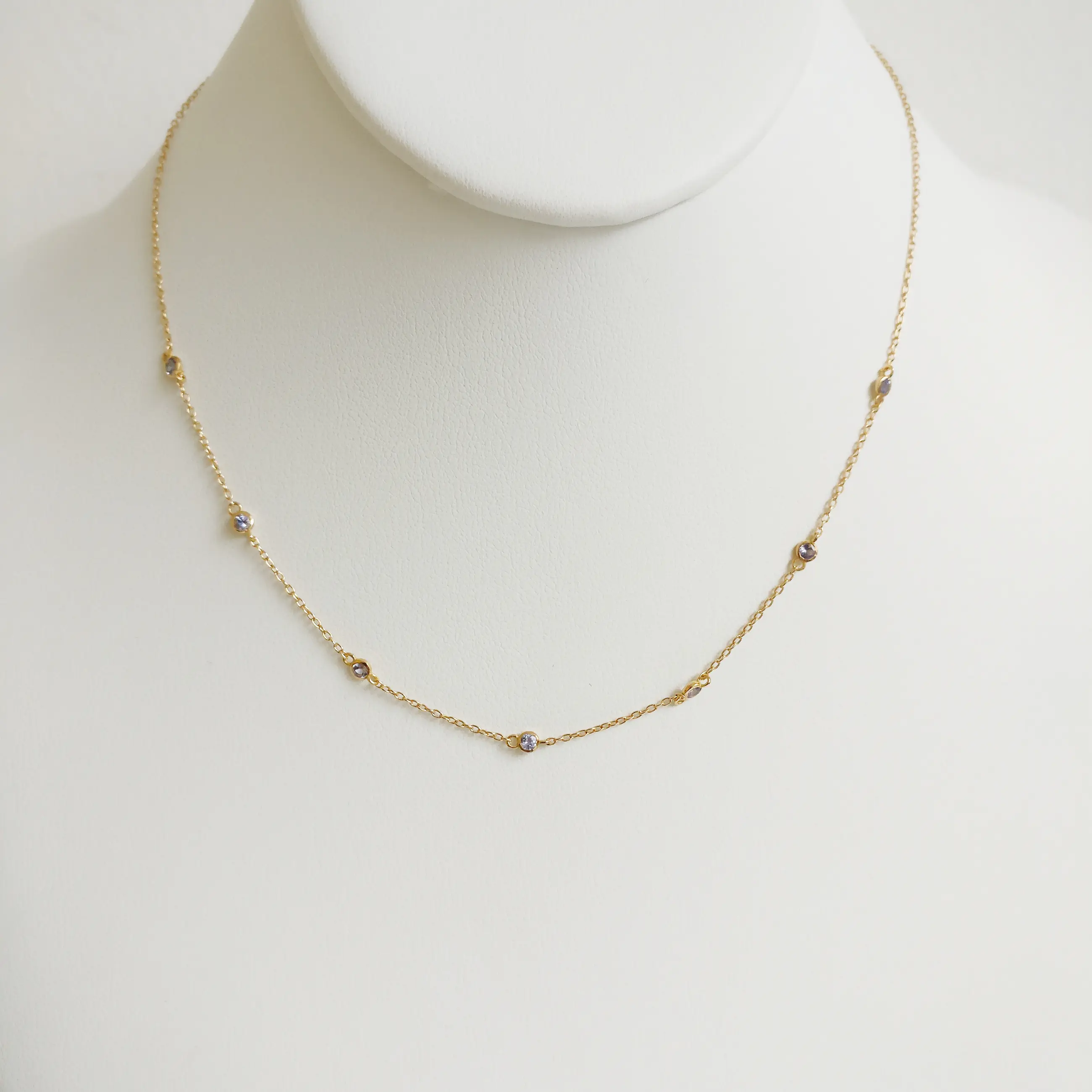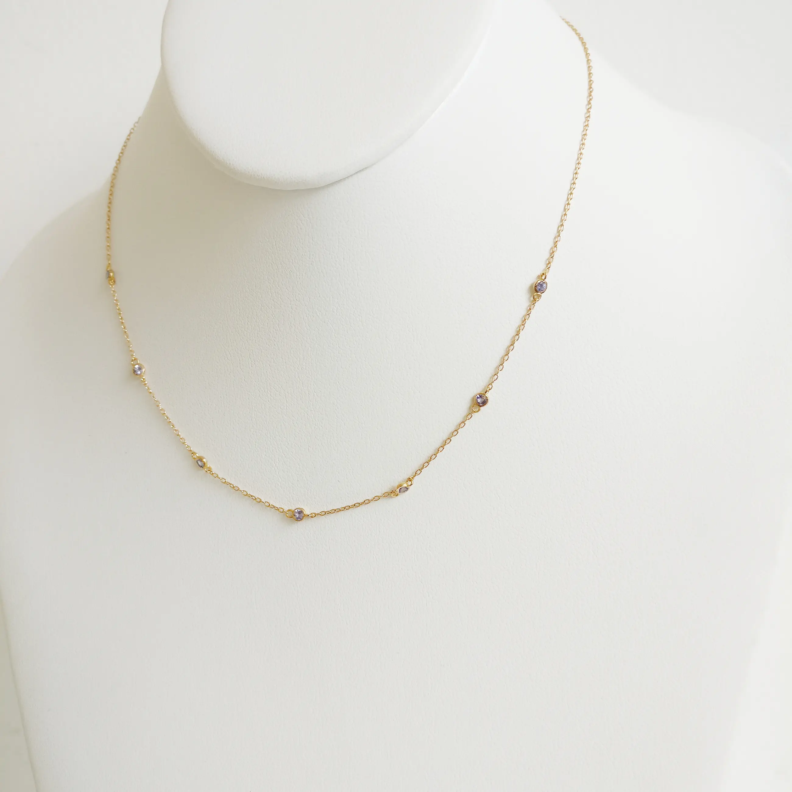Een stijlvolle en elegante ketting van geelgoud (18 karaat) bezet met natuurlijke tanzanieten.