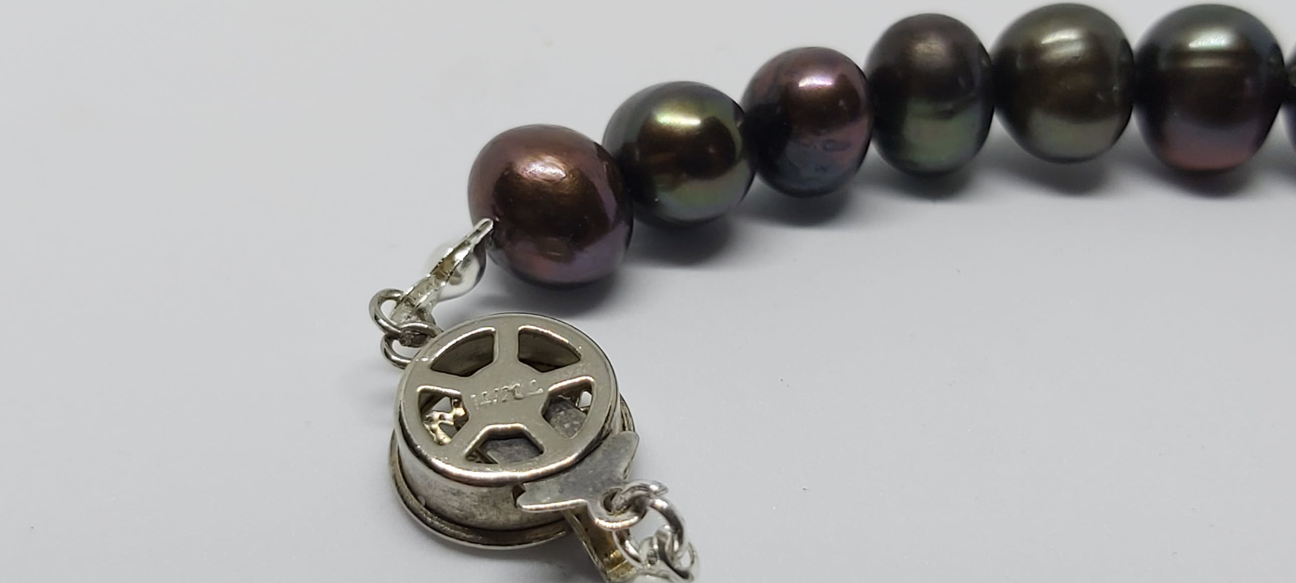 Leuke gekleurde zoetwaterparel ketting van 51,5 cm lang geregen aan doorzichtig draad. De zoetwaterparels zijn organisch edelmetaal.