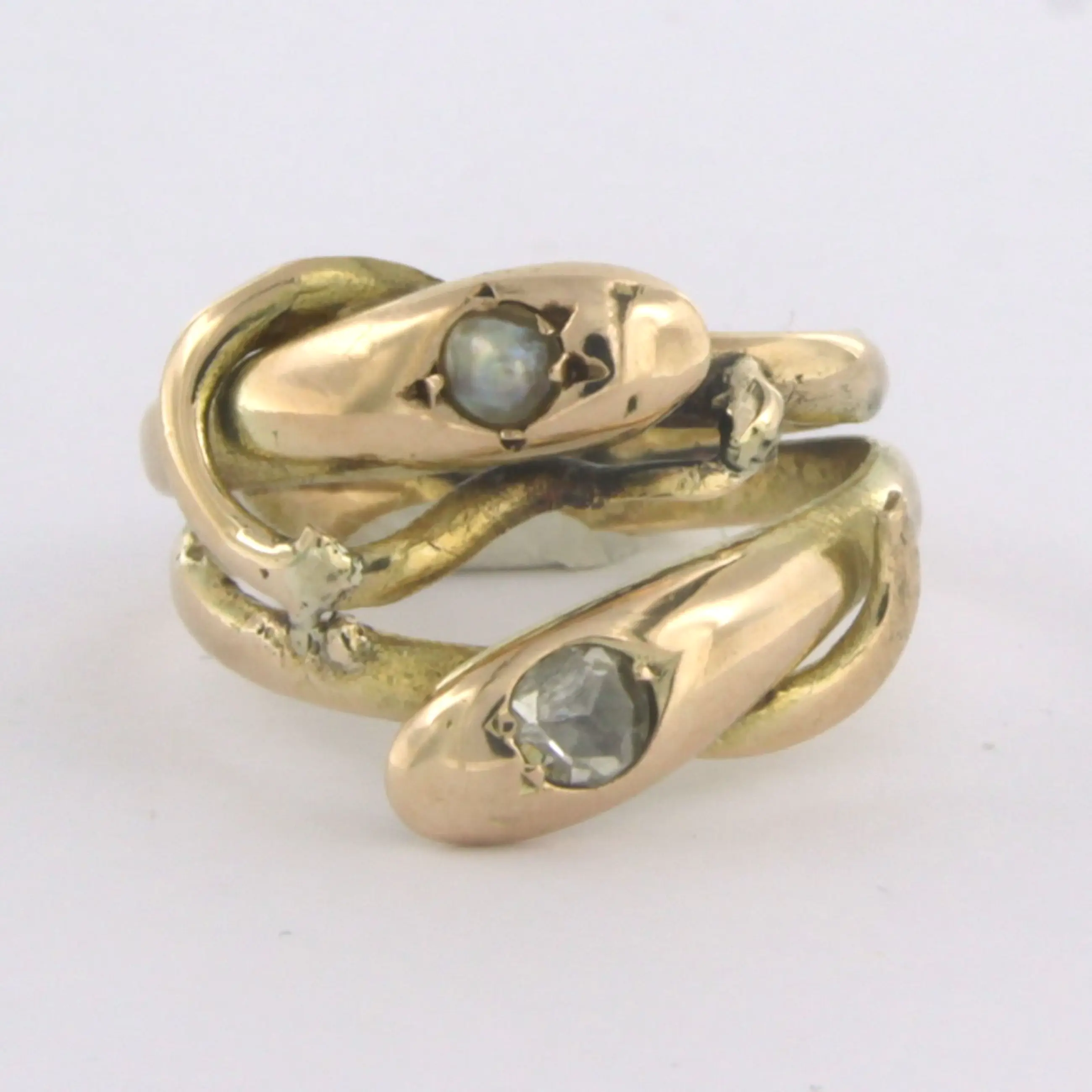 Gele ring met parel en diamant 0.04 ct F/G P - ringmaat 16.25 (51)
