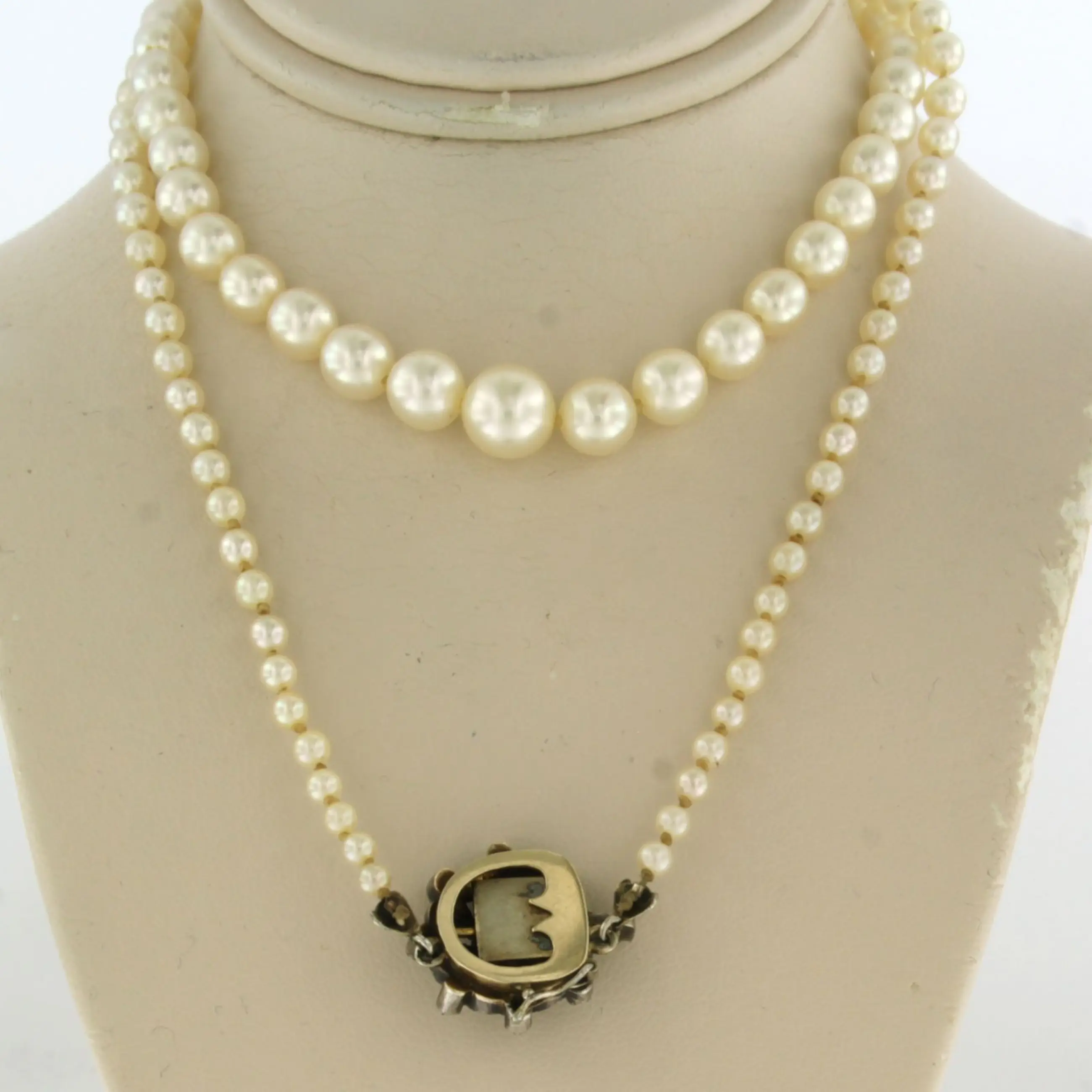14k goud met zilver slot bezet met roos geslepen diamant 0.40 ct G/H SI met een rij parels - 52 cm