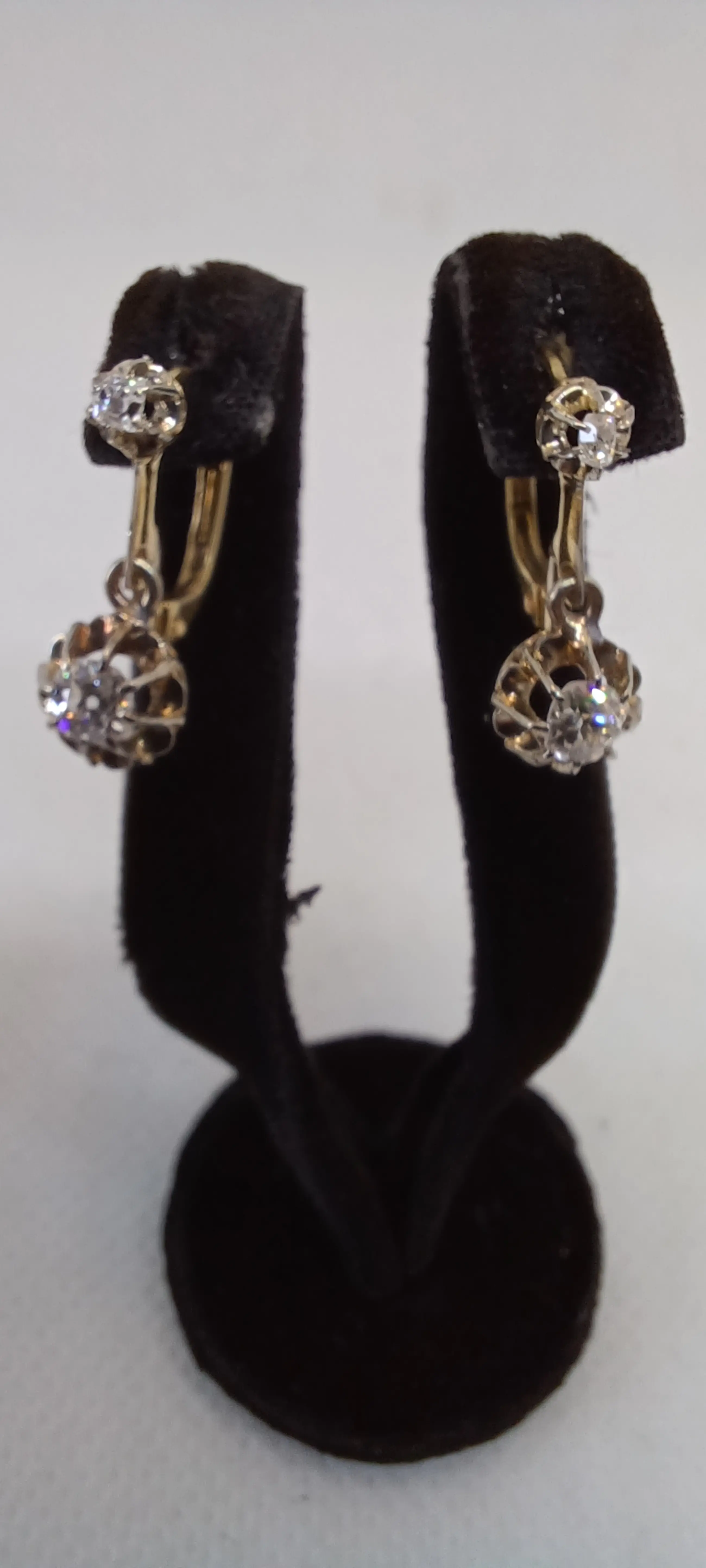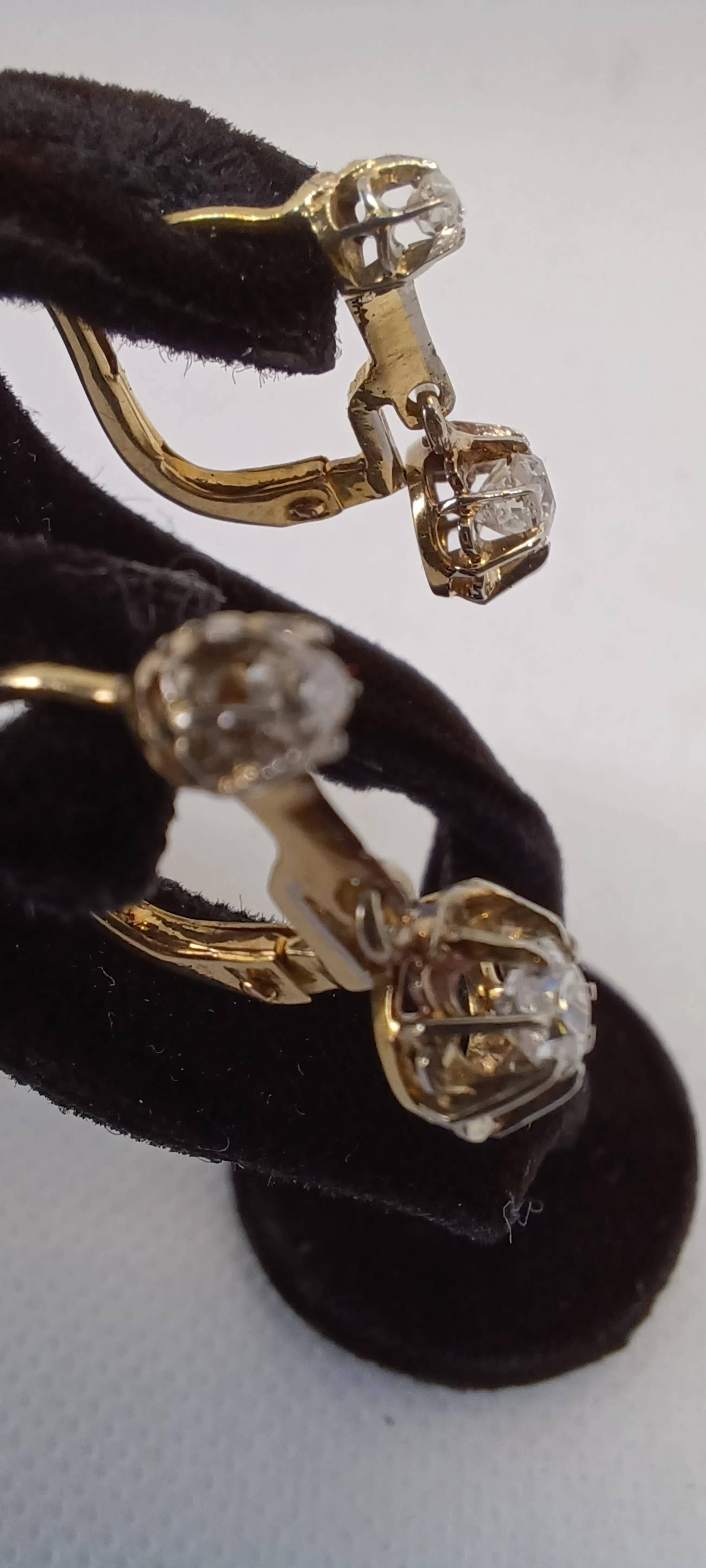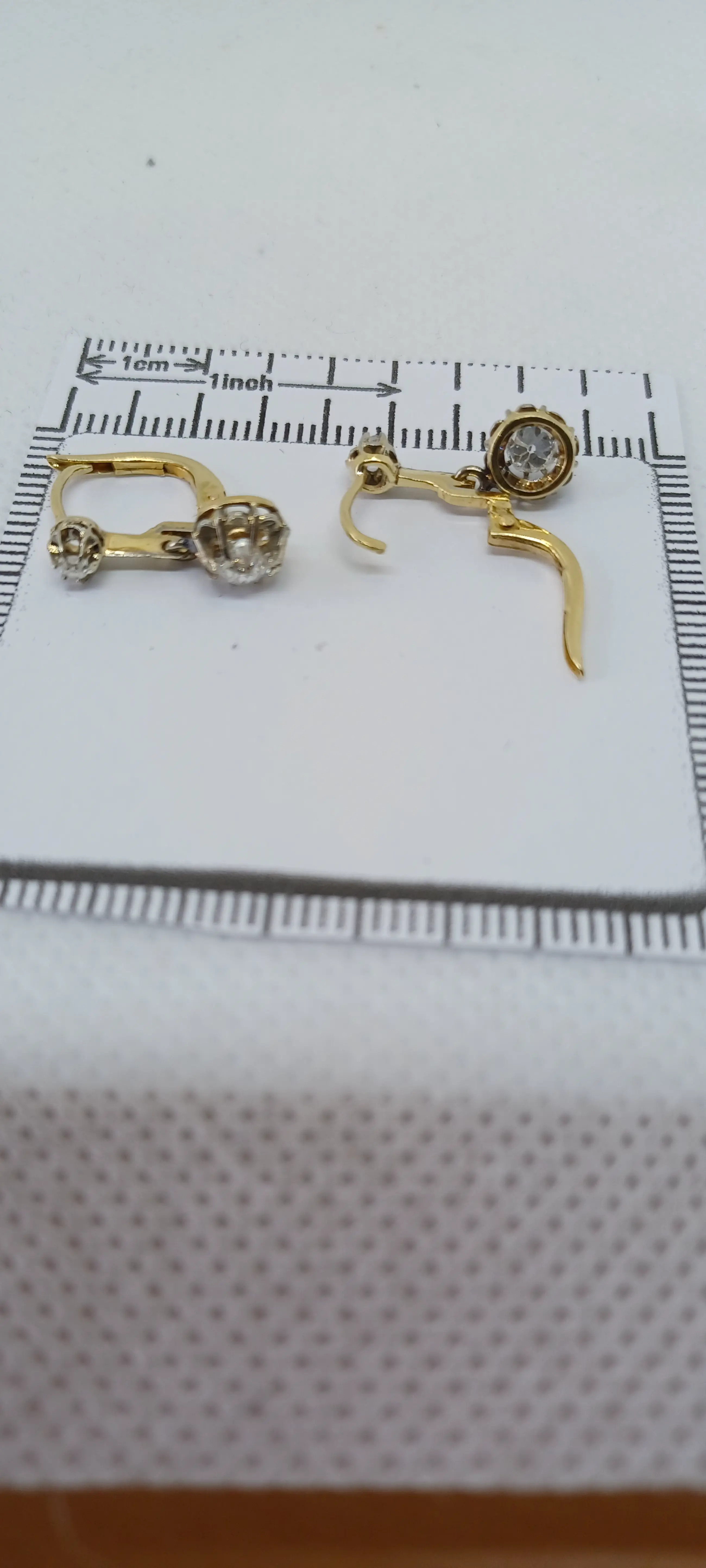 Zeer mooie antieke dormeuses,oorbellen.Toetsteen 18k goud.Volle diamanten 2x3,5mm -2x4,5 mm +- 0,86ct.Vvs,vs1..Waarde grote steen +-800 euro