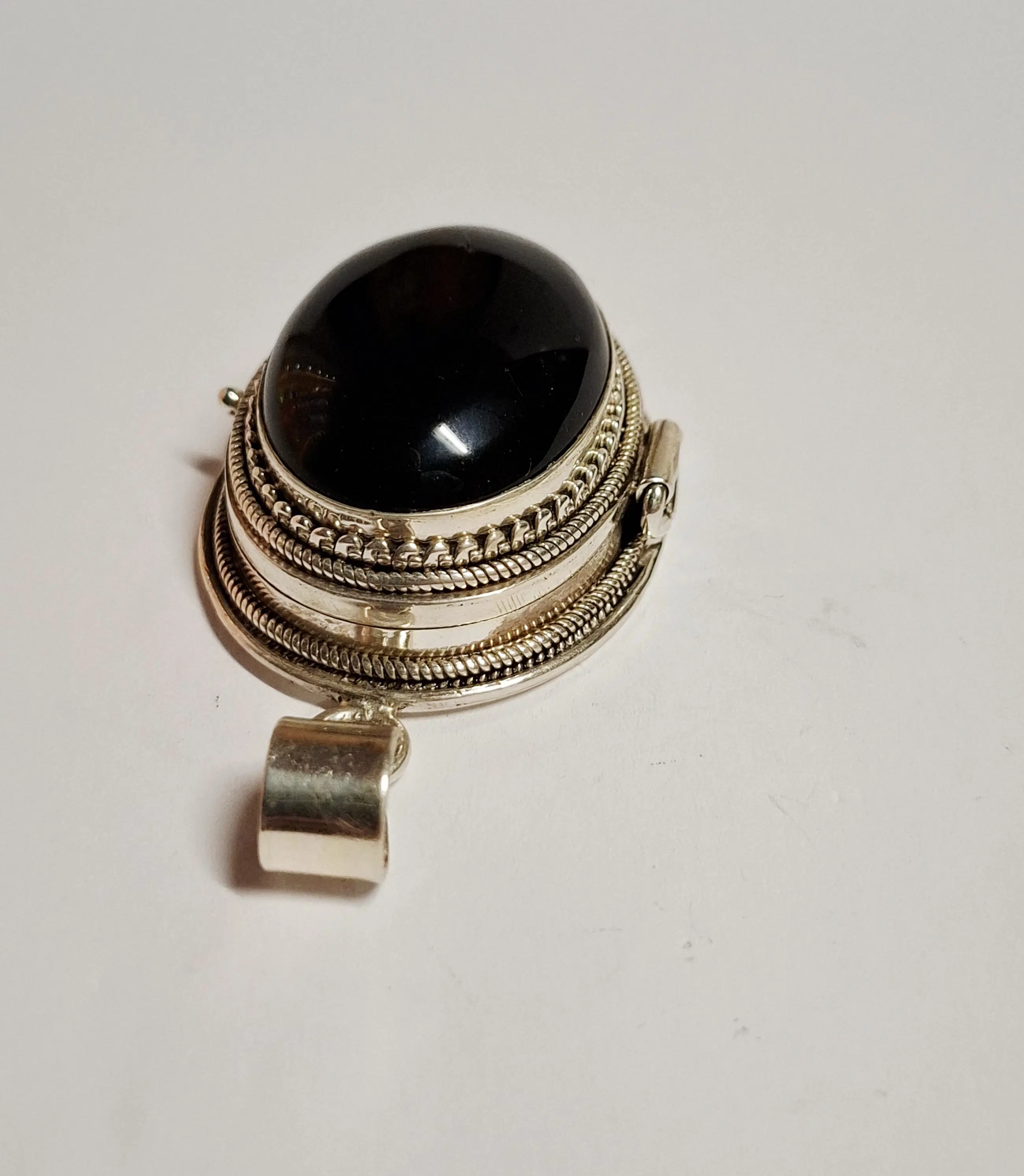Handgemaakte grote XXXL zilveren doos hanger met natuurlijke Black Onyx