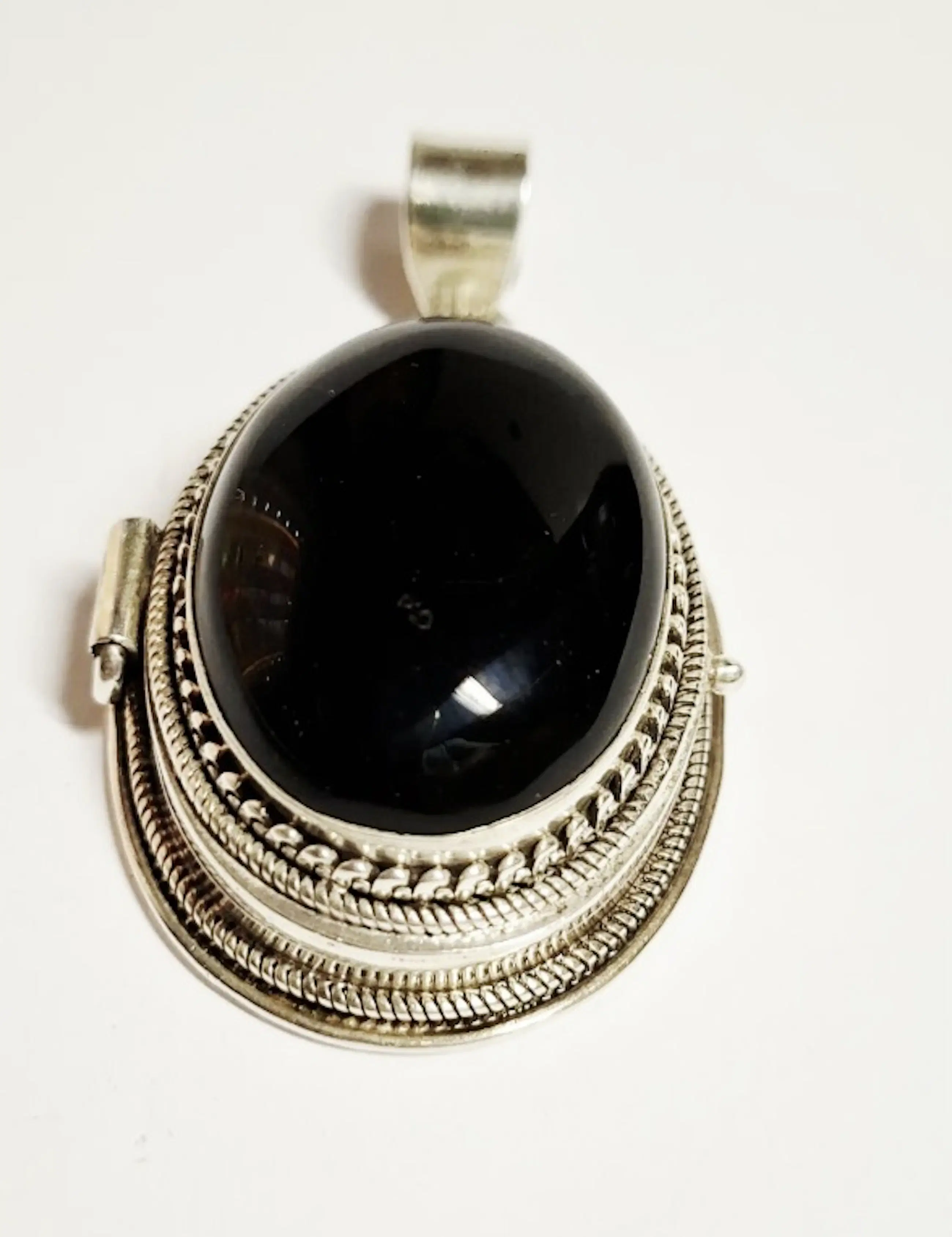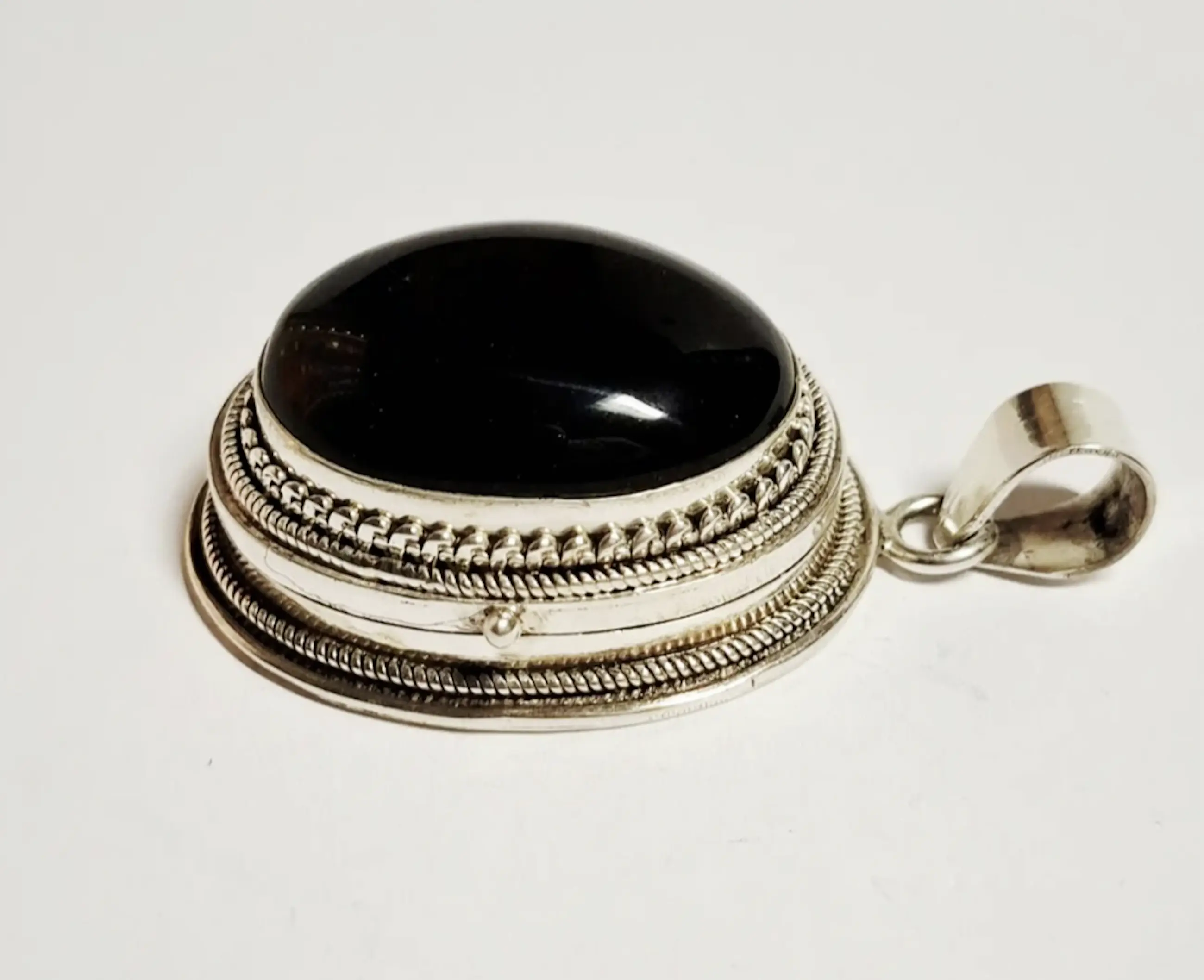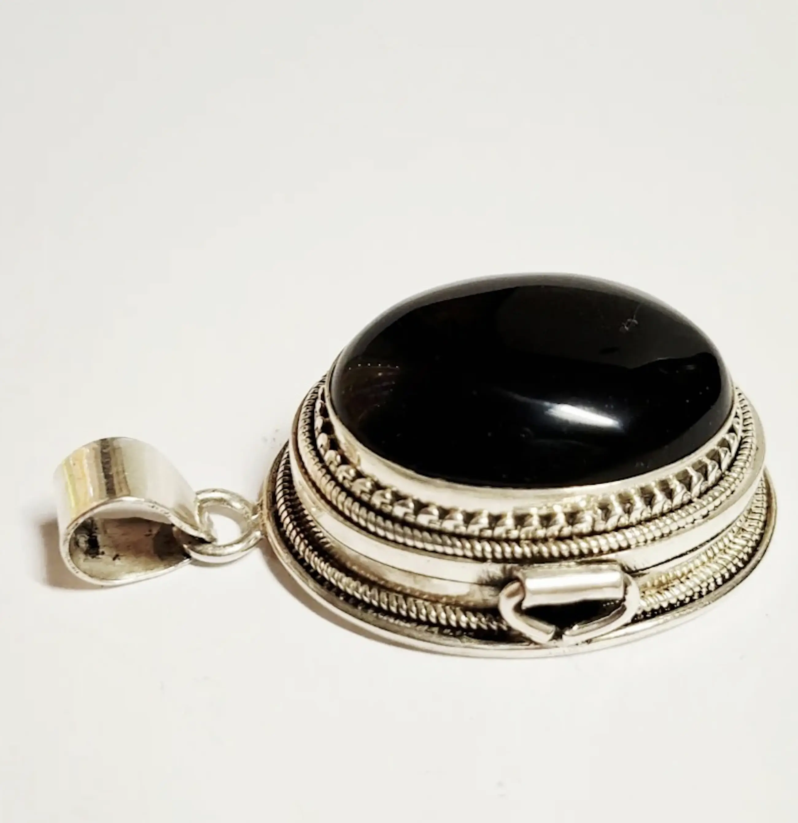 Handgemaakte grote XXXL zilveren doos hanger met natuurlijke Black Onyx