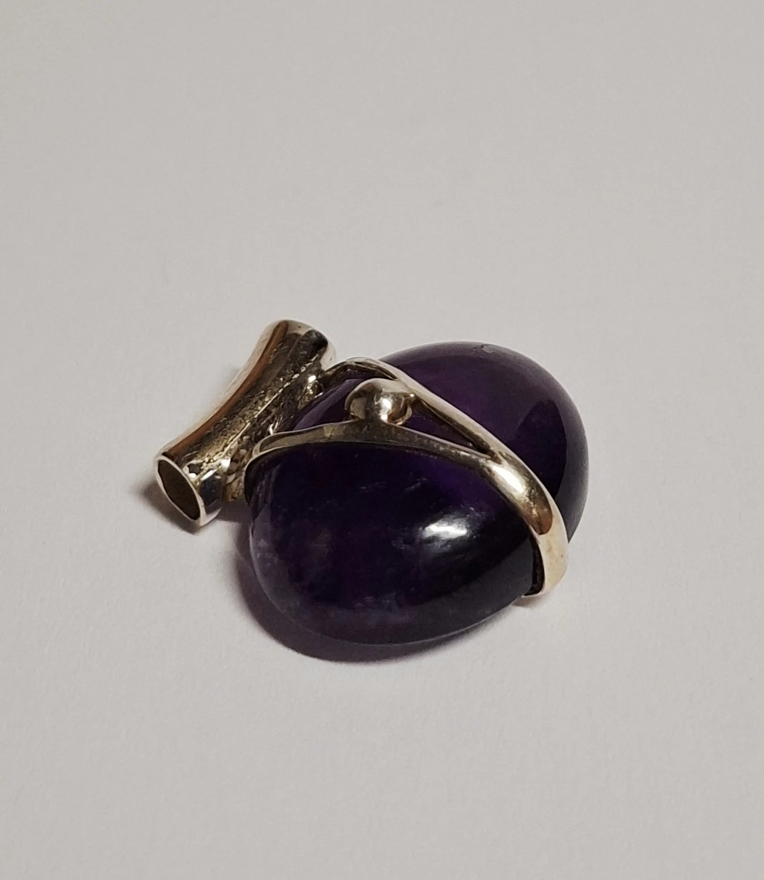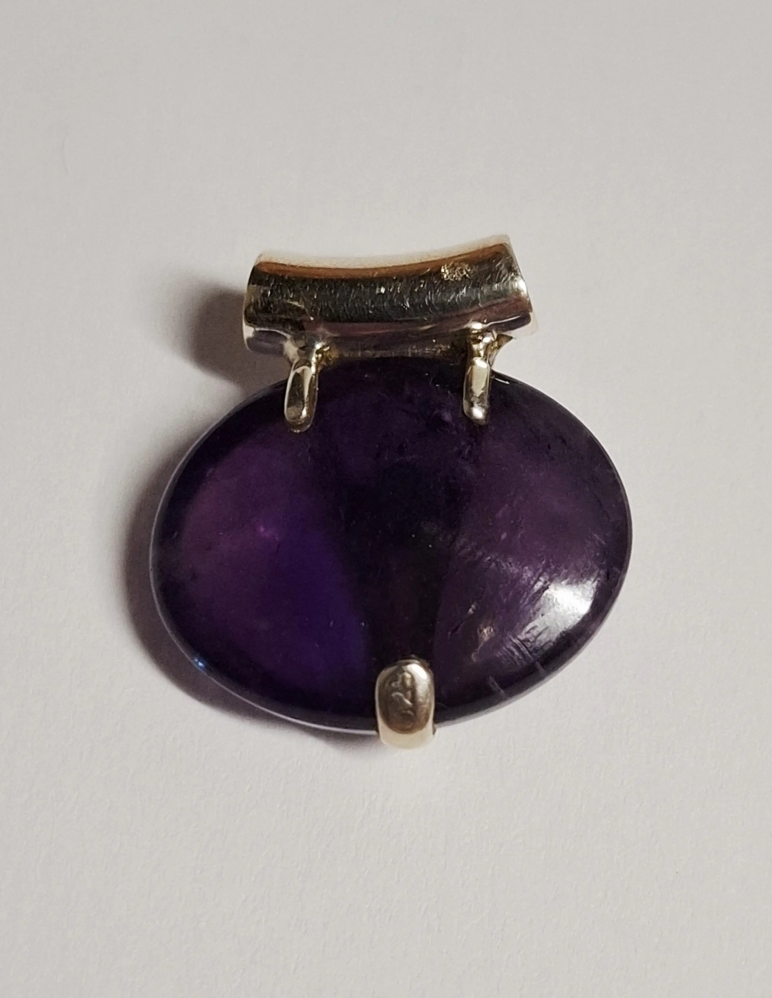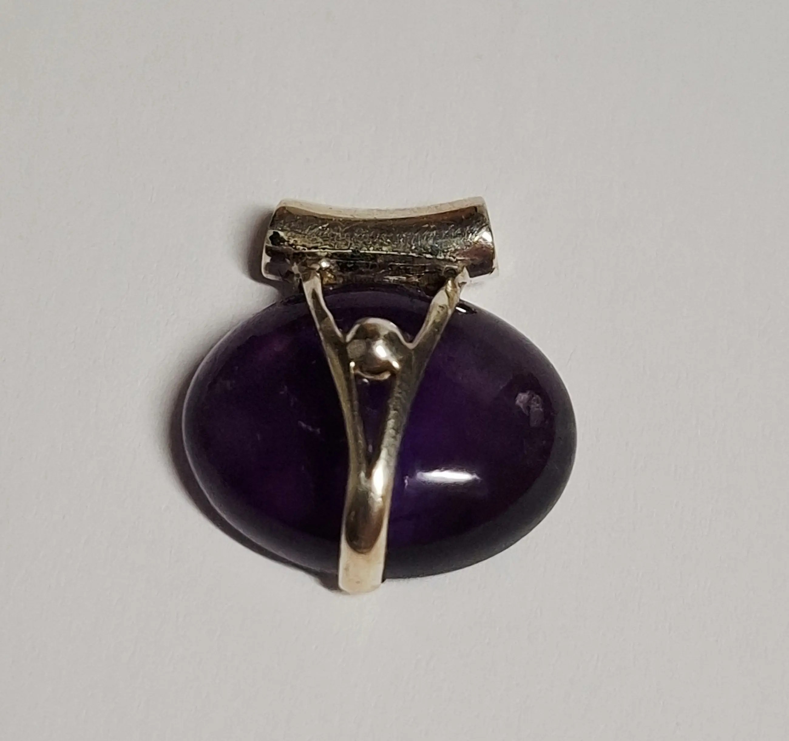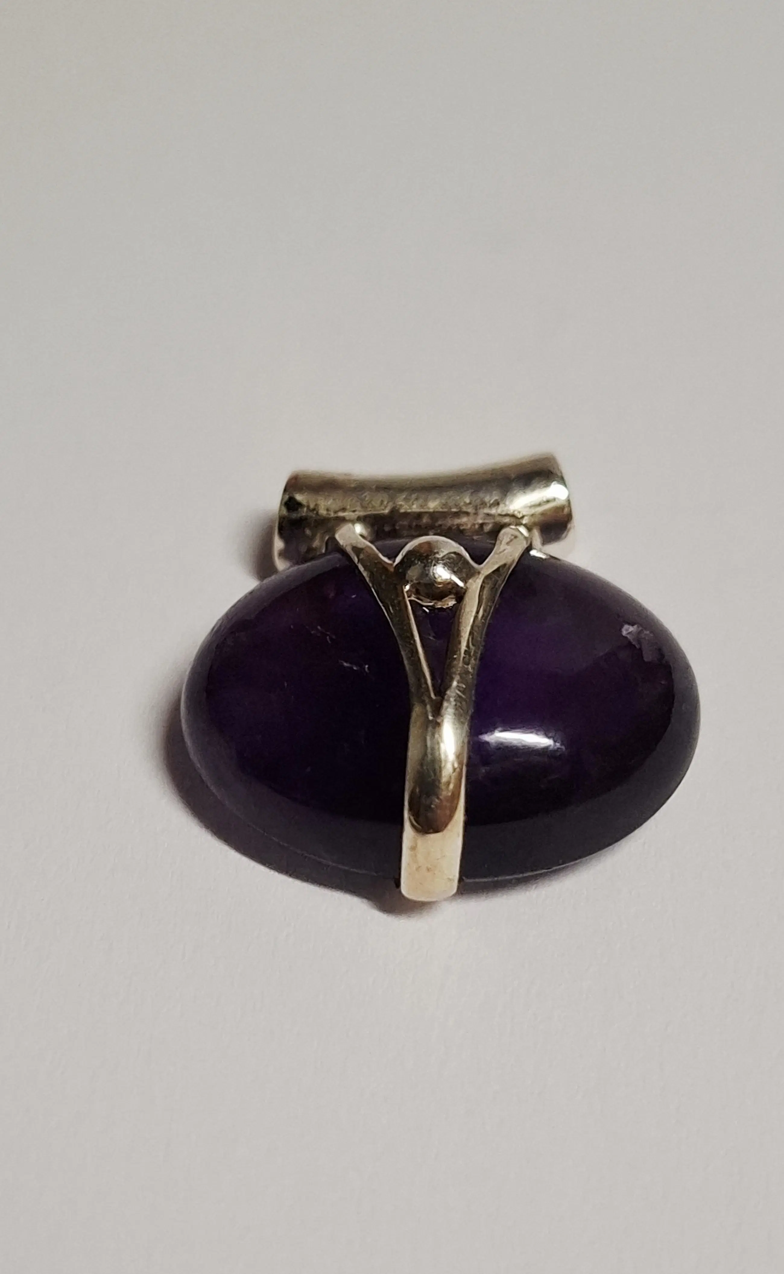 In nieuwstaat zilver 925 zilver echte amethist cabochonhanger, geboortesteen februari, hanger in bohostijl, streetstyle, cadeau voor haar