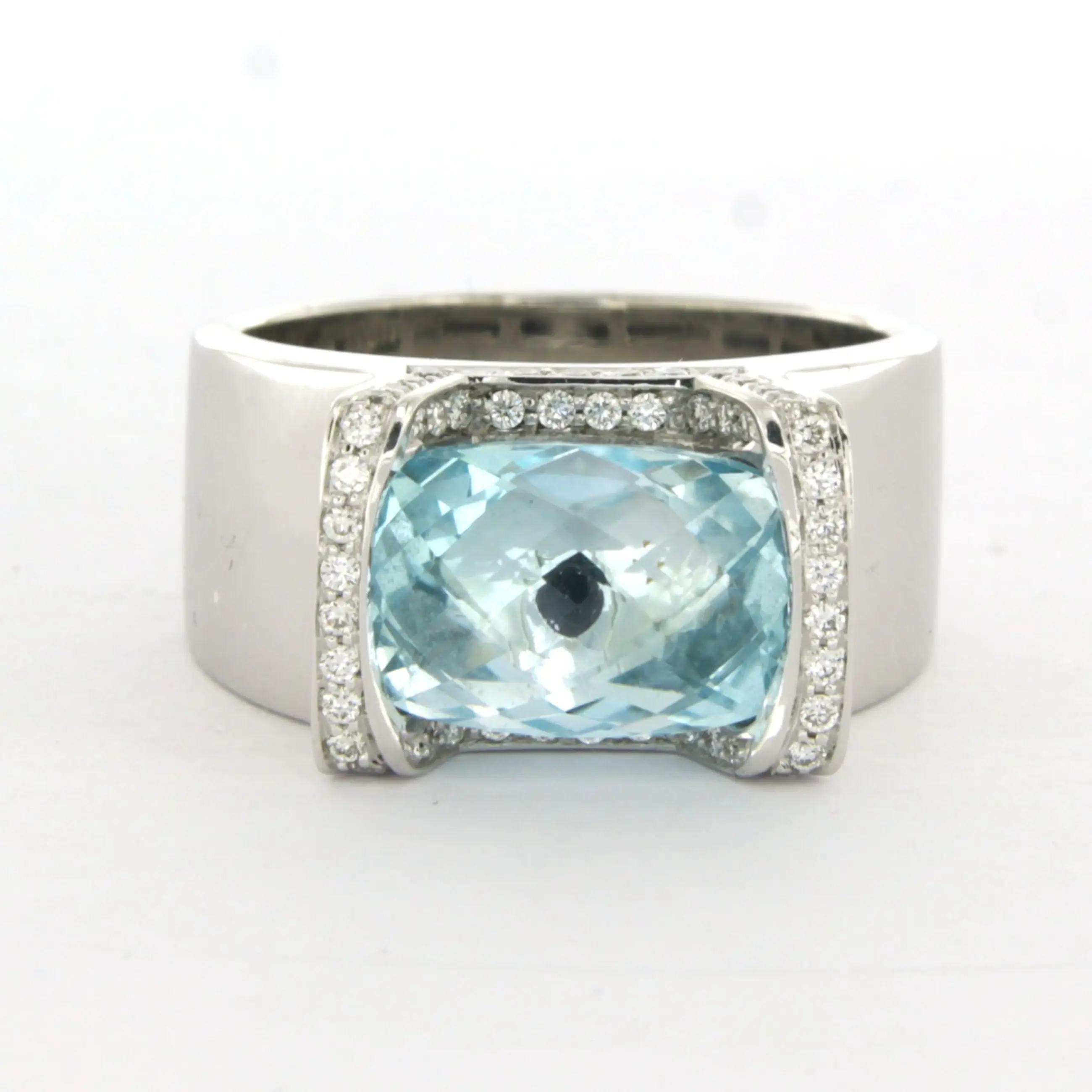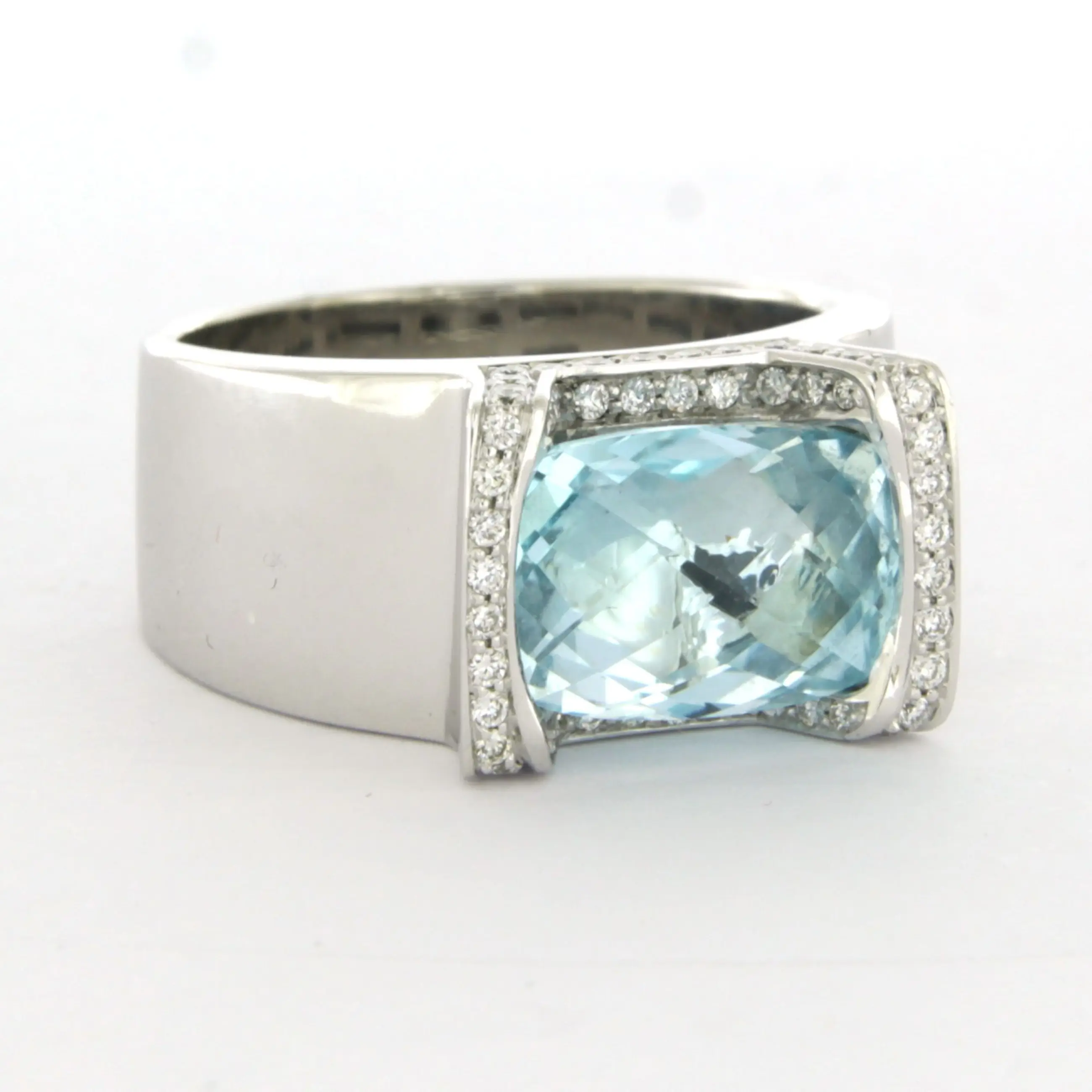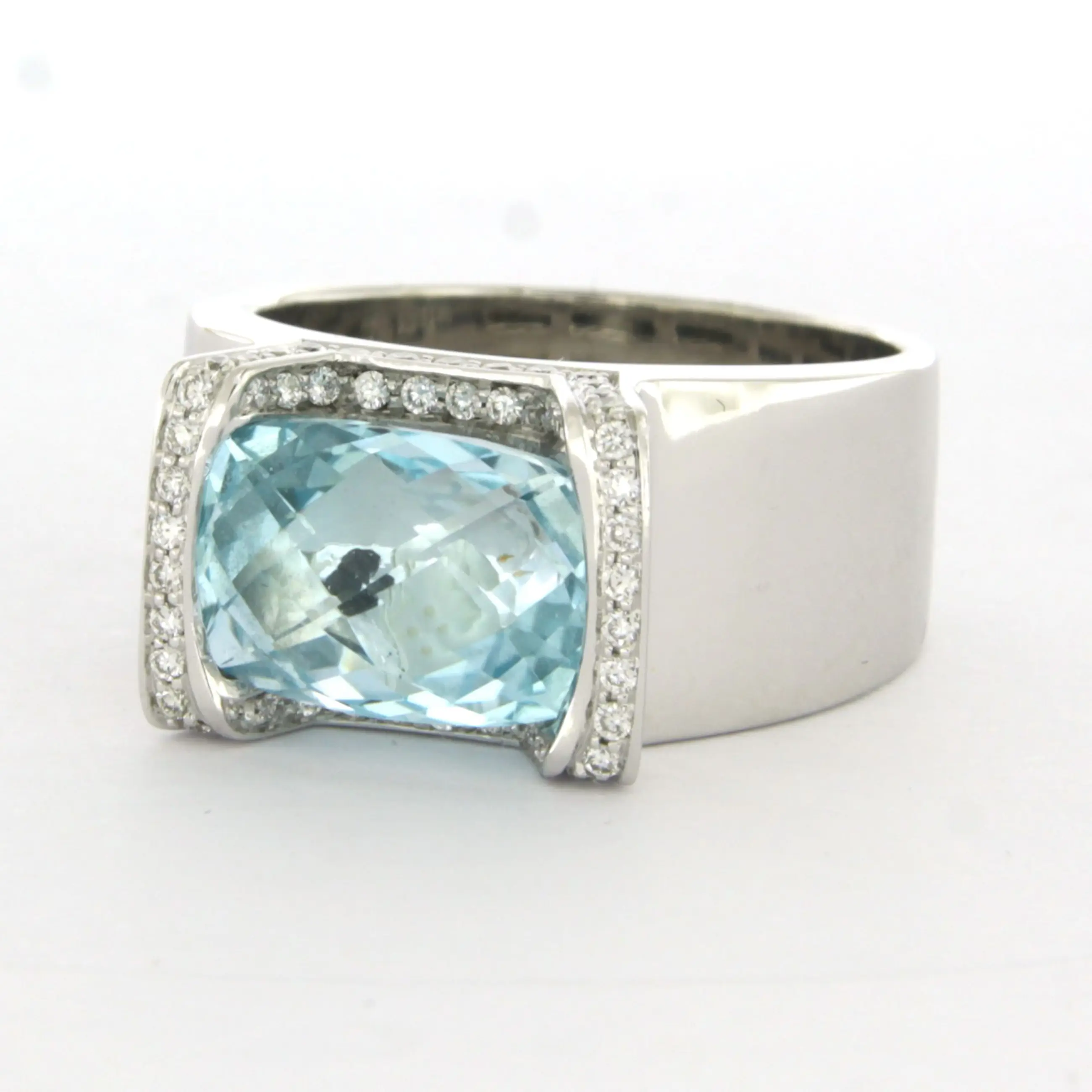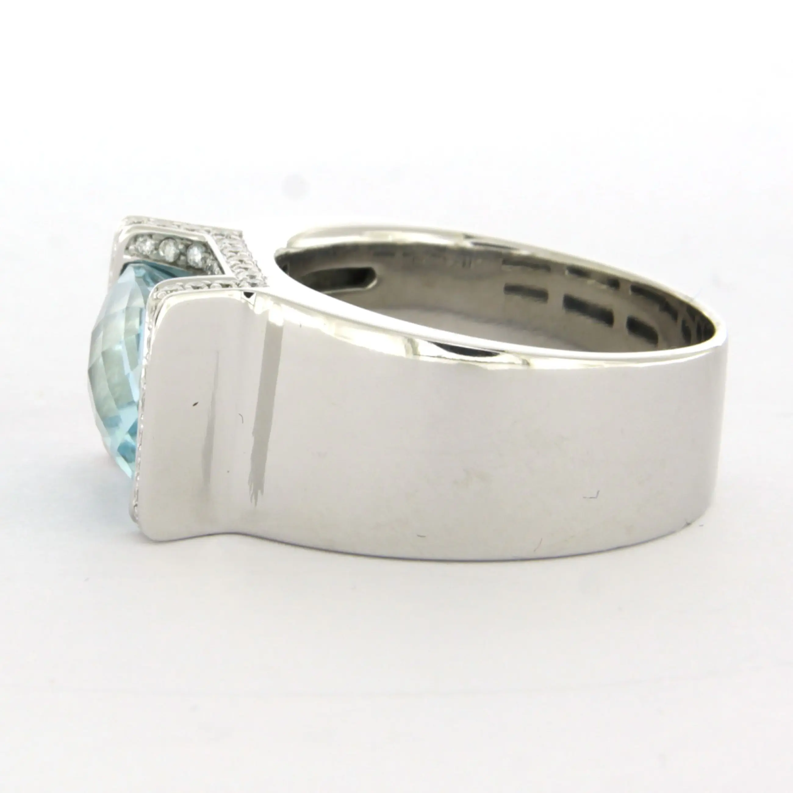 LECHIC 14k wit gouden ring bezet met centraal een topaas en erom heen briljant geslepen diamant tot. 0.33ct - F/G - VS/SI - ringmaat 18.25(57)