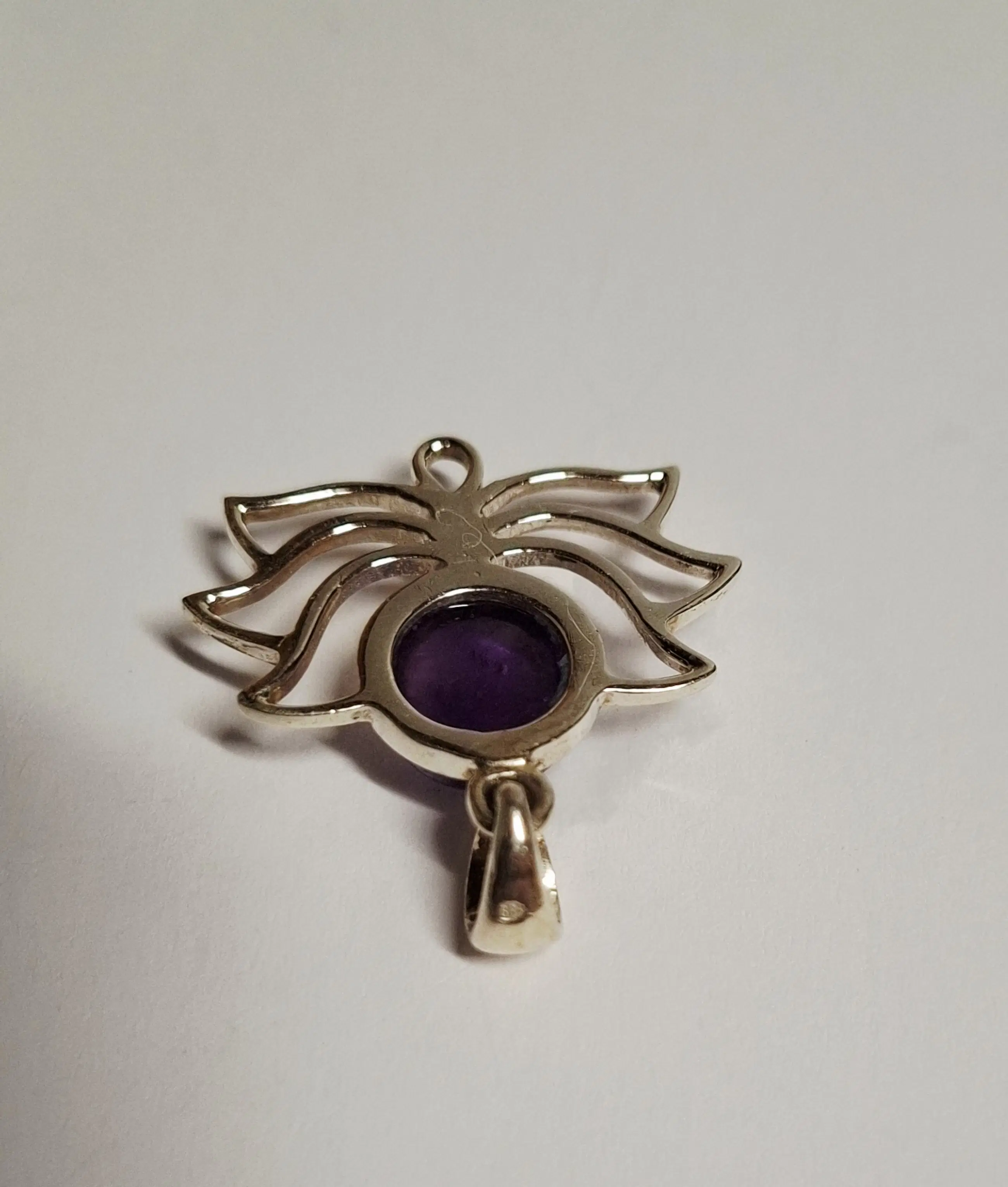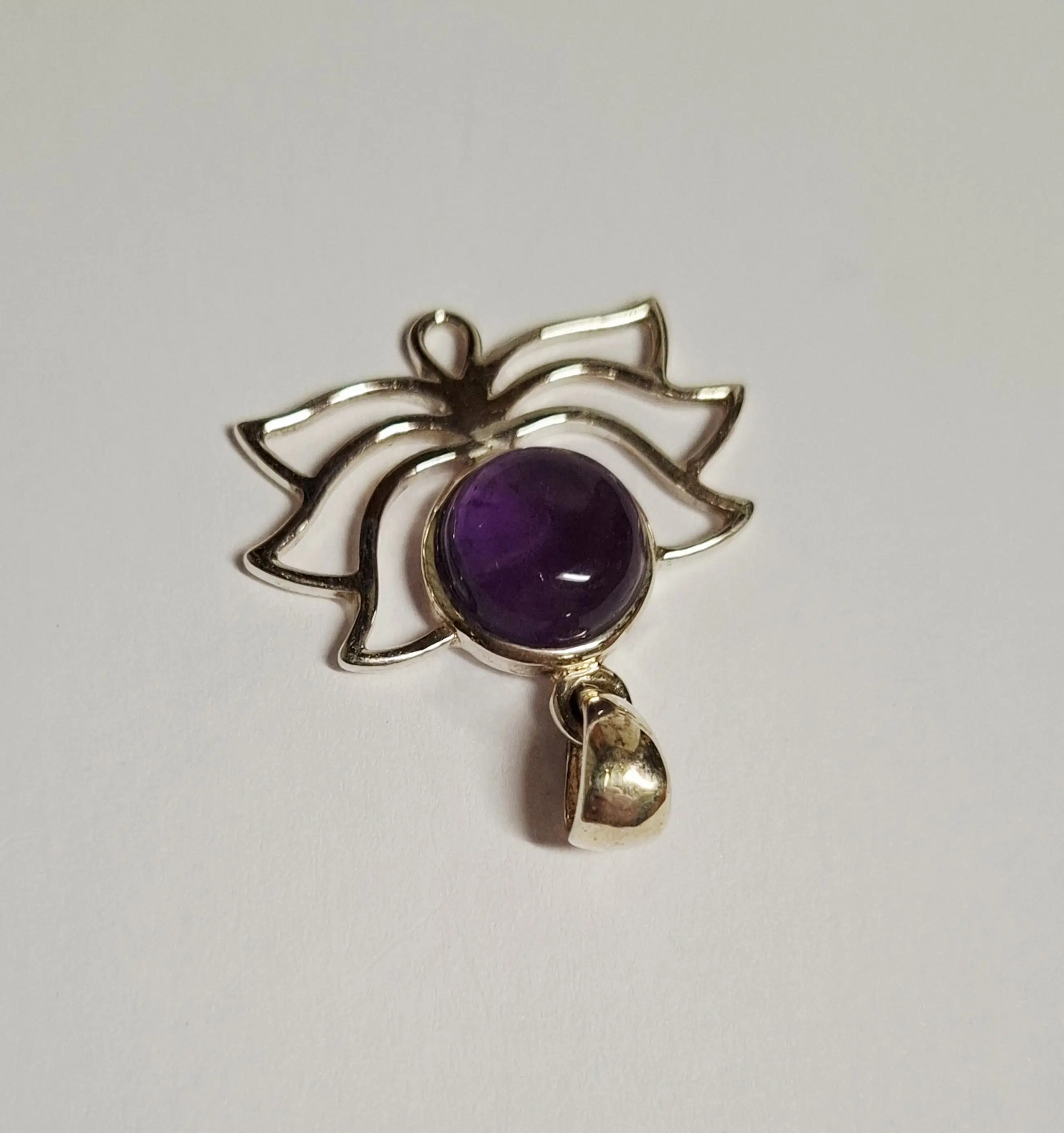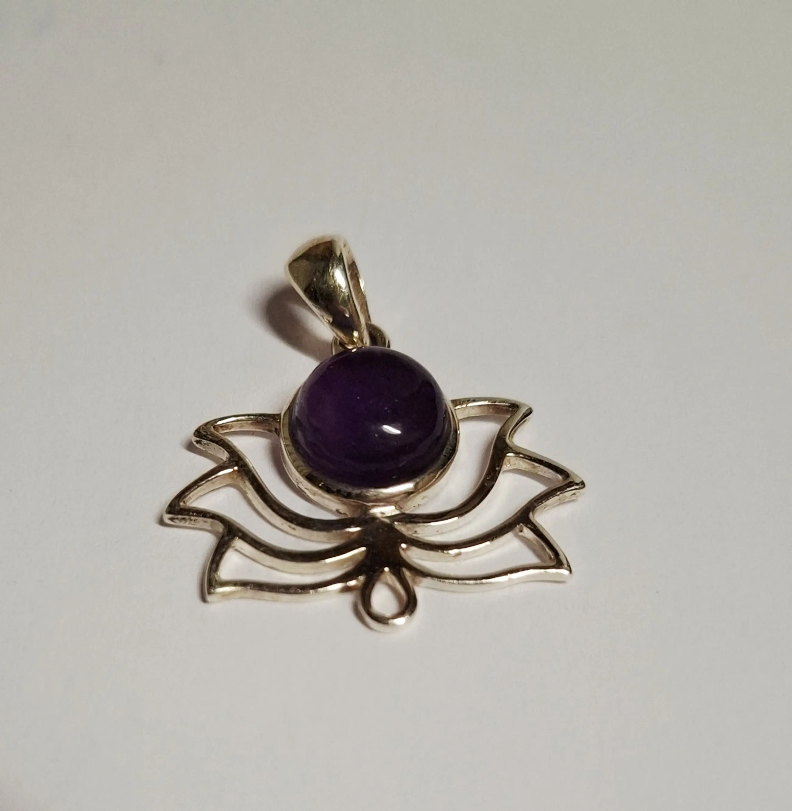 Lotus hanger gemaakt van 925 sterling zilver met een Amethist edelsteen. De hanger heeft een afmeting in lengte van 3,2 cm en breedte 2,8 cm en weegt 2,85 gram