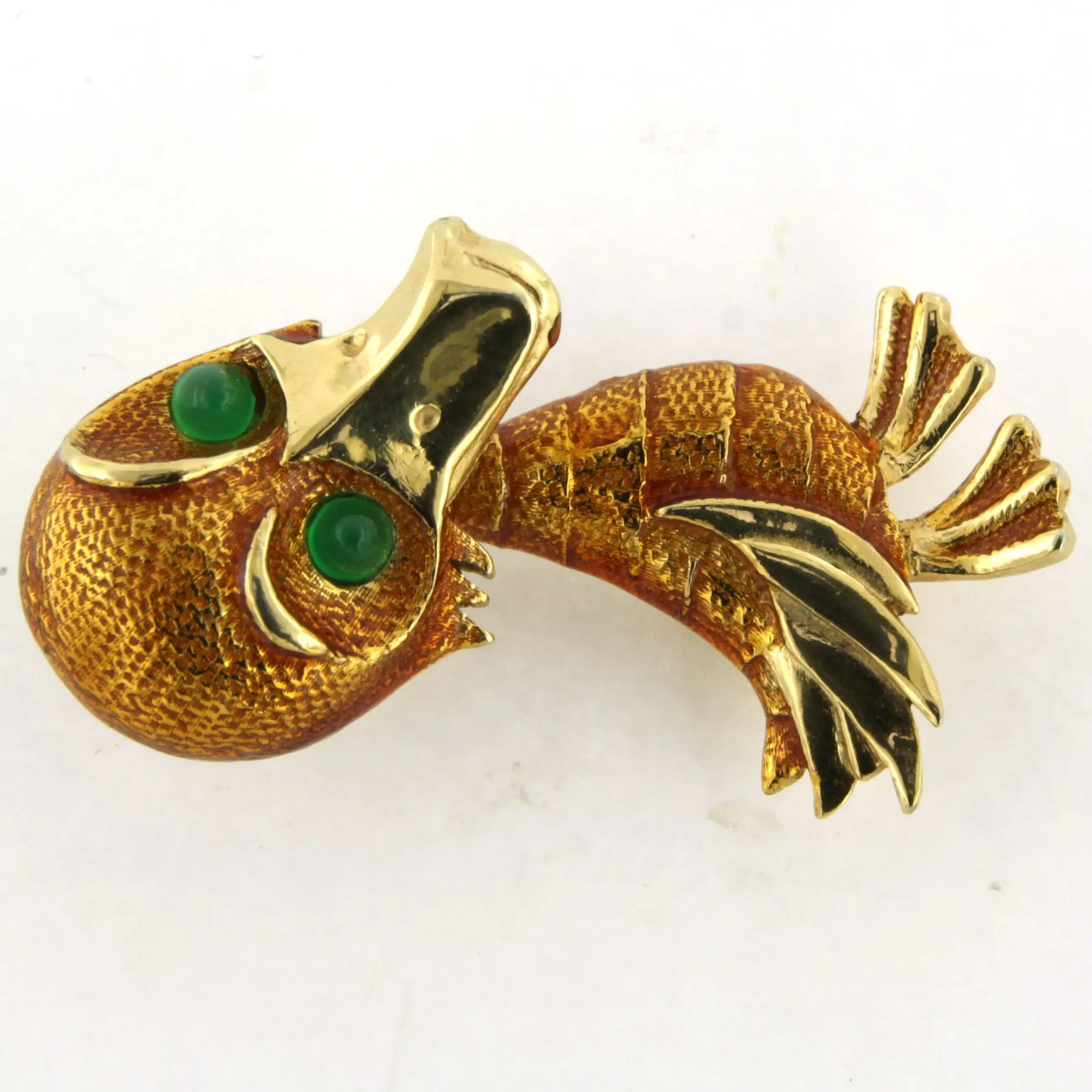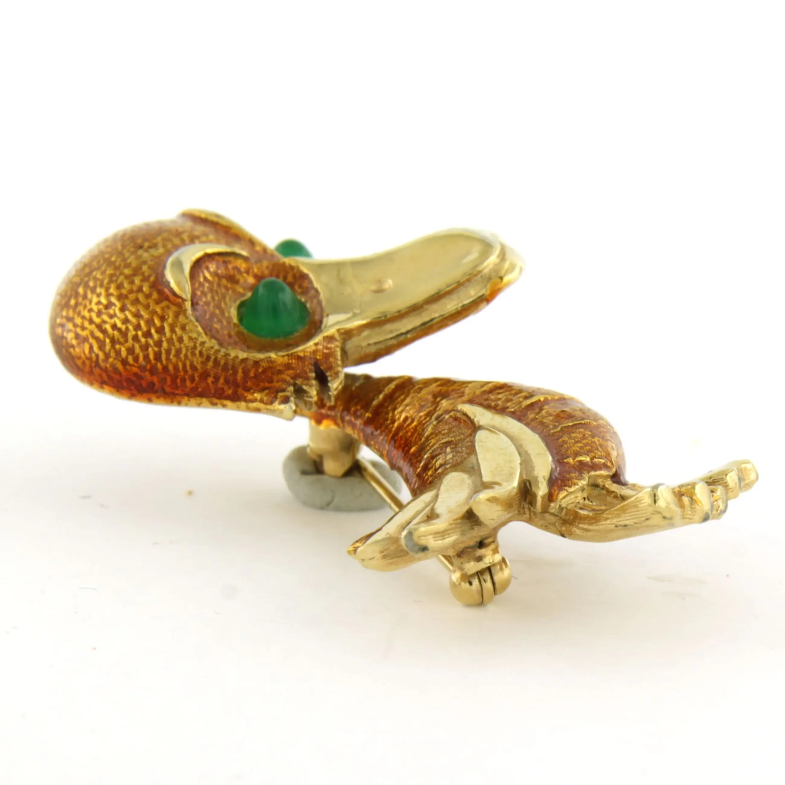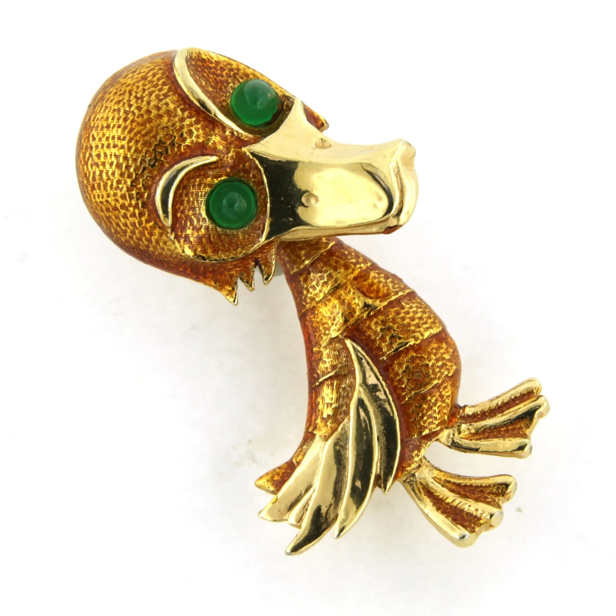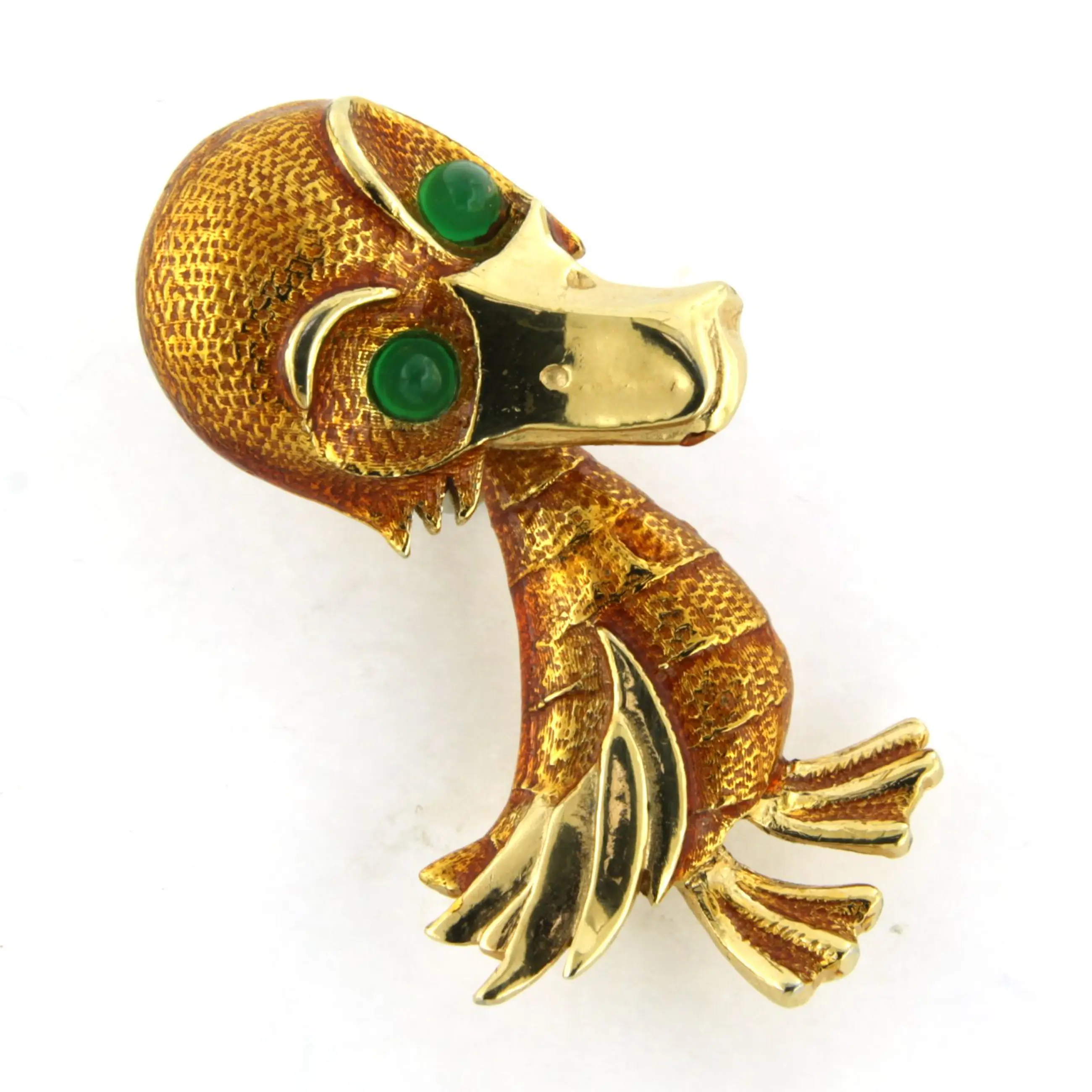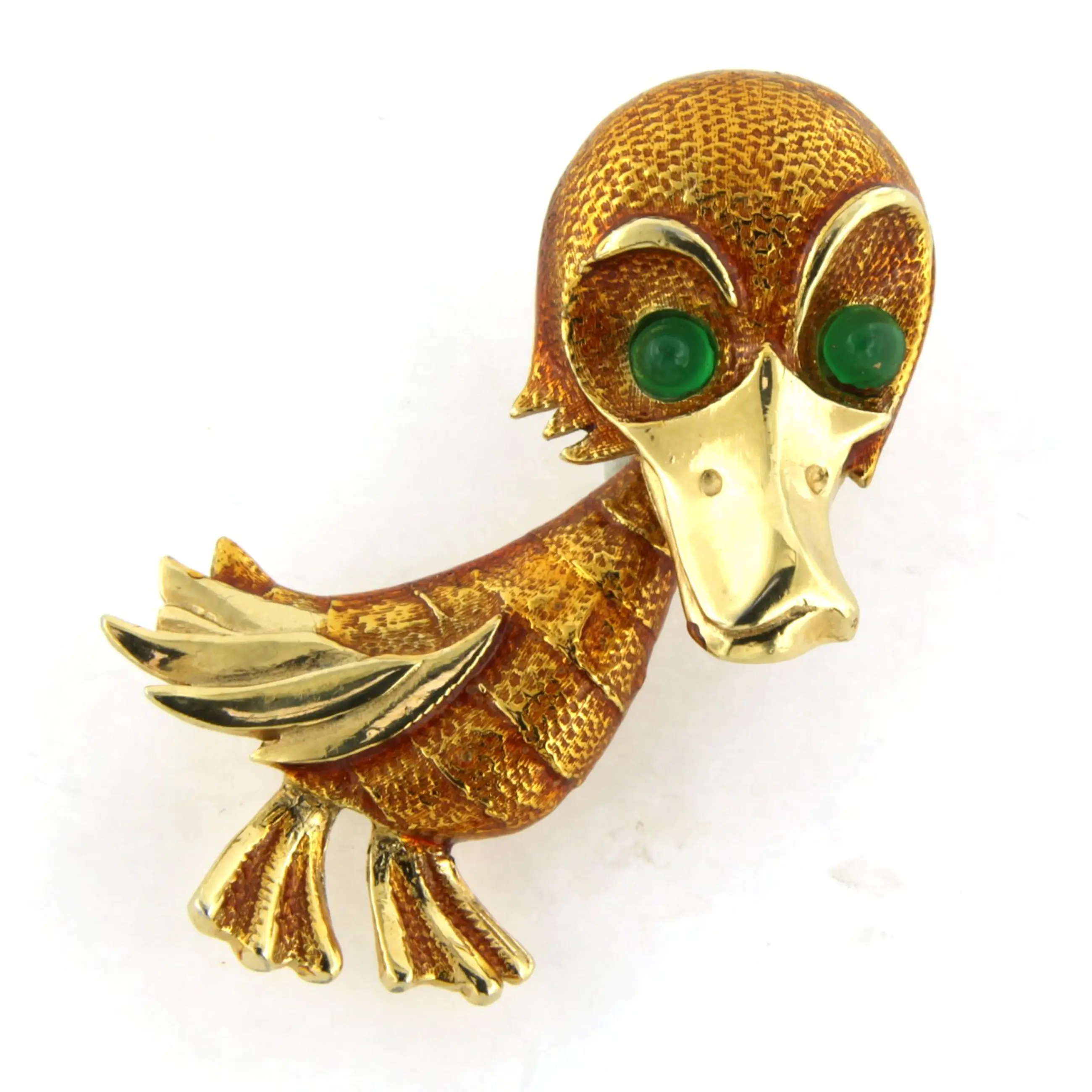 M. BOUCHER onedele broche in een vorm van een eend met groene ogen