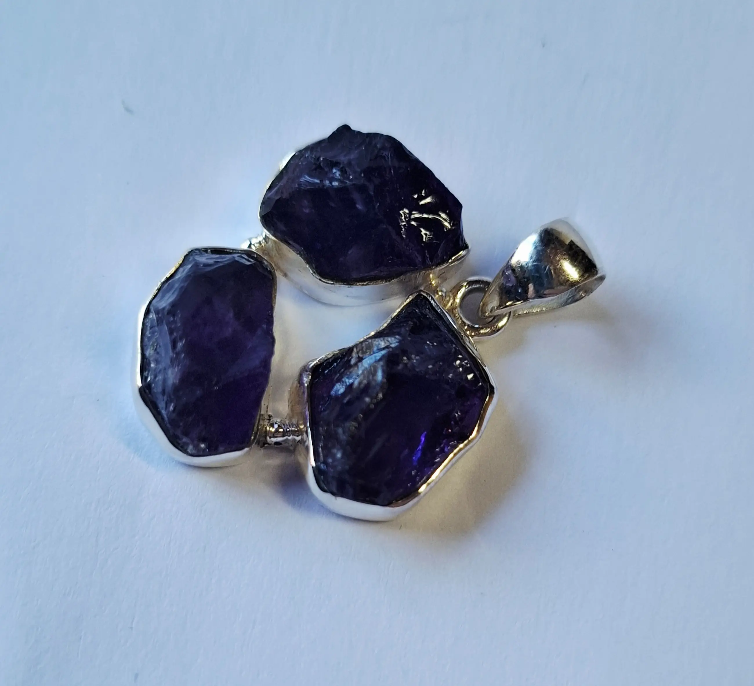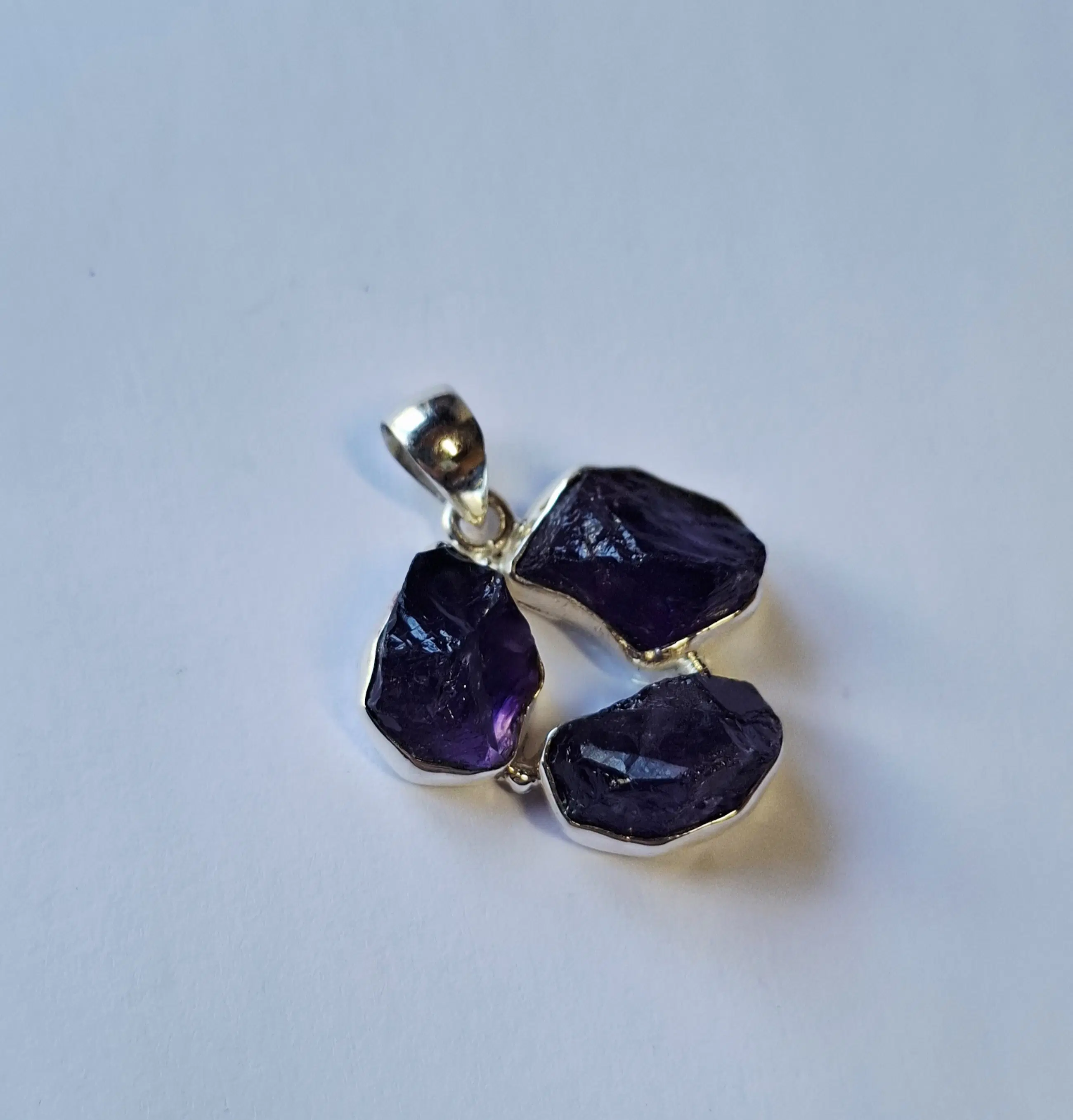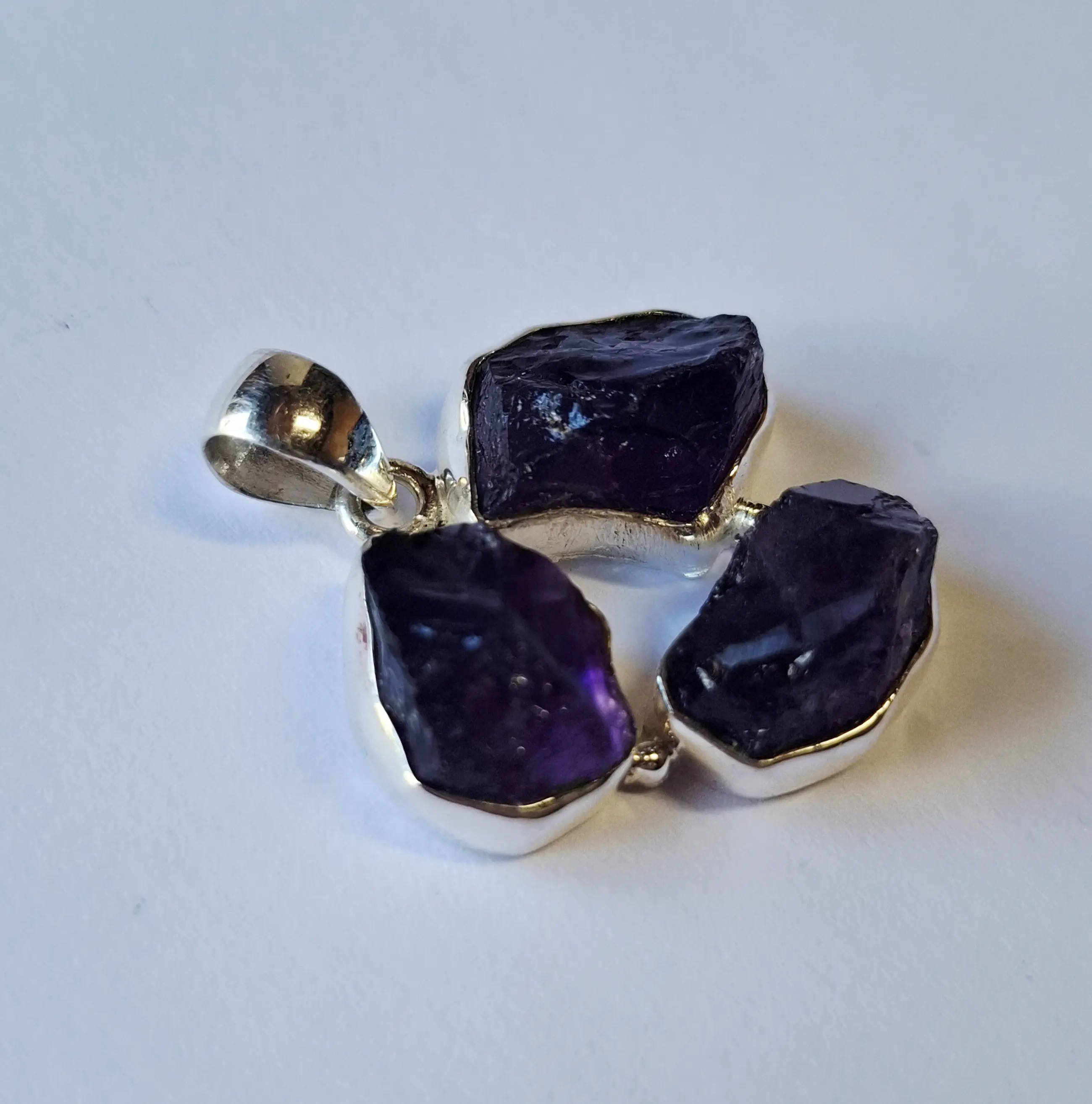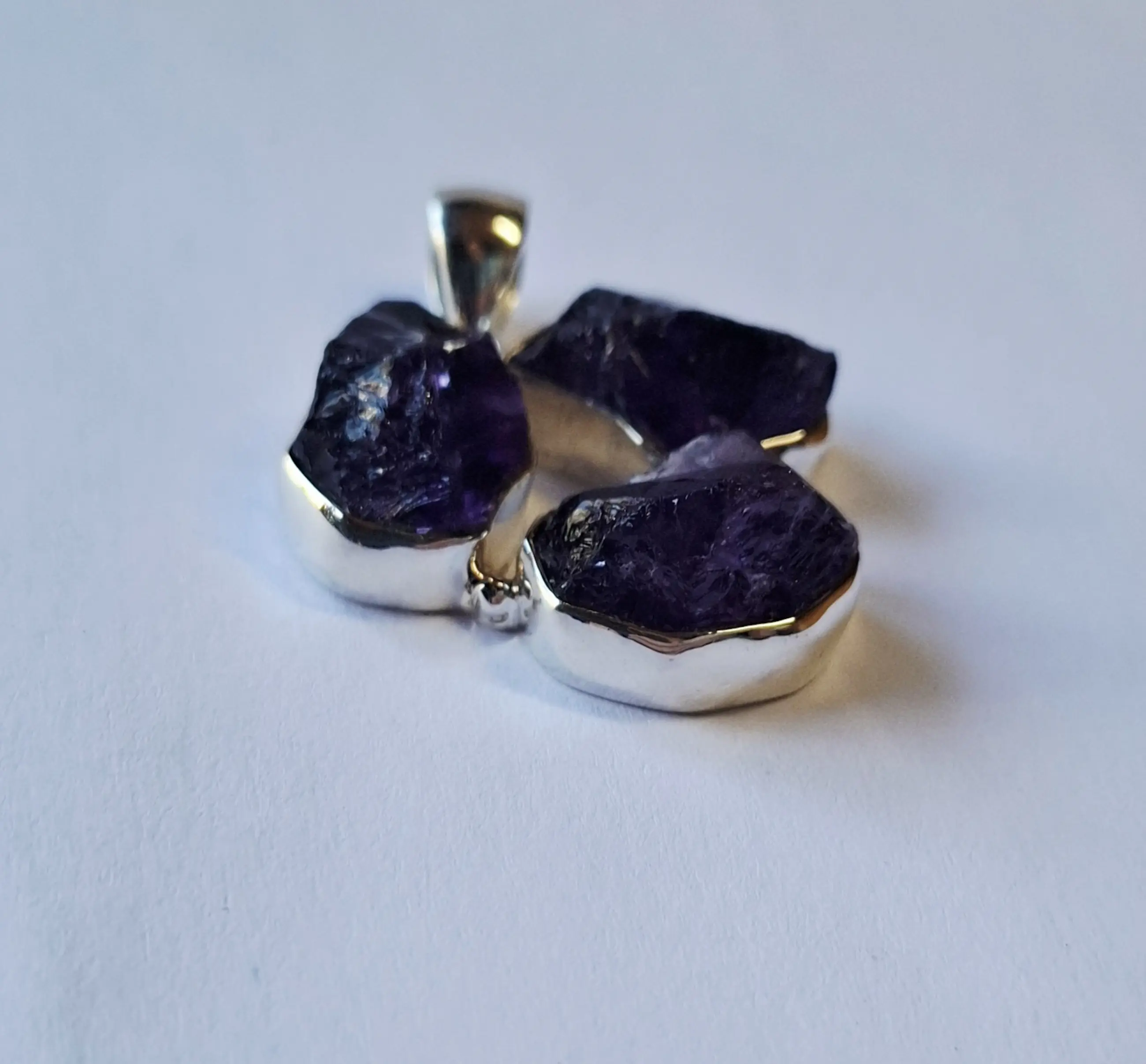 NieuwEen ruwe hanger met Amethist in zijn natuurlijke, onbewerkte vorm – symbool van rust, intuïtie en innerlijke balans.