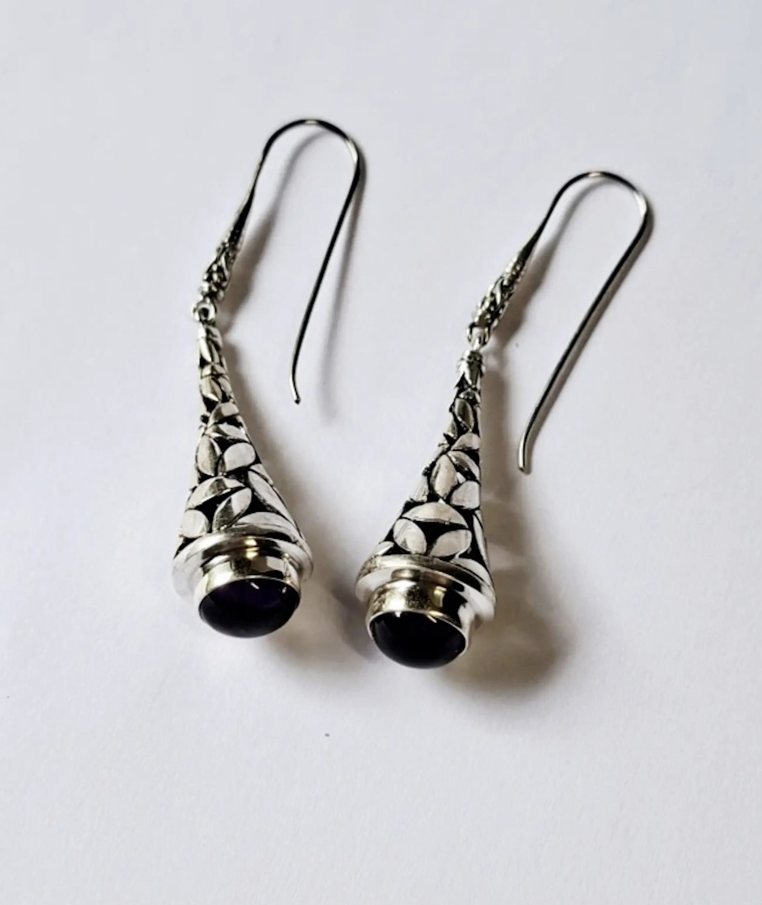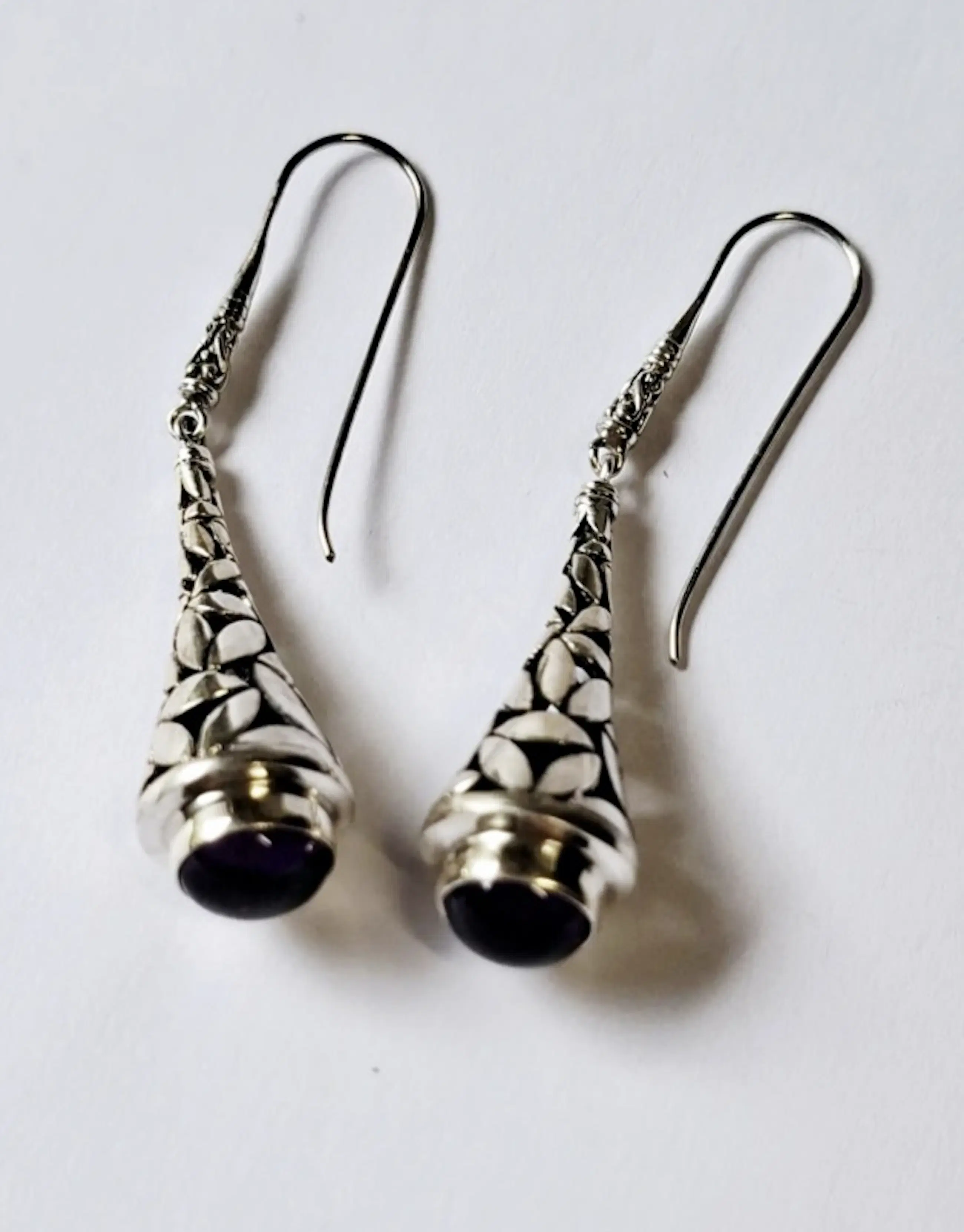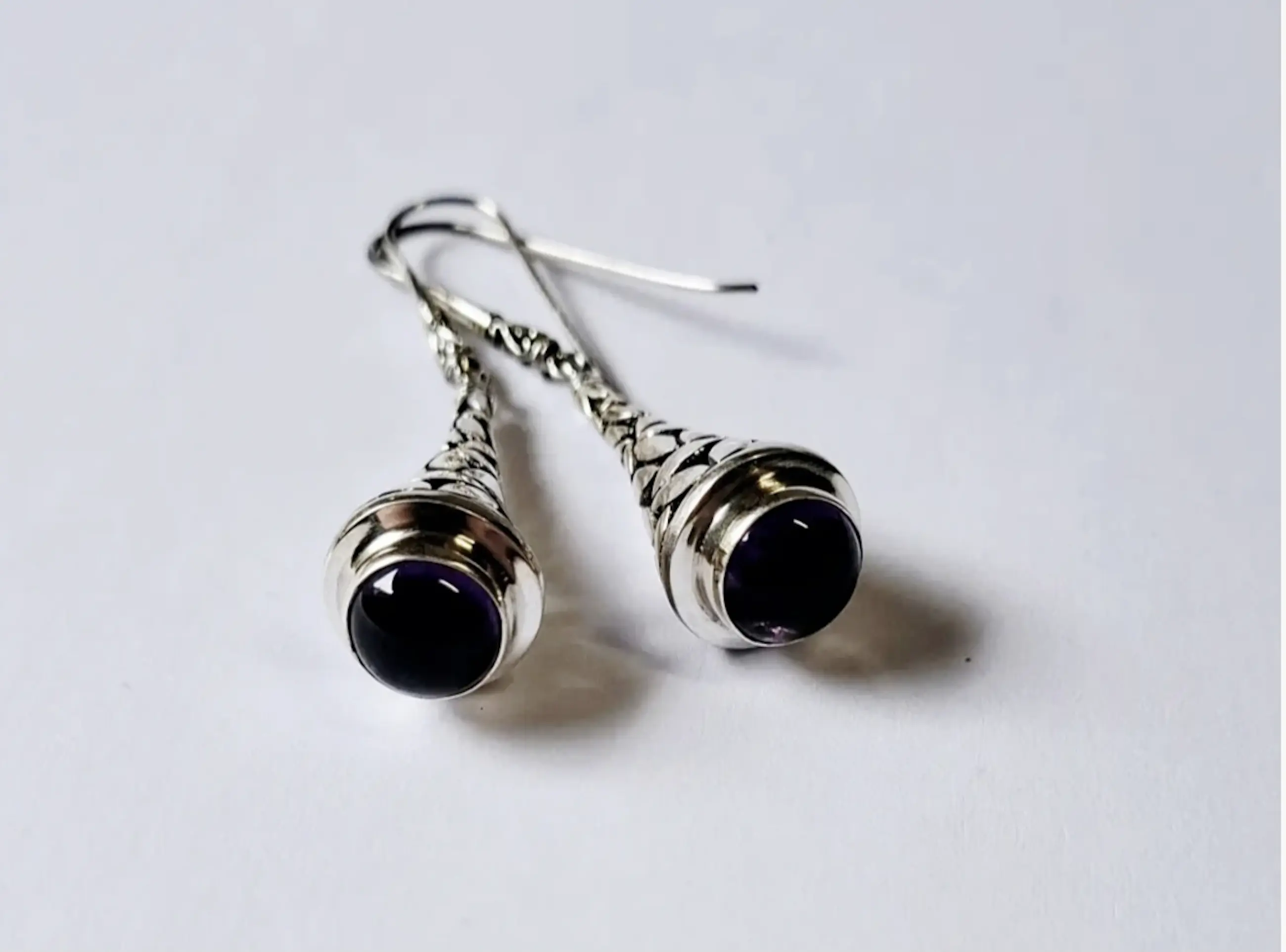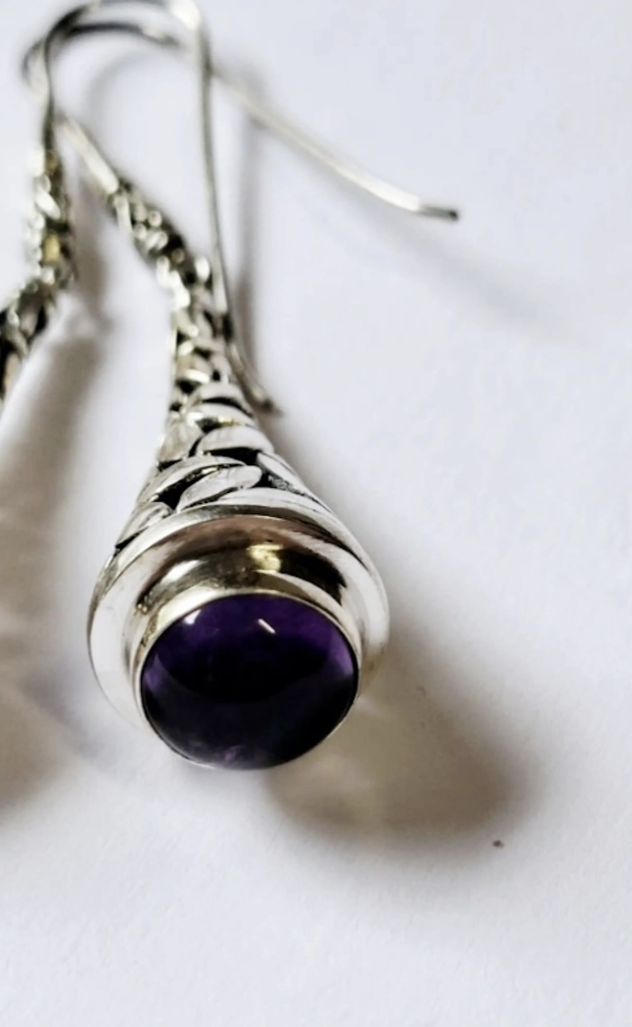 Nieuw Zilveren Byzantijnse Bungel oorbellen, met bolvormige Amethist een totale lengte van 6,4 cm beide oorbellen wegen samen 14,54 gram mooie open bewerkte druppel kast de Oorbellen zijn ingewikkeld geweven Drop Oorbellen, .