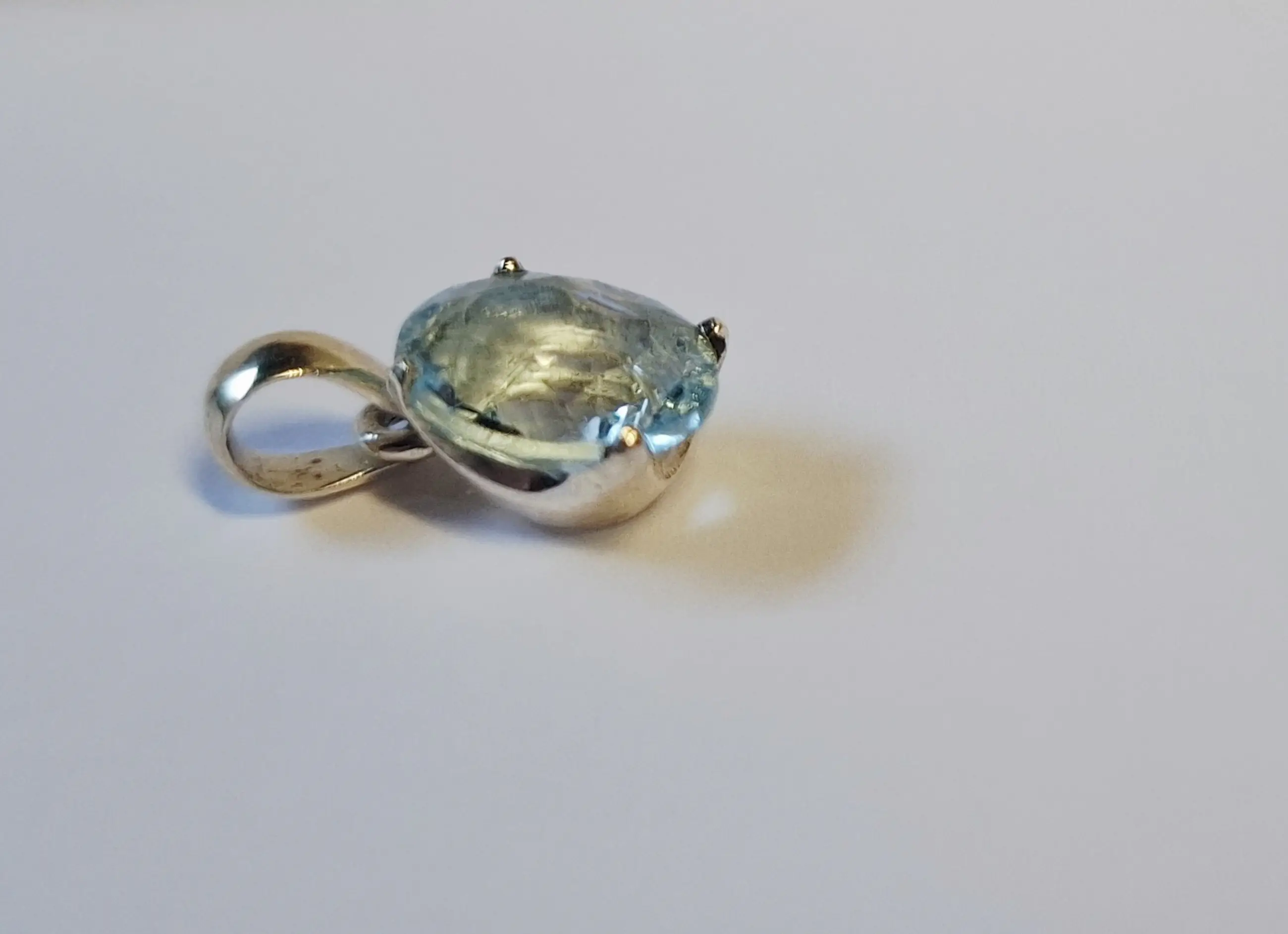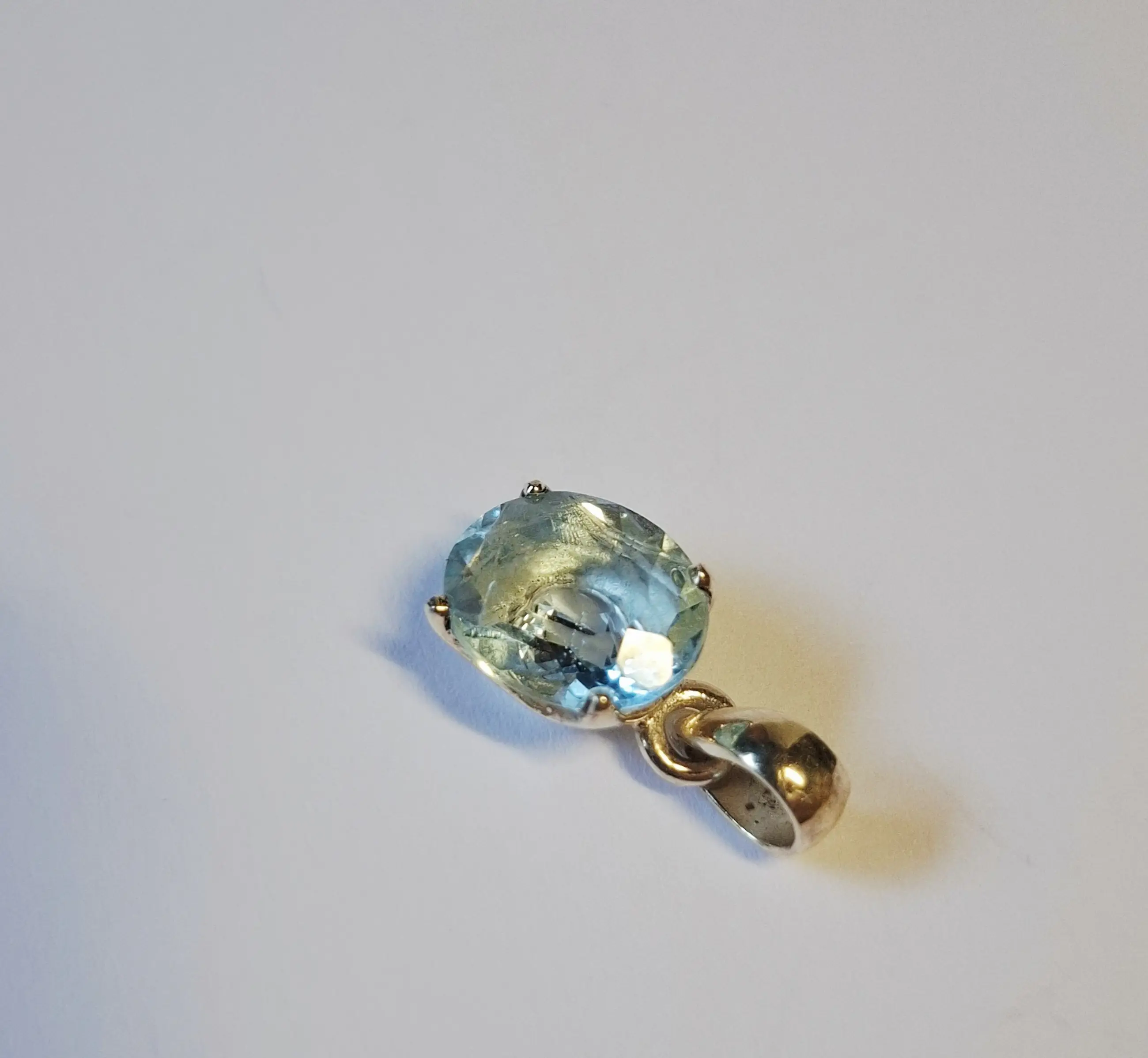 Nieuw zilveren hanger met 1 karaats briliantgeslepen topaas .