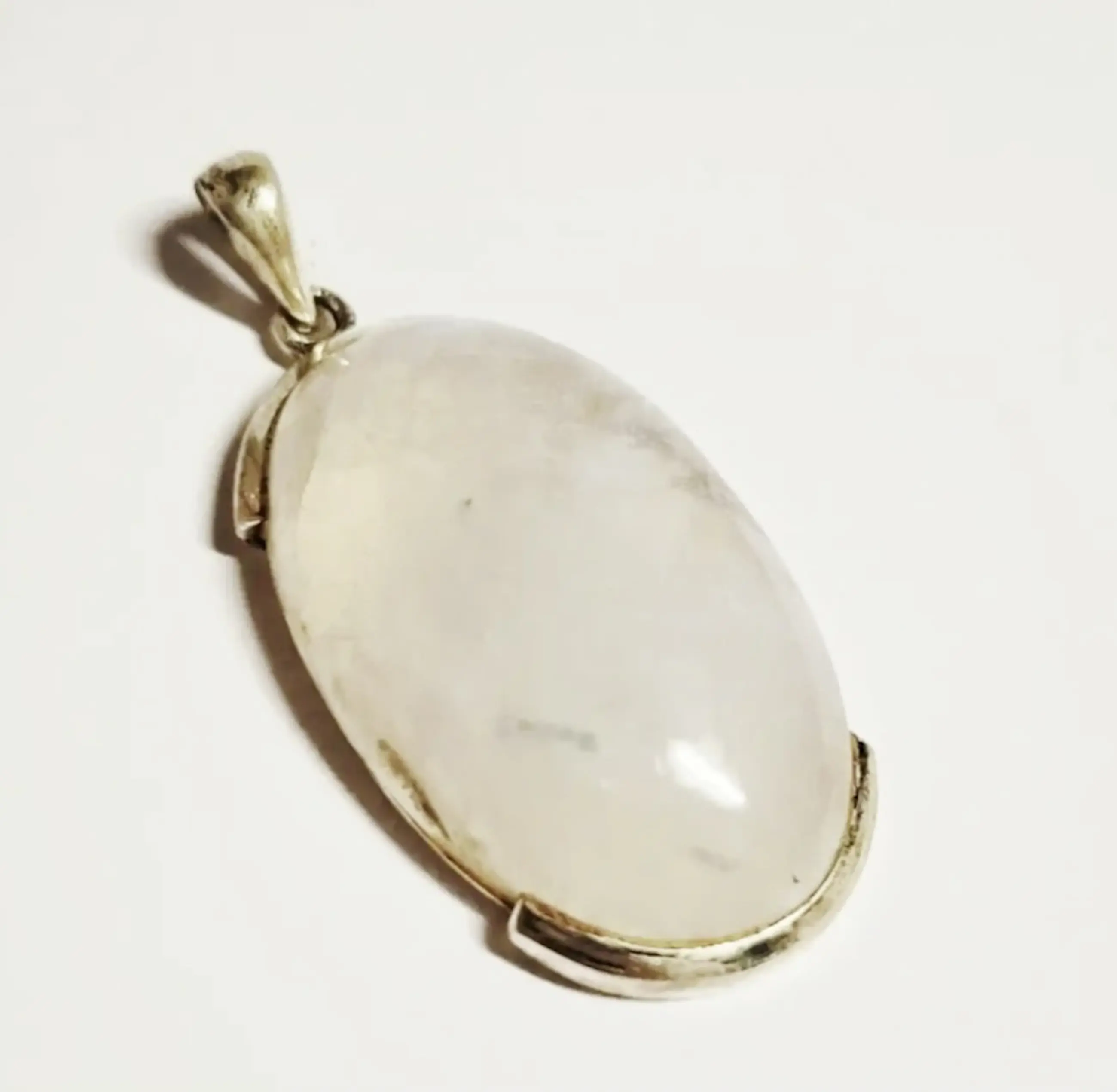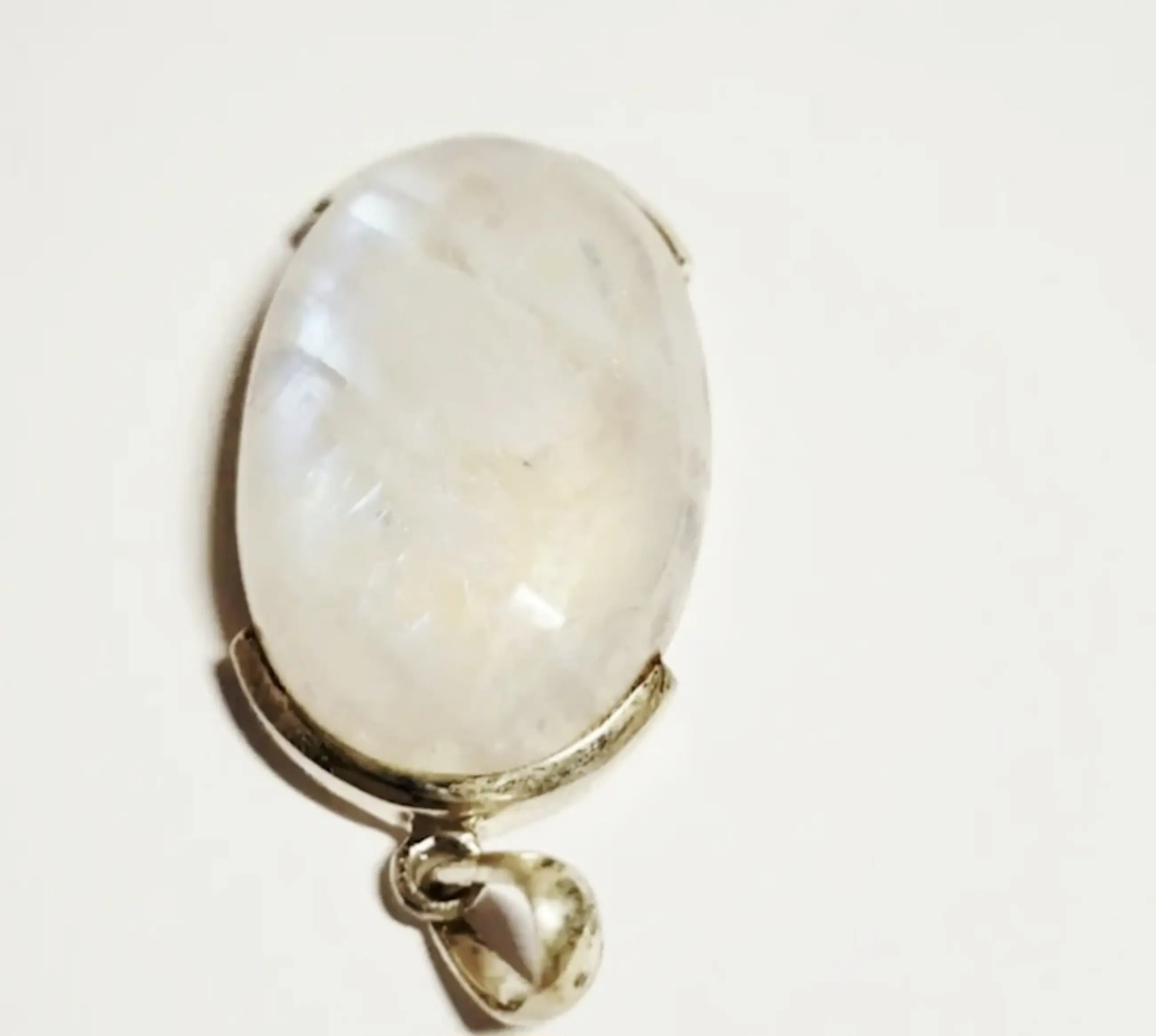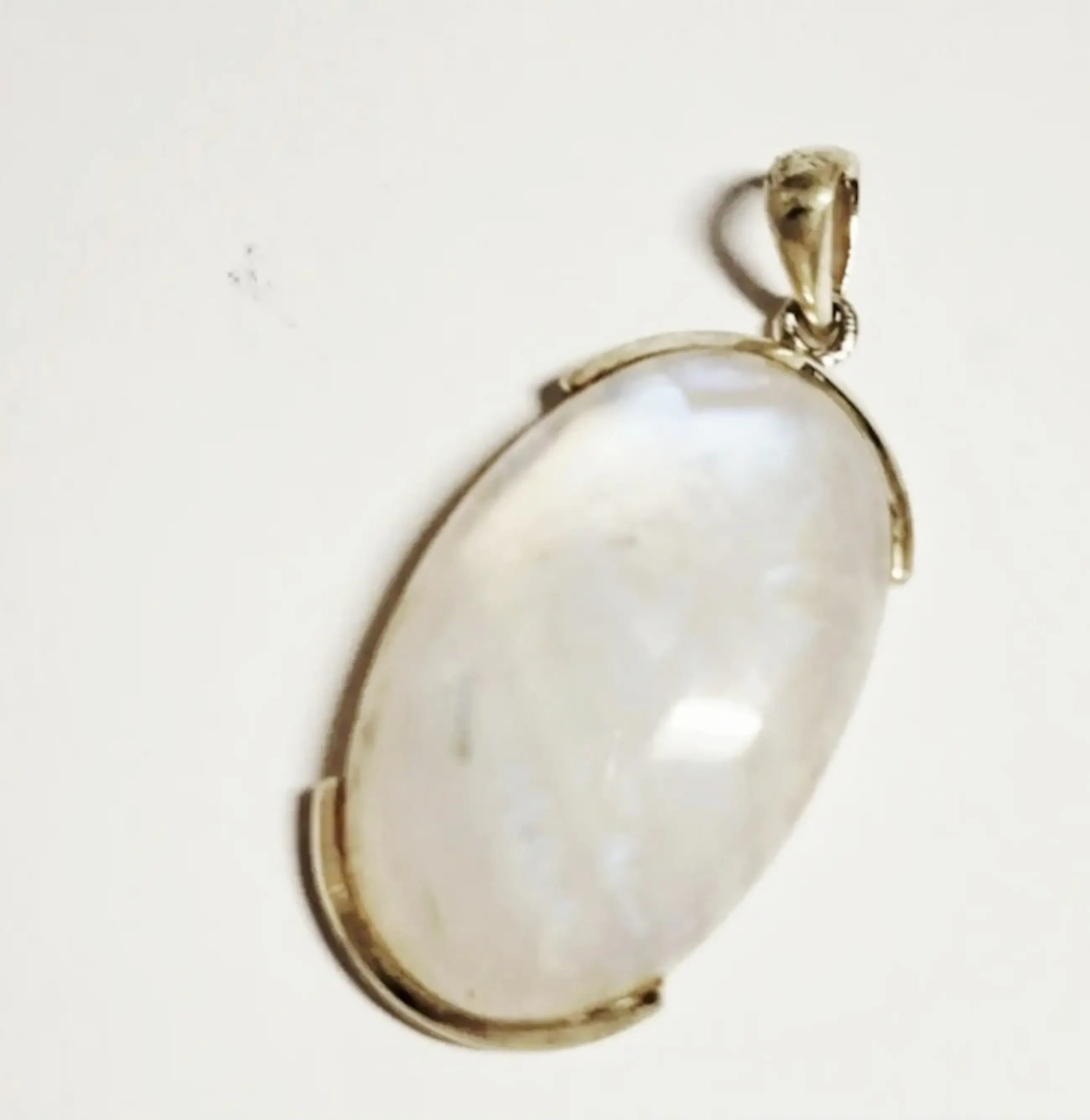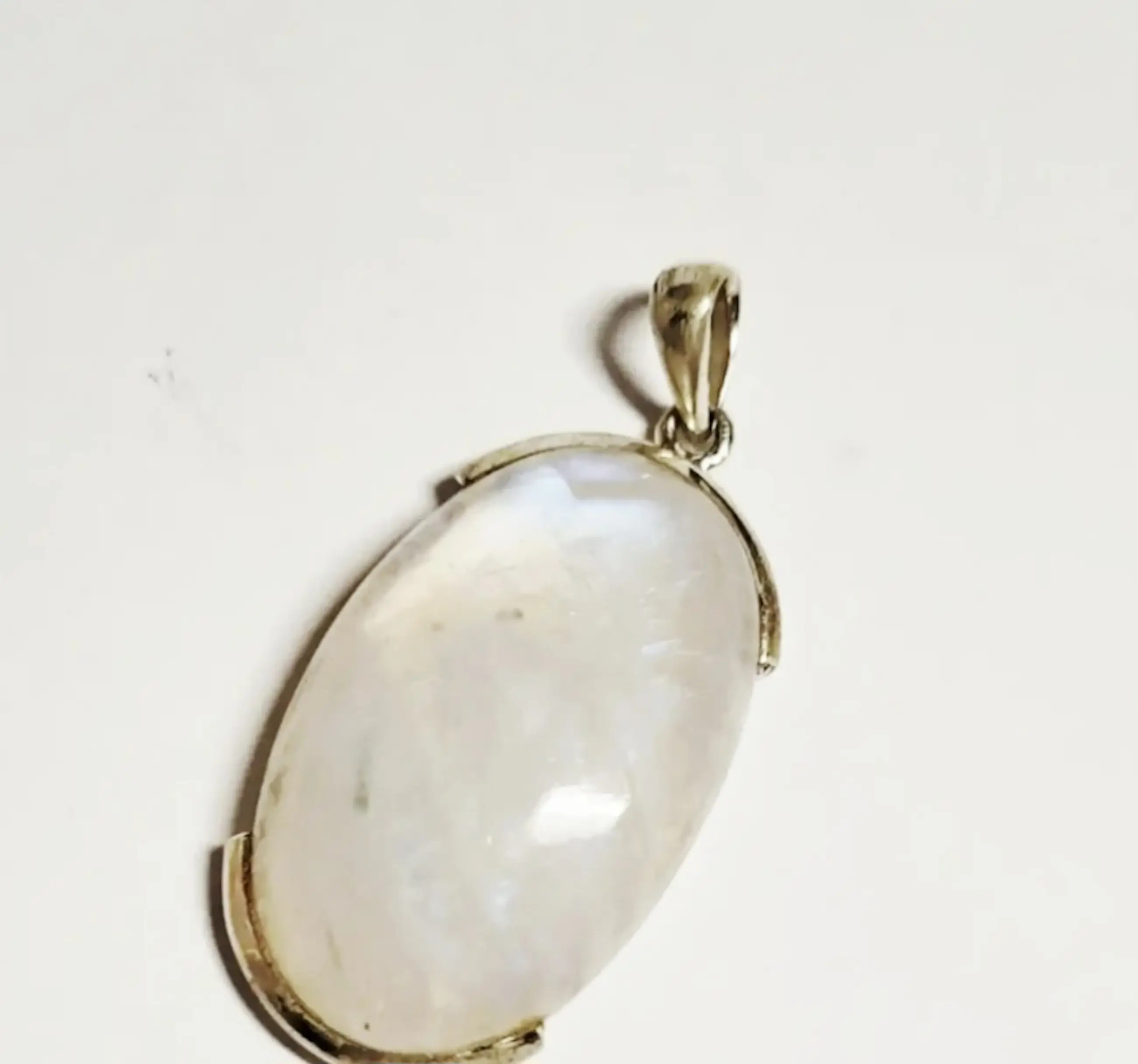 Nieuwe 925 zilveren hanger met prachtige regenboog maansteen in een strakke setting, heel goed afgewerkt. Gemerkt 925 = 1e gehalte zilver