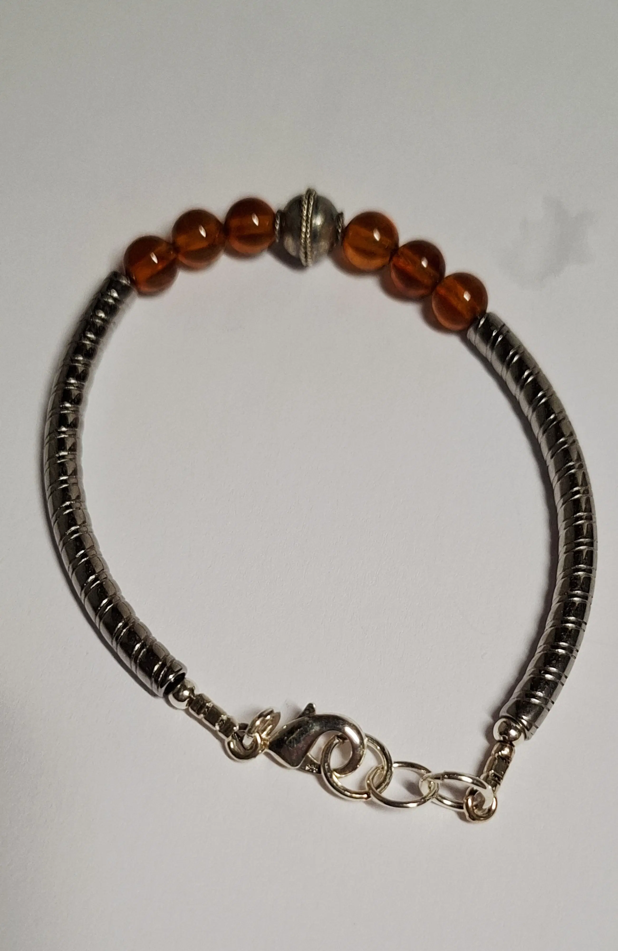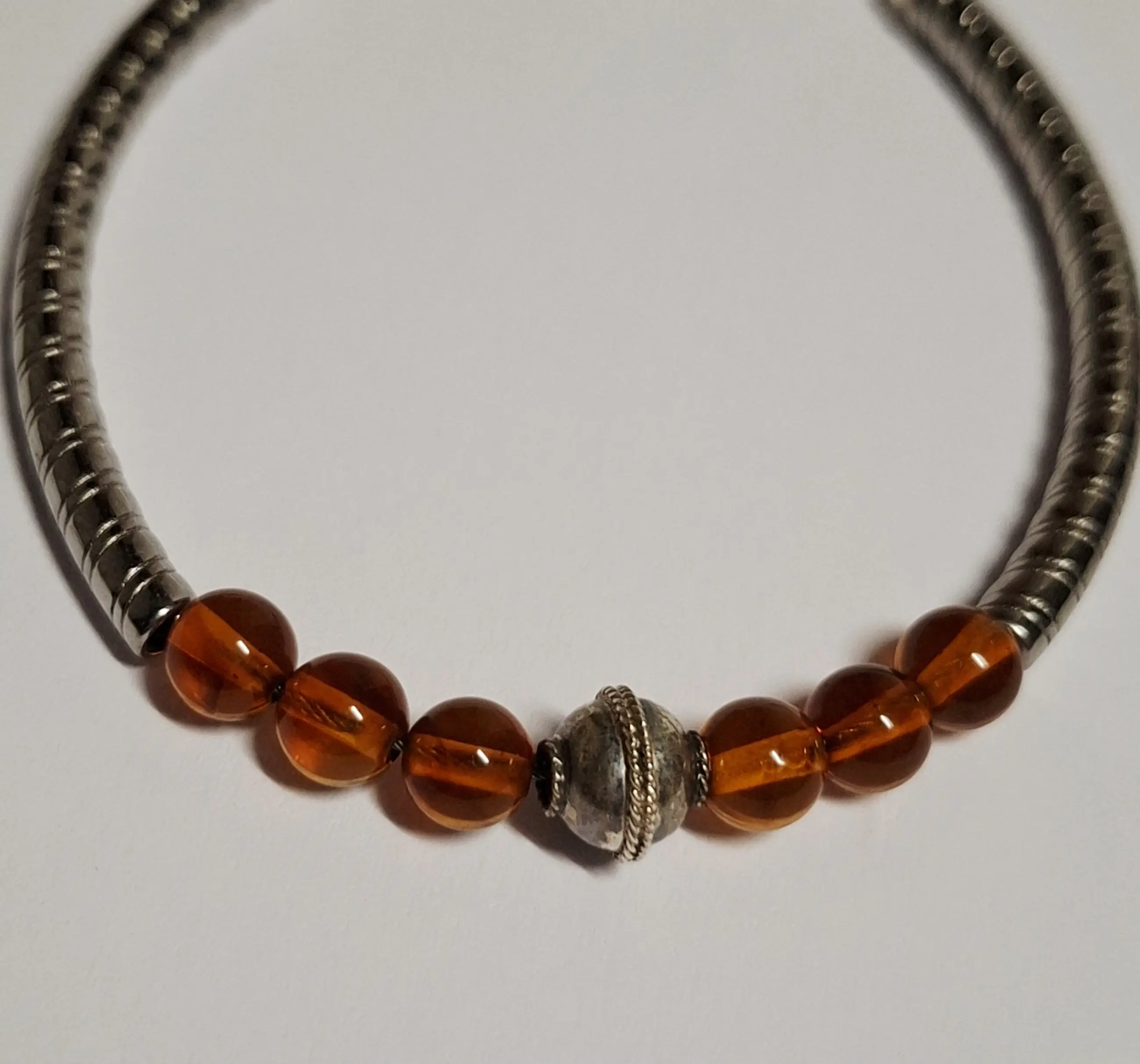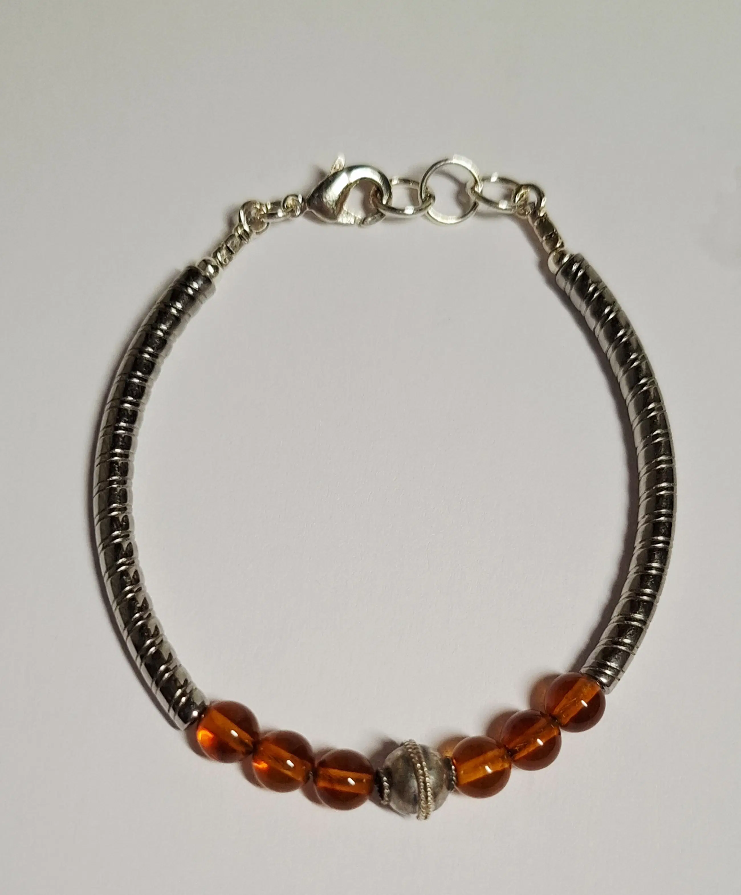 Deze nieuw Armband hebben altijd bij de verzamelaar in een dichte vitrine bak gelegen gemaakt in 1990 . Eigenlijk zijn het ronde barnstenen aaneengesloten armband in zilver met glanzend oppervlak .