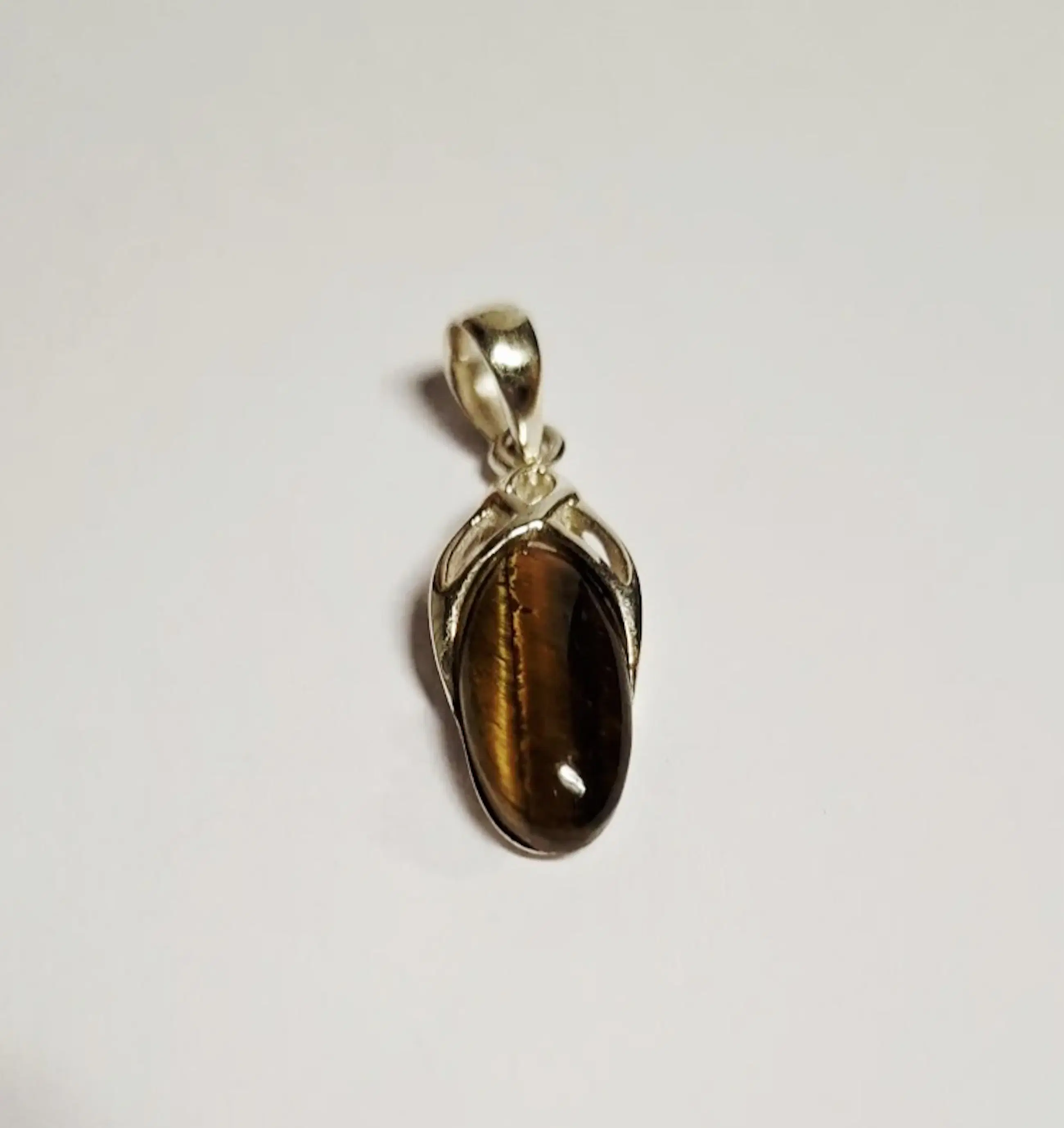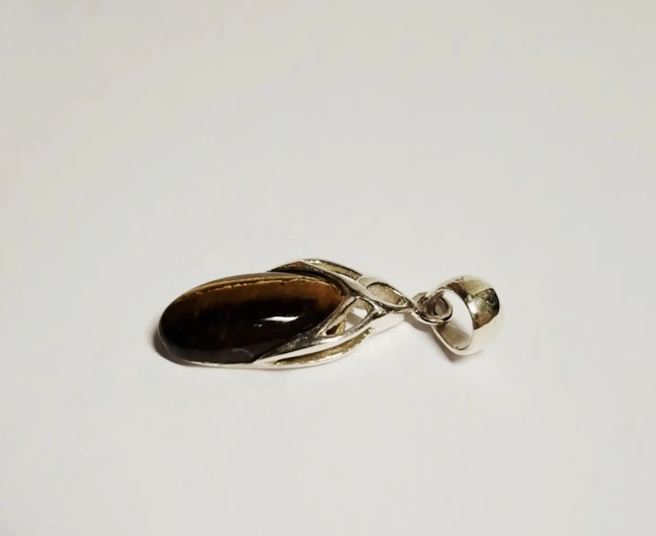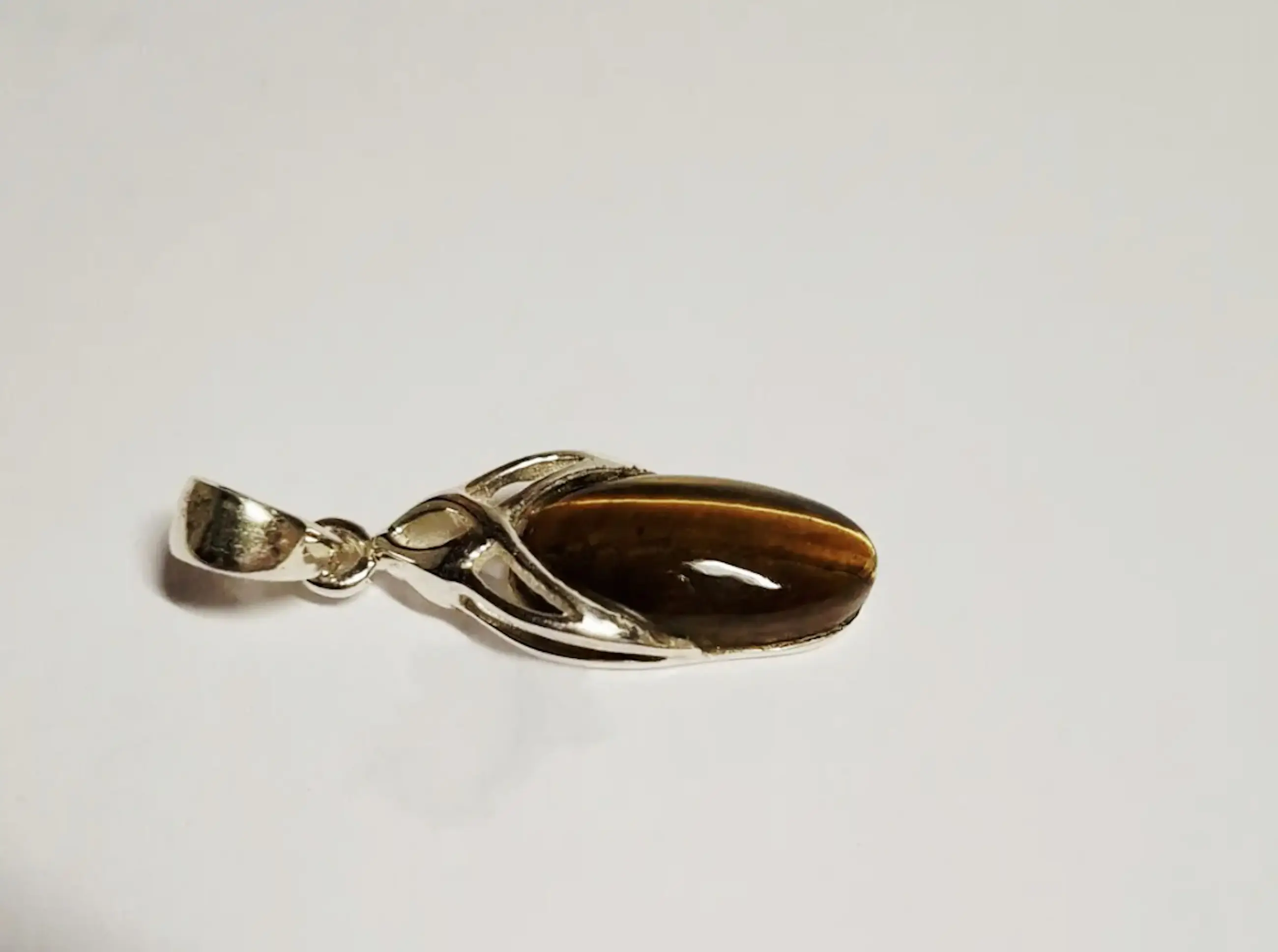 Nieuwe handgemaakte en fijn bewerkte zilveren hanger met een mooie geslepen tijgeroog steen. Het zilvergehalte is 925.