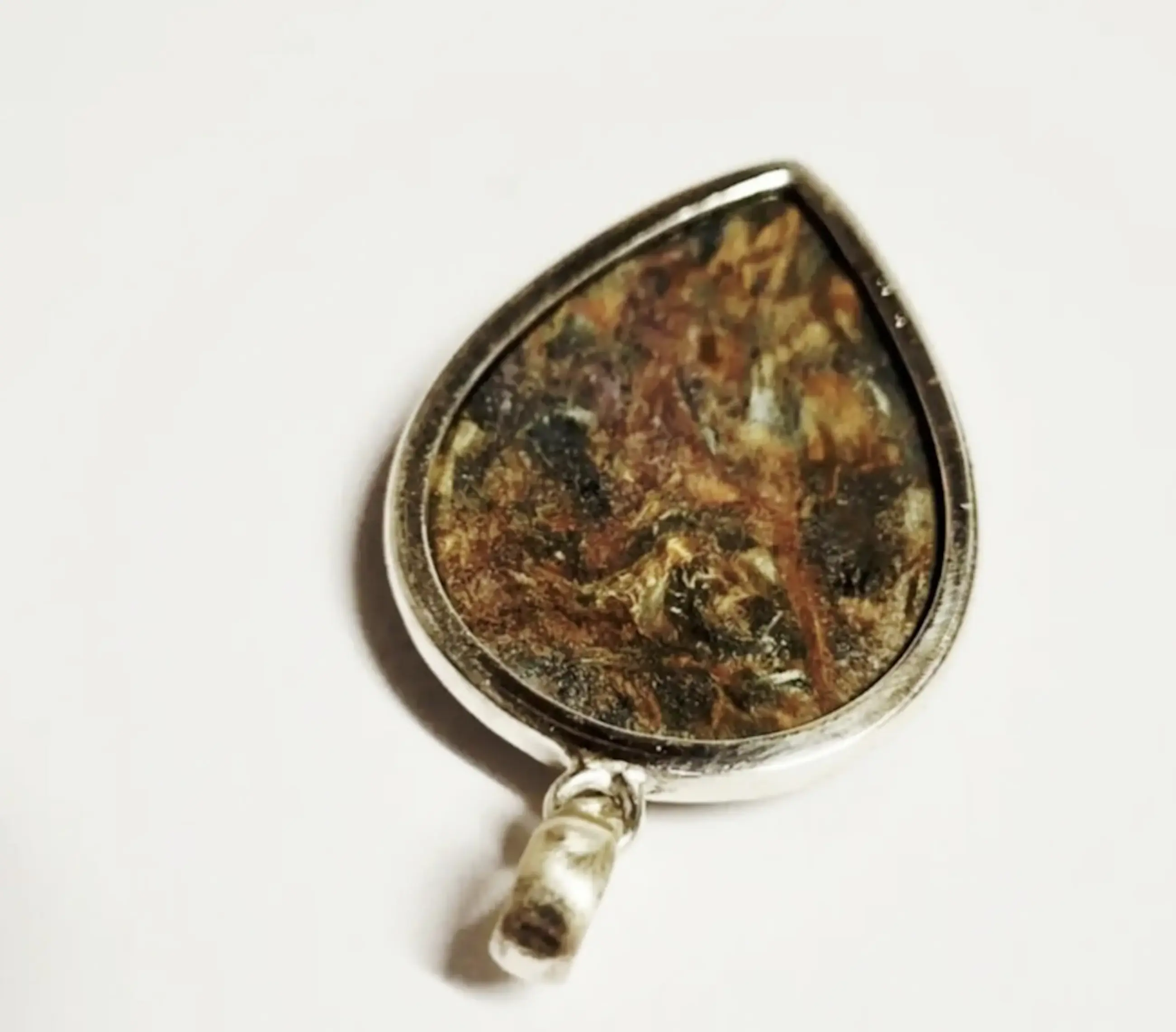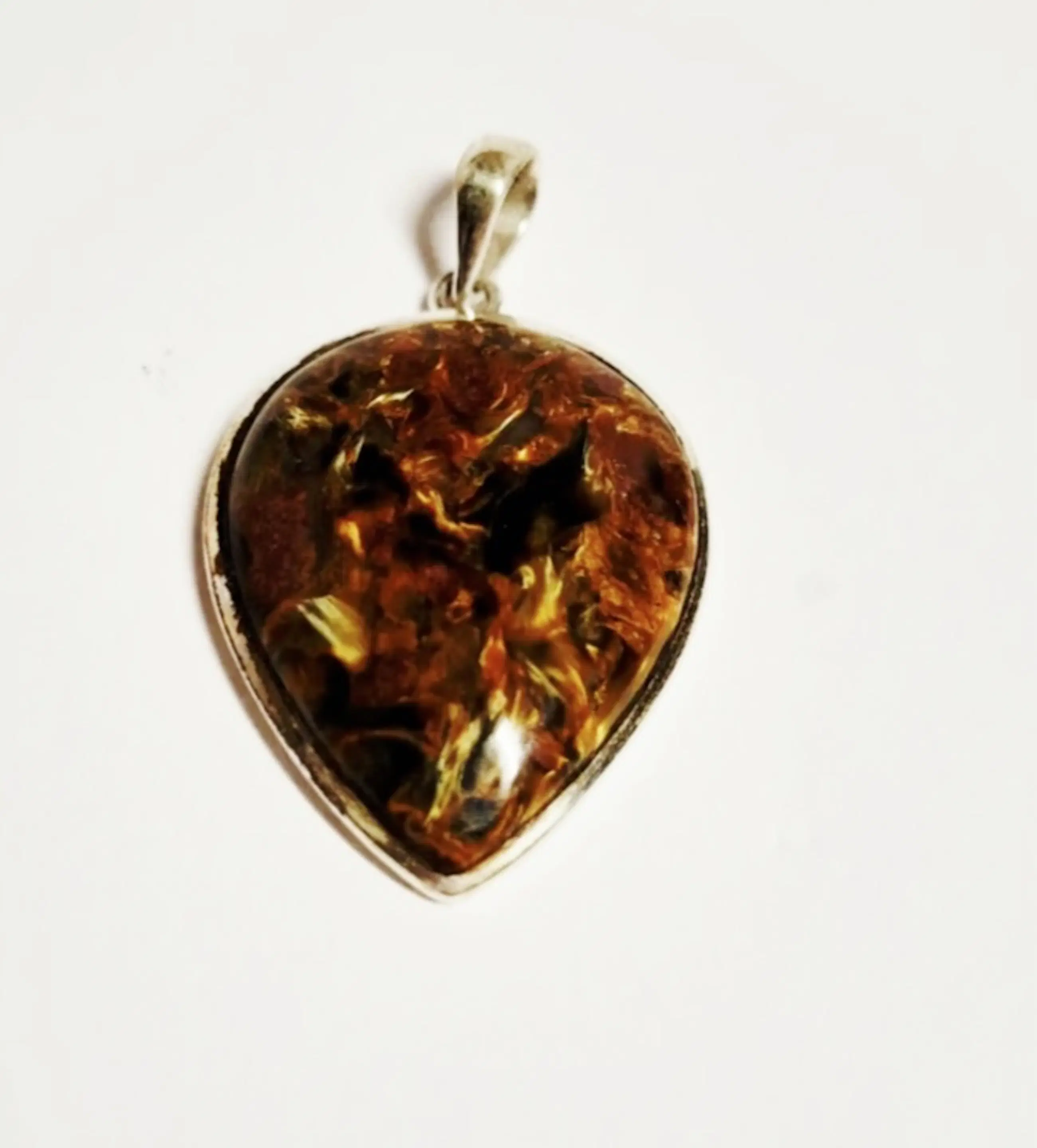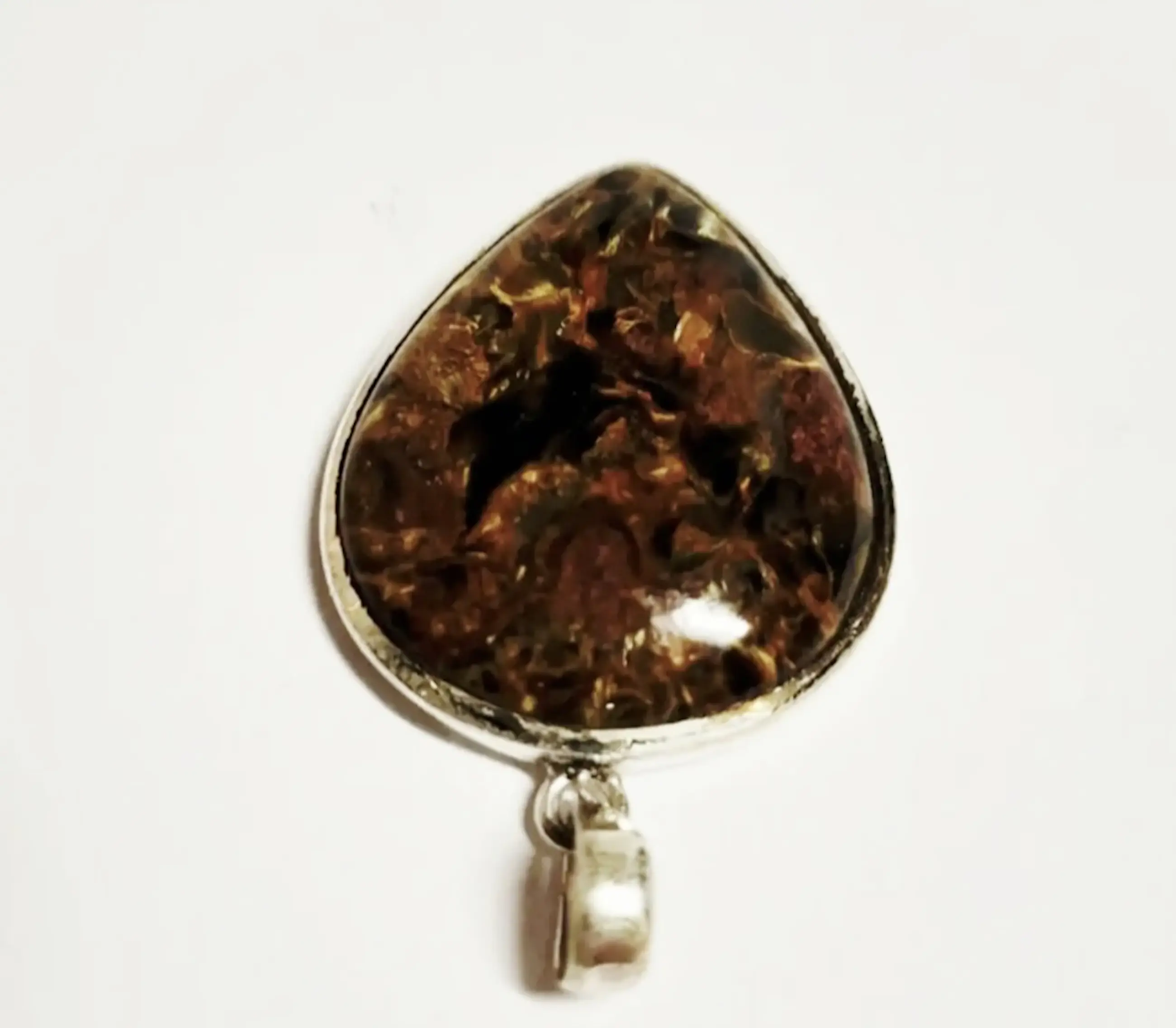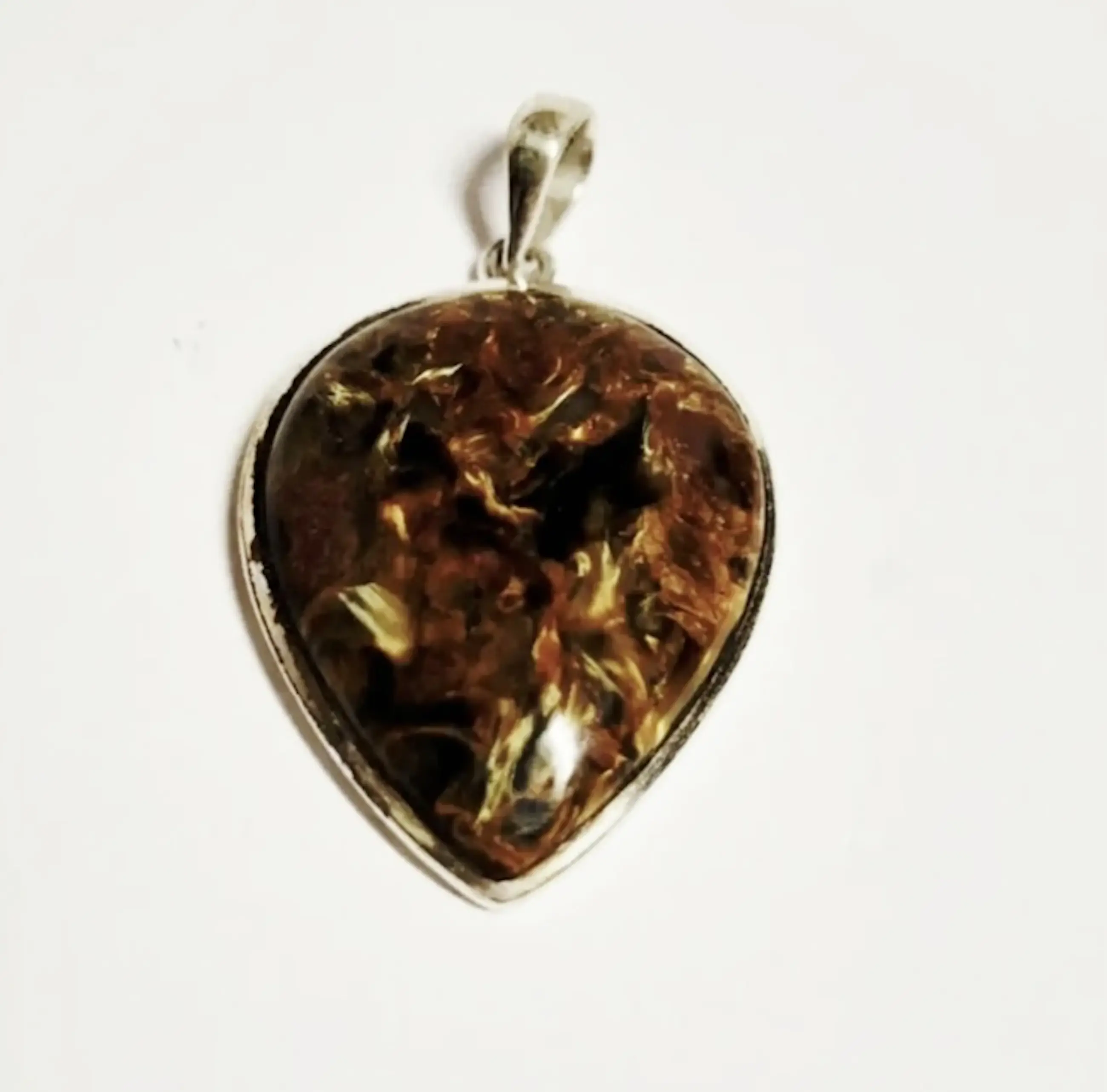 Nieuwe hartvormige hanger met gouden flame Pietersiet in 925 Zilver - handgemaakt - natuurlijke edelsteen - Namibië, Afrika