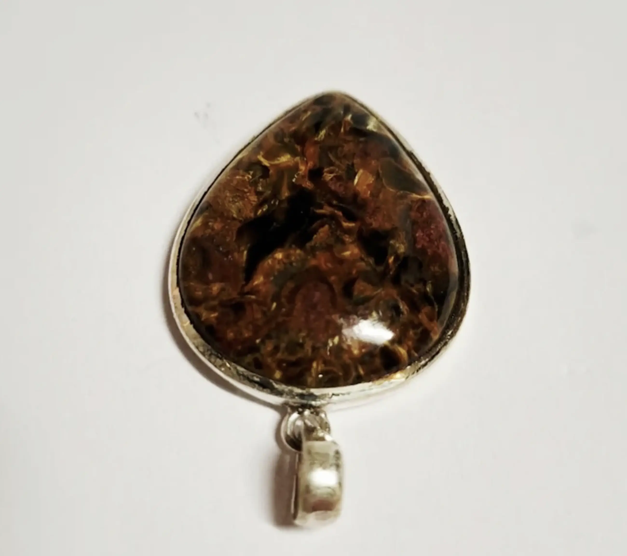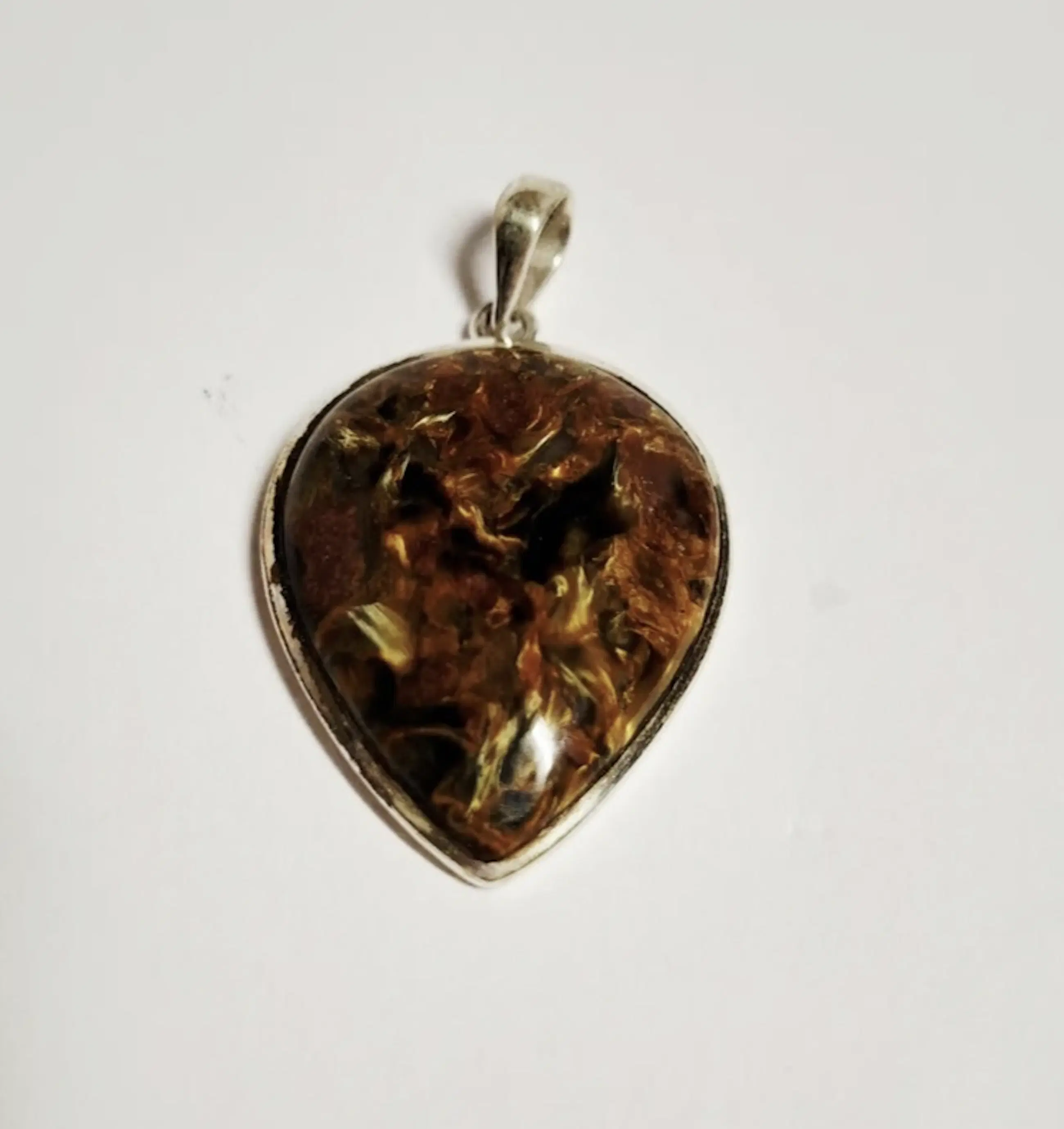 Nieuwe hartvormige hanger met gouden Pietersiet in 925 Zilver - handgemaakt - natuurlijke edelsteen - Namibië, Afrika