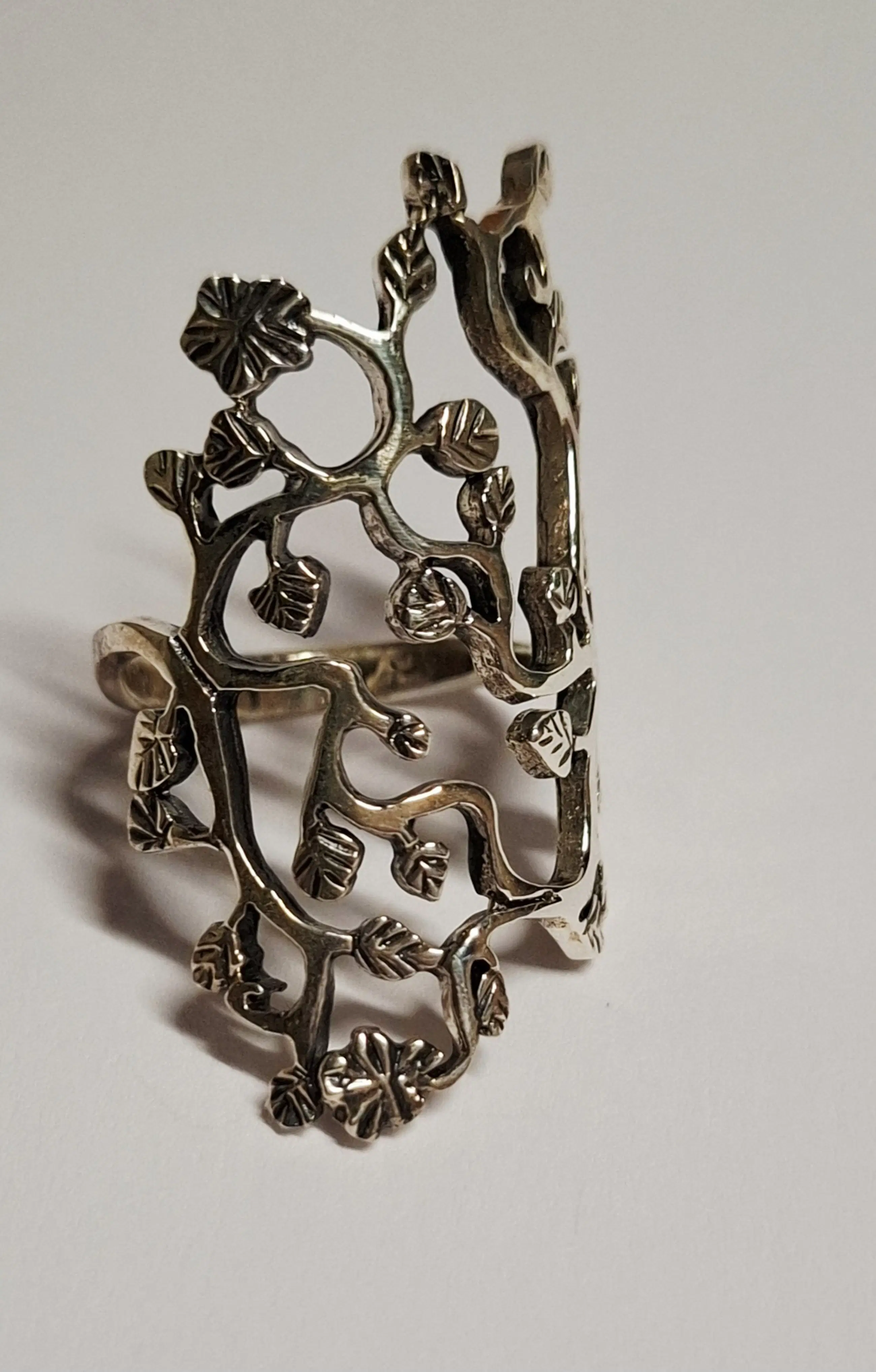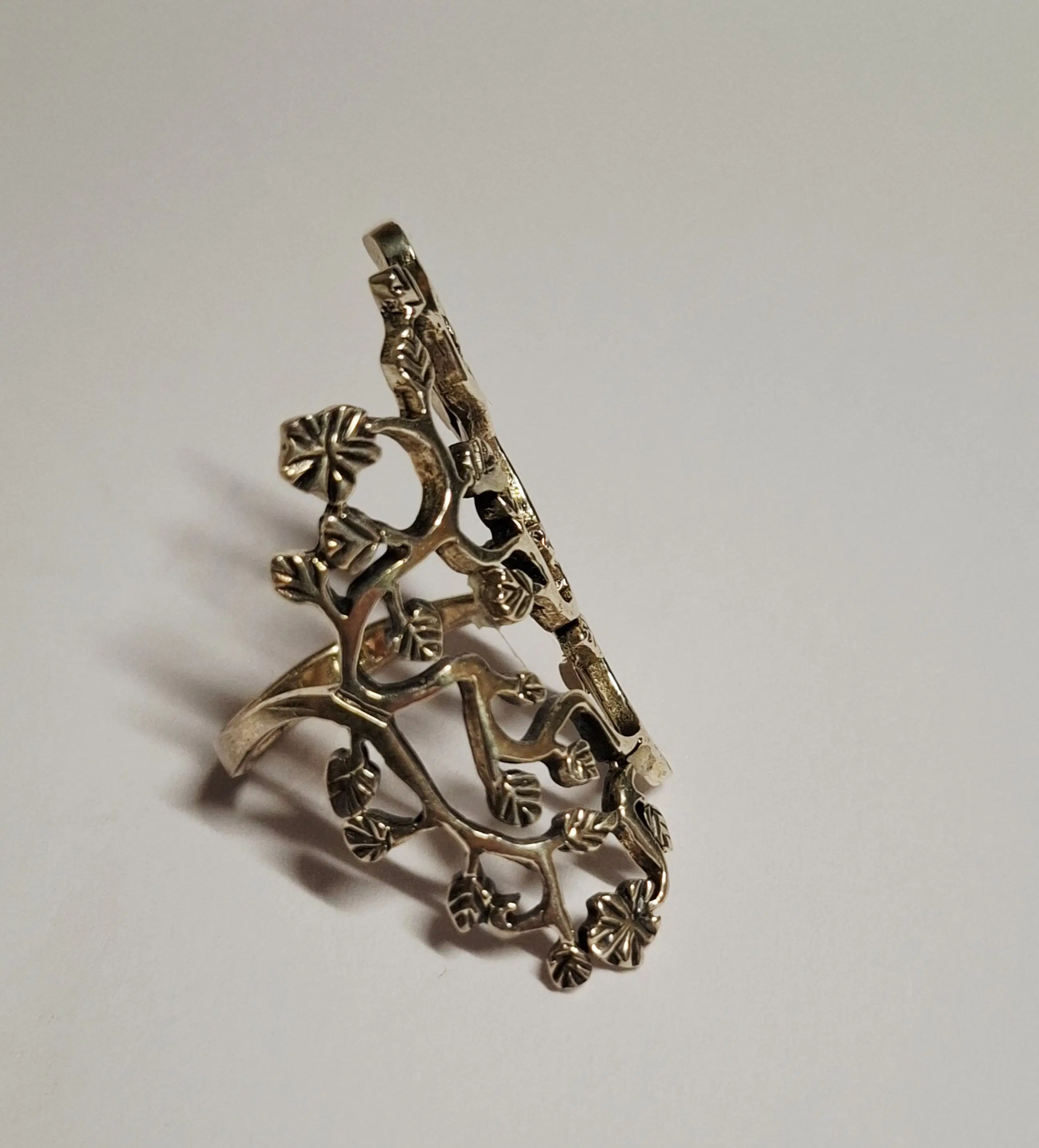 Vintage handgemaakte echte Zwitserse filigraan setting 925 sterling zilveren gotische ring Vintage ring omgeven door Zwitsers Designer Maat 19,5mm en de lengte is 4 cm Deze komt uit een prive Collectie Heeft altijd in een vitrine kastje gelegen eigenlijk is het nog nieuw voor een sieraad uit 1975 . Word goed verpakt en verzekerd verzonden met track en trace