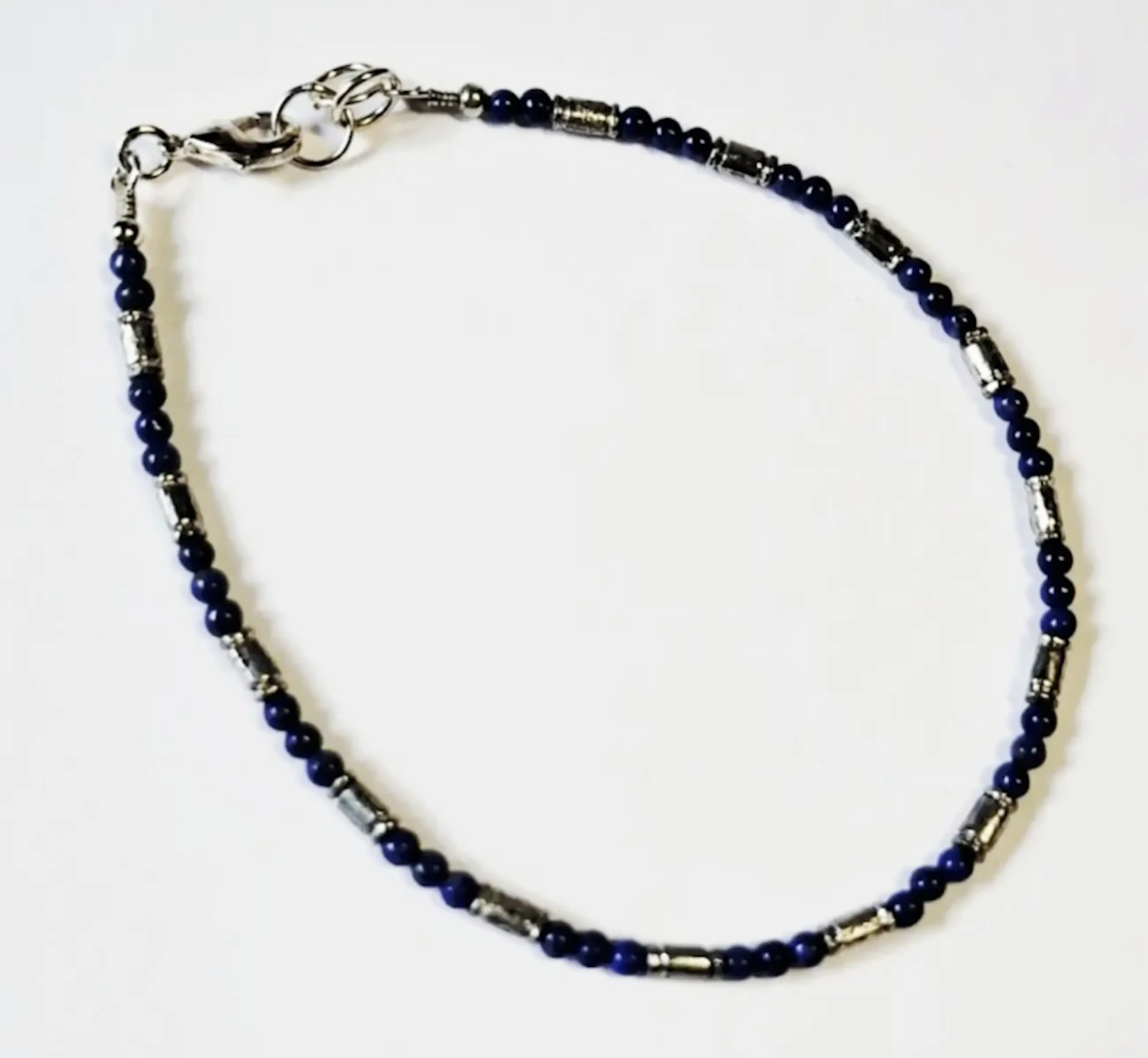 Nieuwe zilveren Armband van lapis lazuli 925 zilver - fijne armband van natuurlijke blauwe steen en sterling zilver