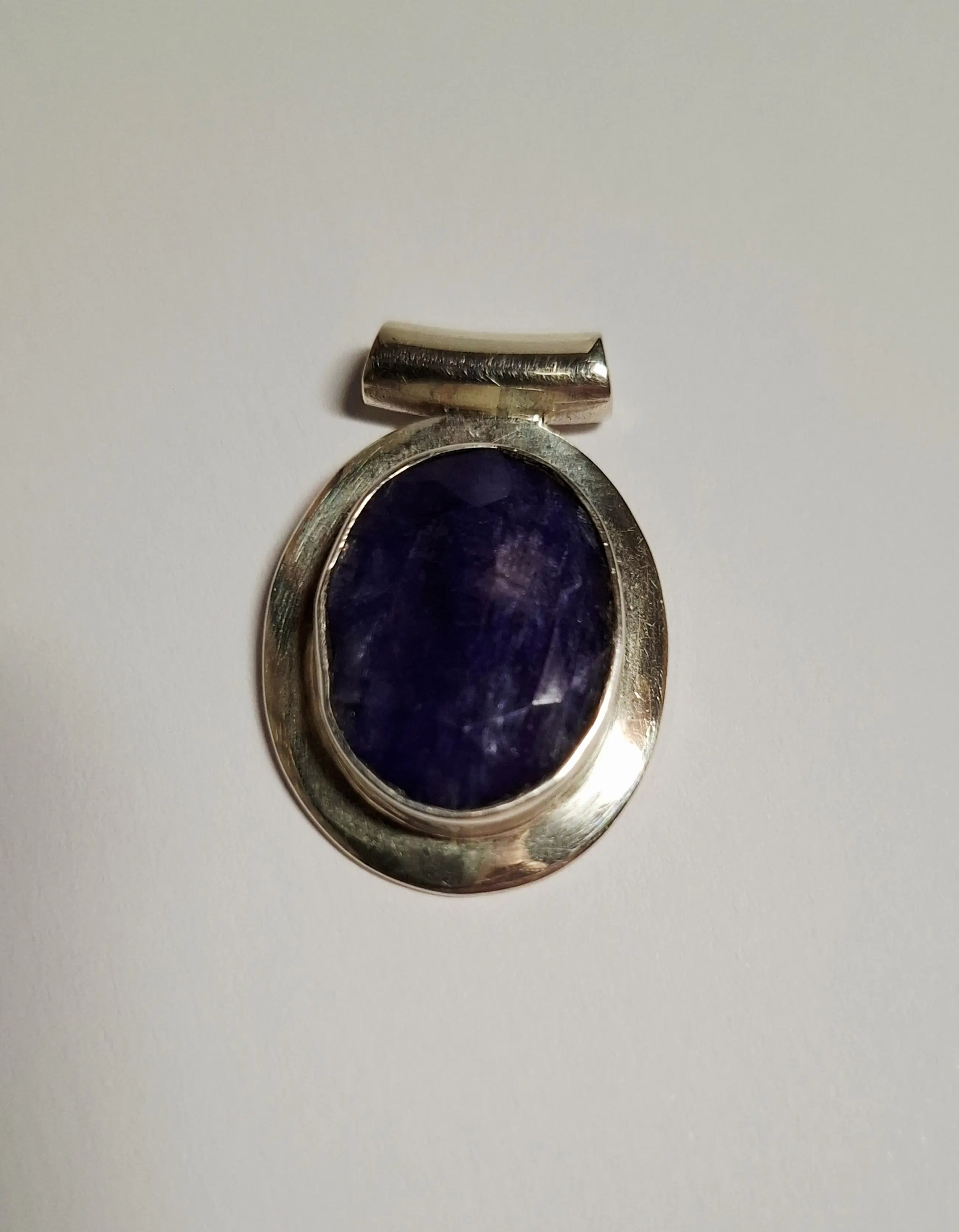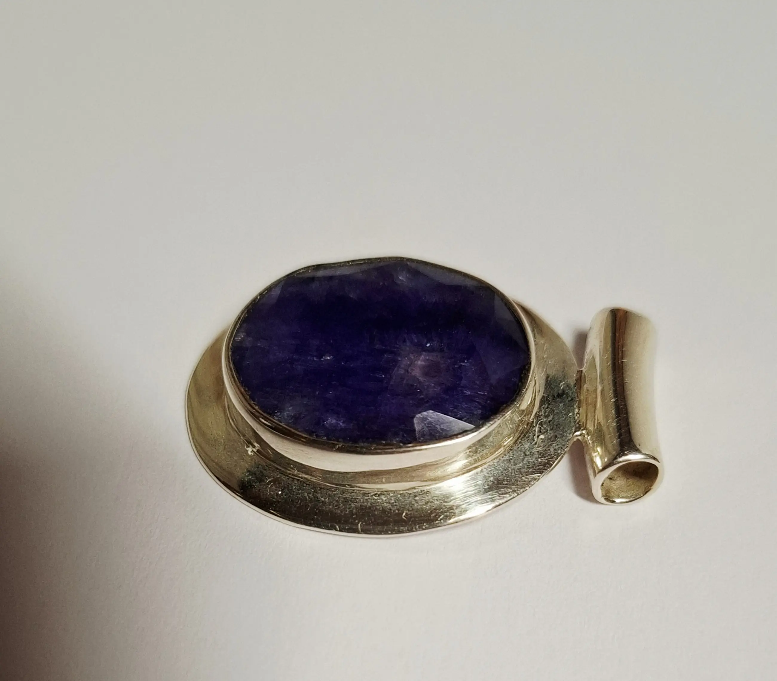Het zilvergehalte is 925Handgemaakte sterling zilveren hanger met Indiase saffier: boho-sieraden