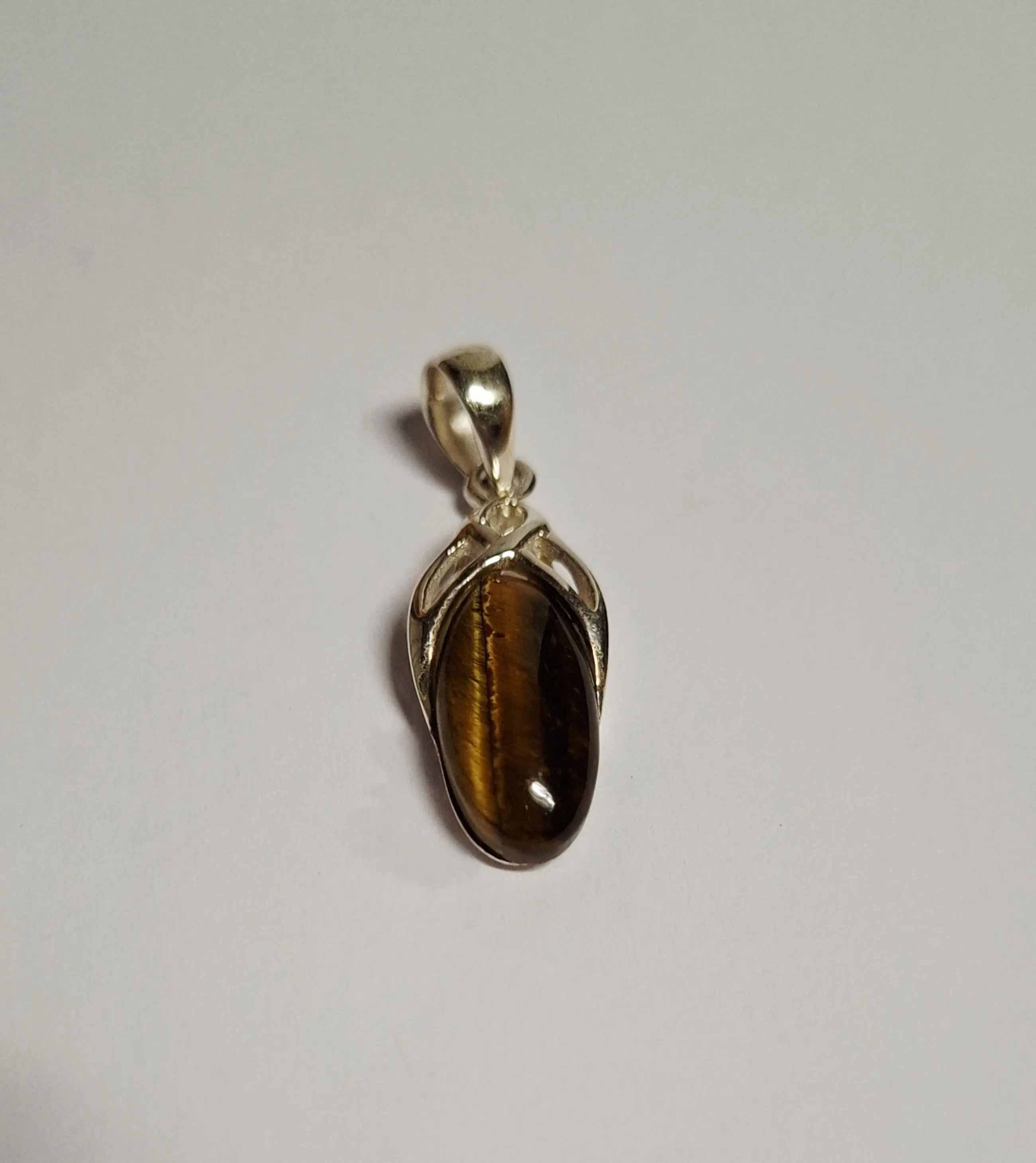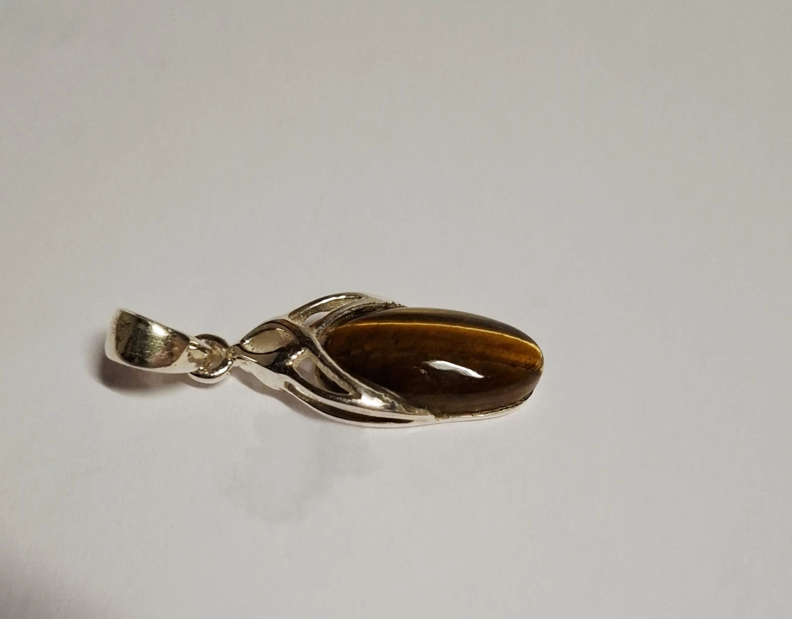 Nieuwe handgemaakte en fijn bewerkte zilveren hanger met een mooie geslepen tijgeroog steen. Het zilvergehalte is 925.