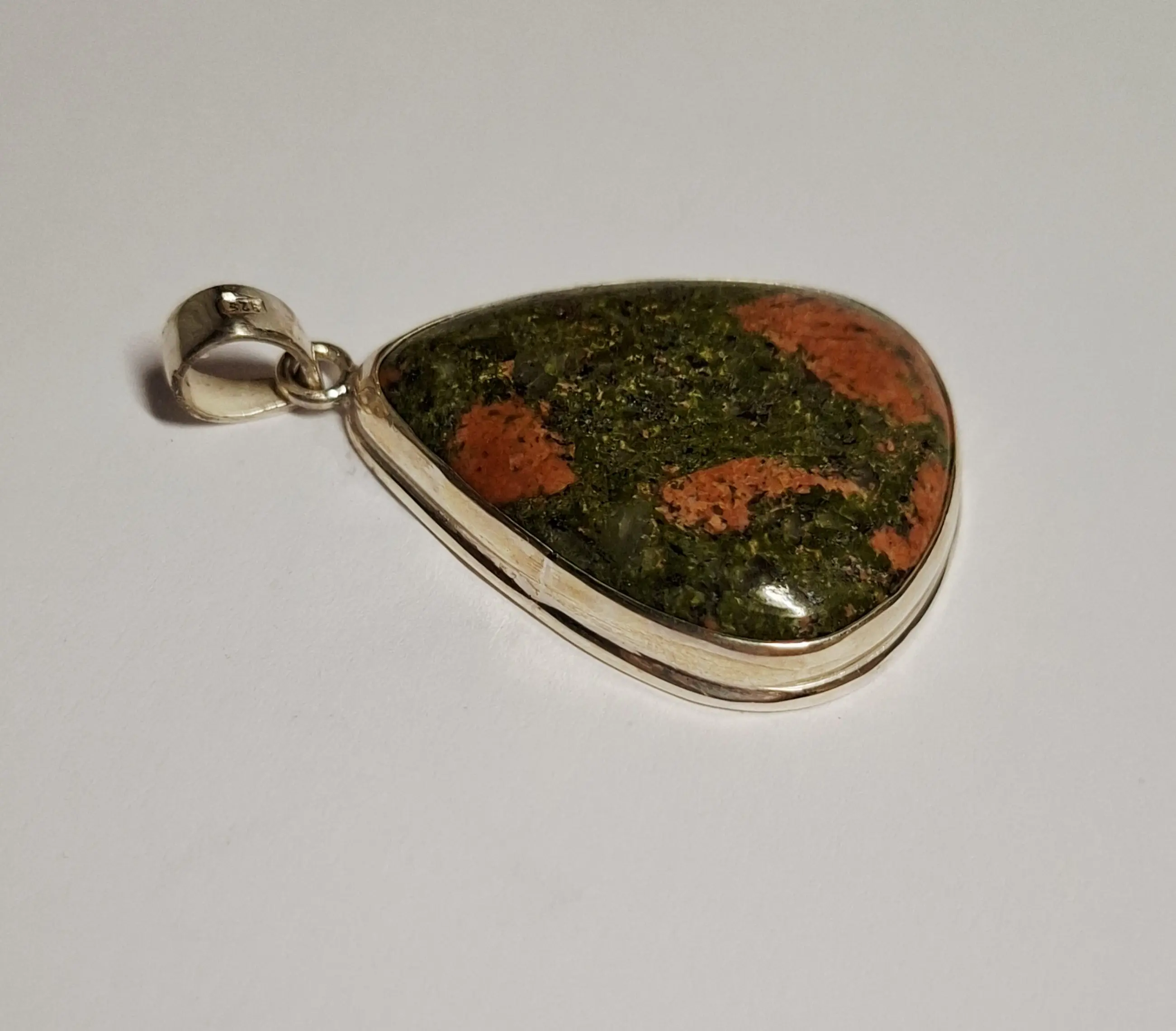 Nieuwe zilveren hanger met Een slimme grote, unieke, natuurlijke Unakiet- in een stijlvol sterling zilver ontwerp.